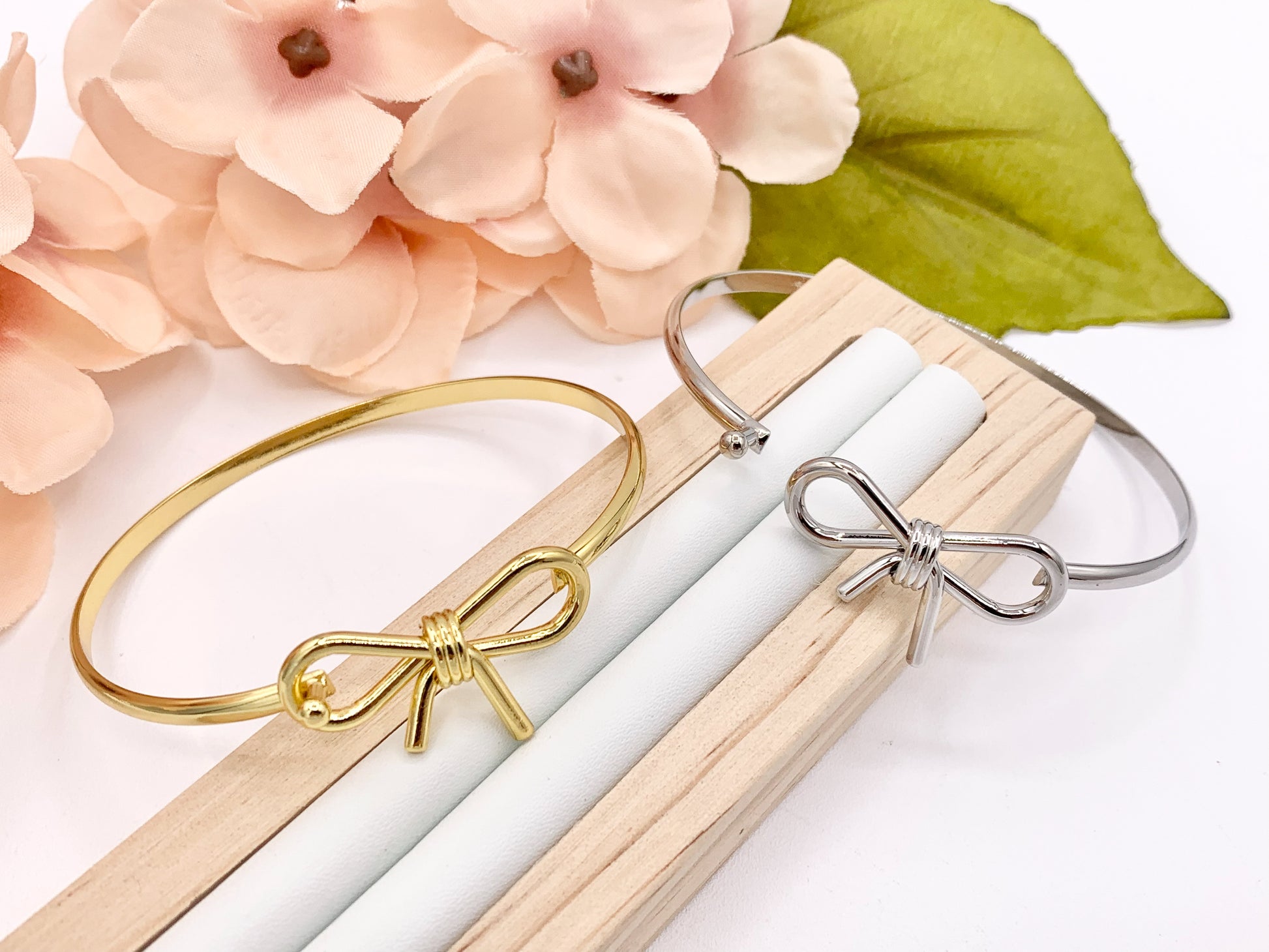 Cute Bow Tie Front Open Bracelet Cuffs in Real Gold/Platinum 18K Plated Copper 3 PCS