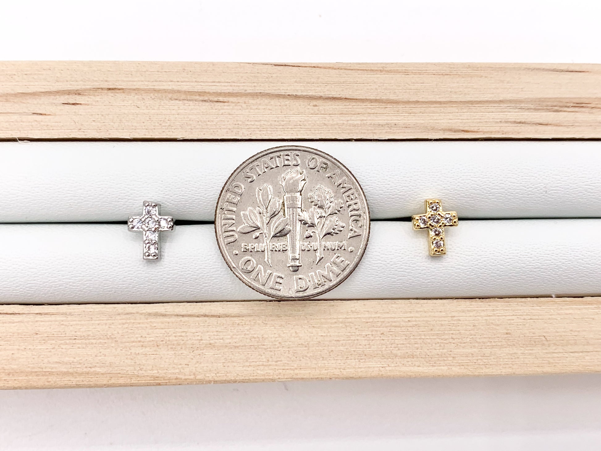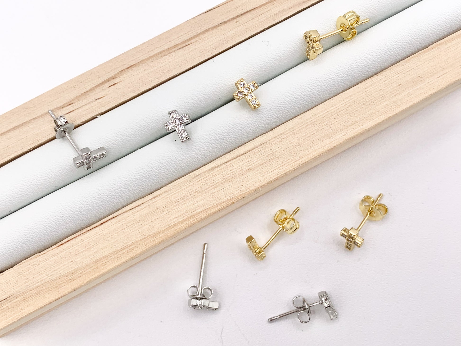 Cute Dainty Cross Studs in CZ Pave 18K Gold/Platinum Plated Over Copper Earrings 5 PAIRS