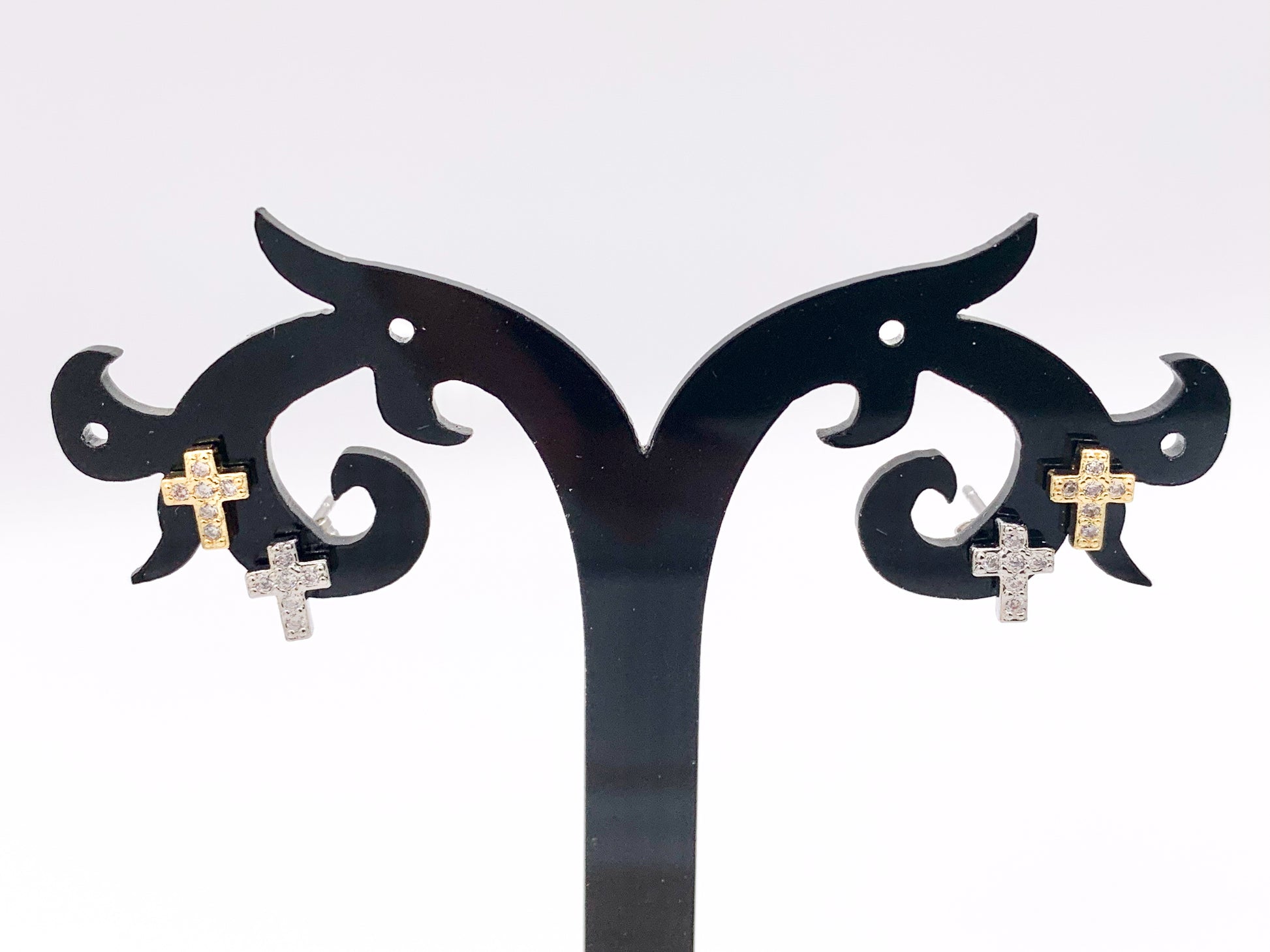 Cute Cross Earring Studs in CZ Pave 18K Gold/Platinum Plated Over Copper Earrings
