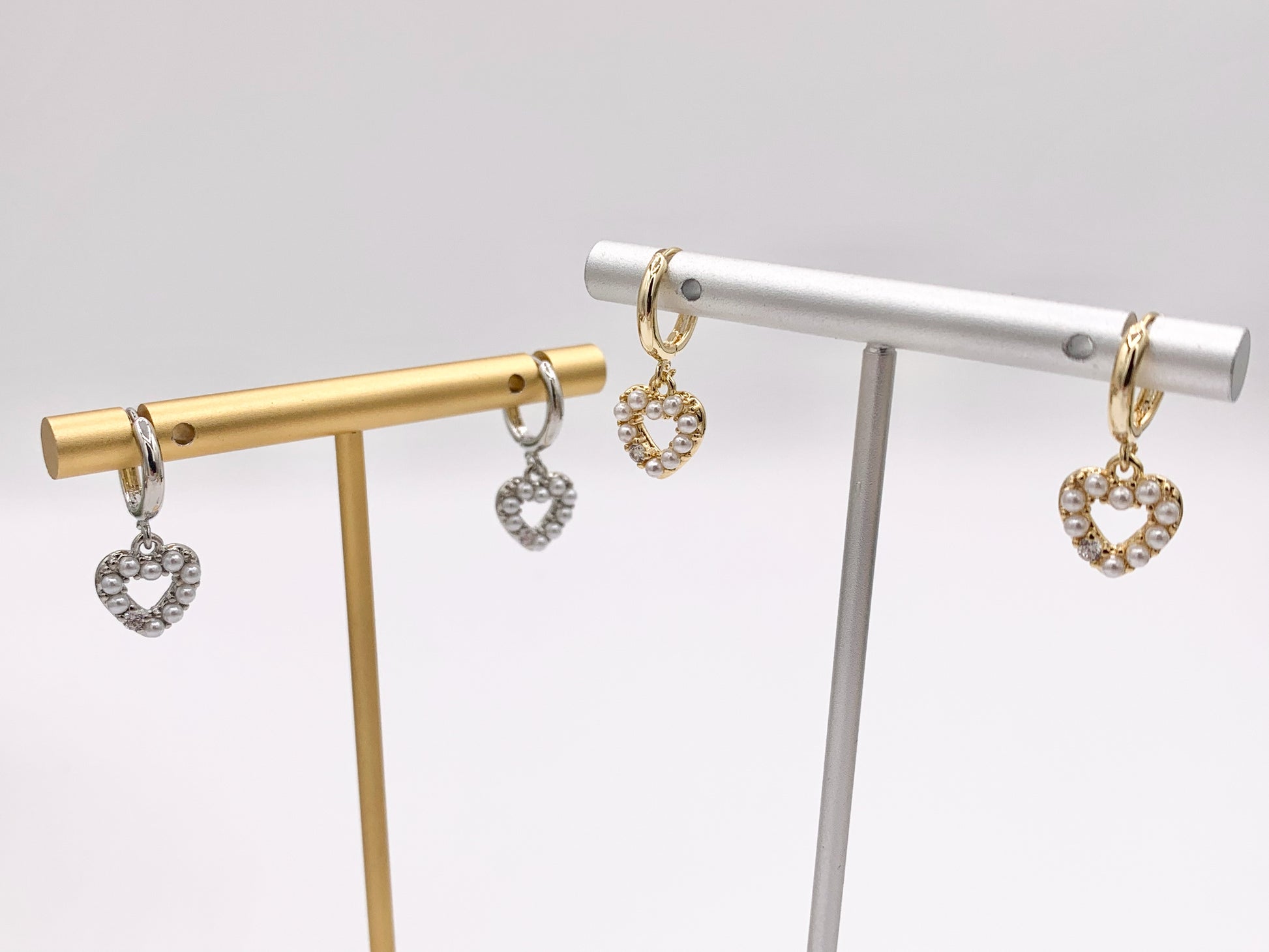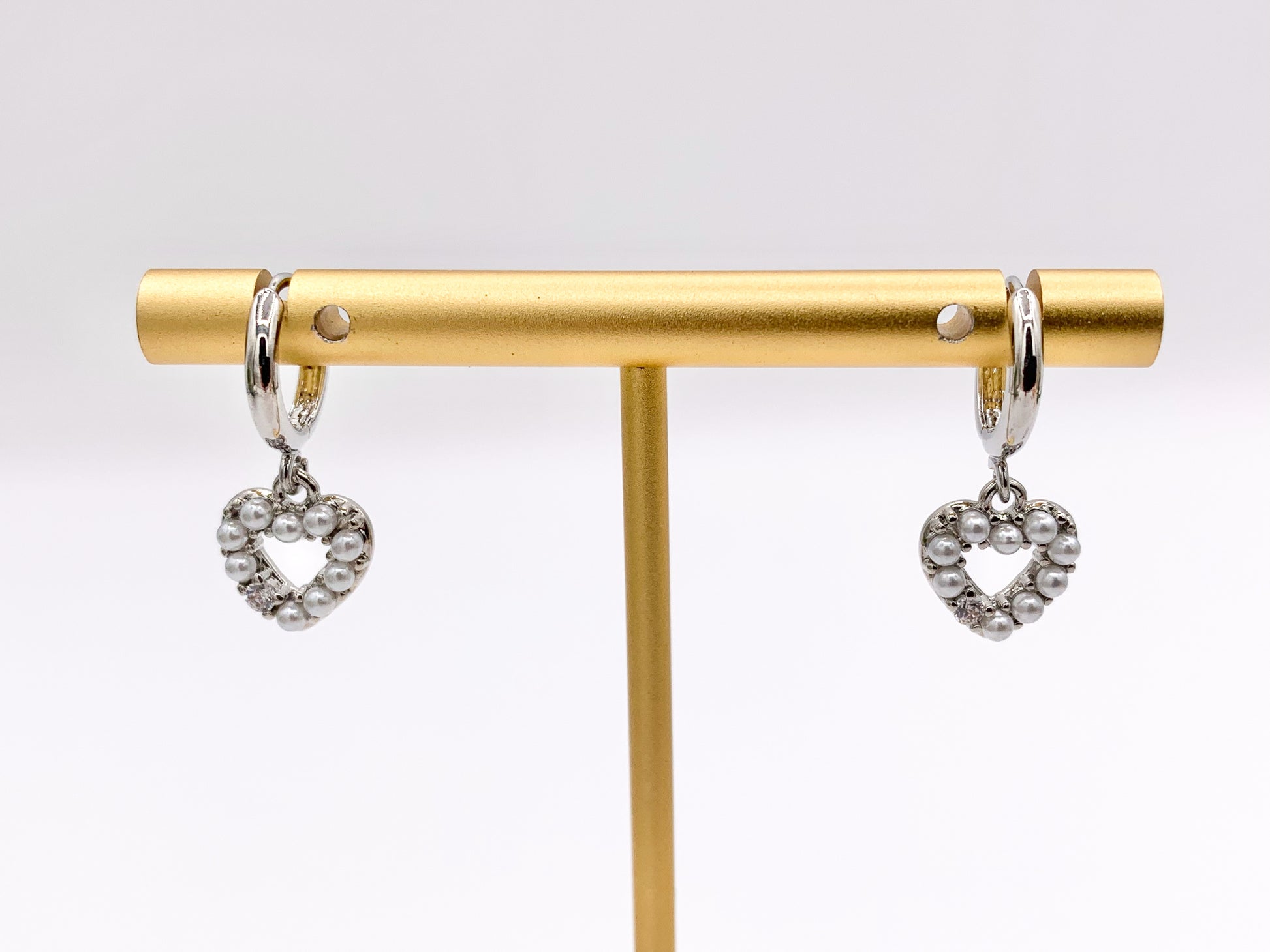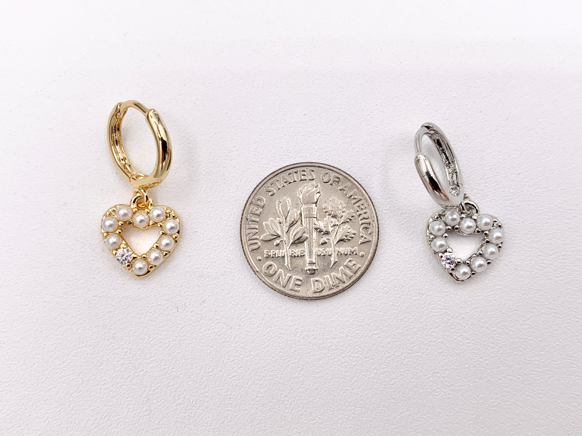 Cute Dangle Pearl Heart Huggie Earrings with CZ Pave in 18K Gold/Platinum Plated Copper 4 PAIRS