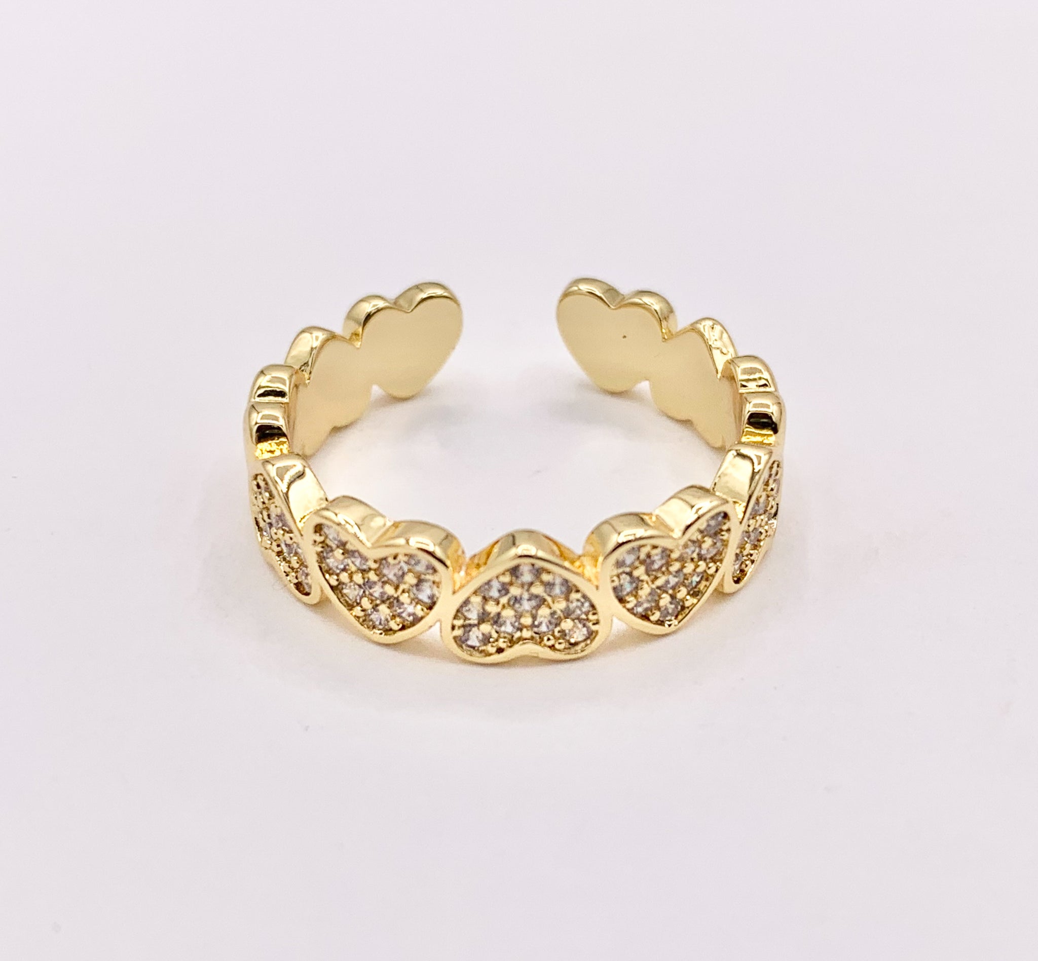 Cute Hearts in Cubic Zirconia Rhinestone Adjustable Rings Bands in 18K Gold Plated Copper