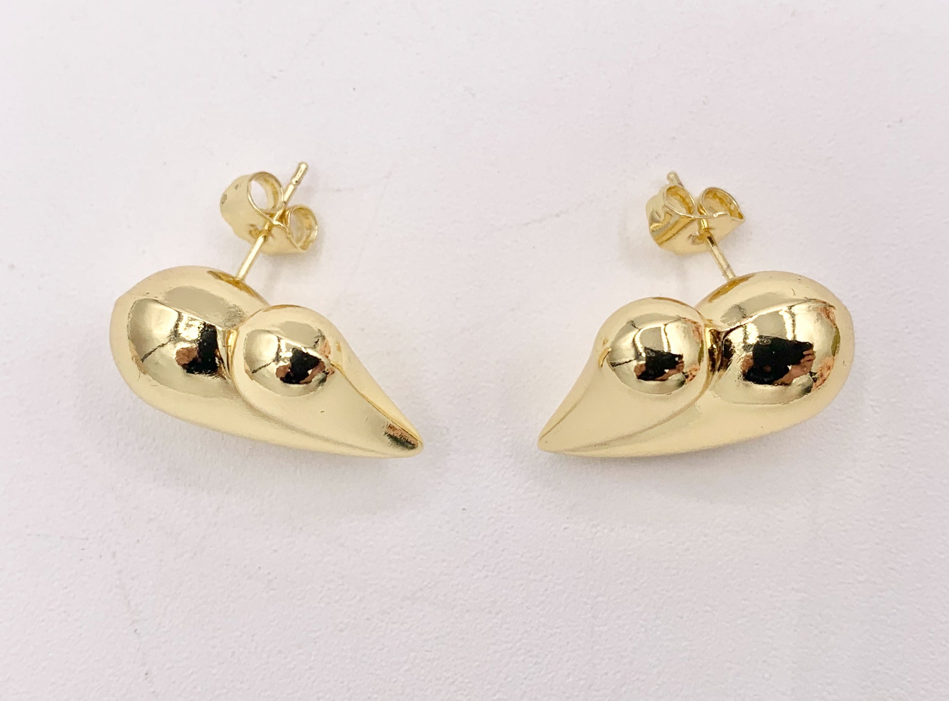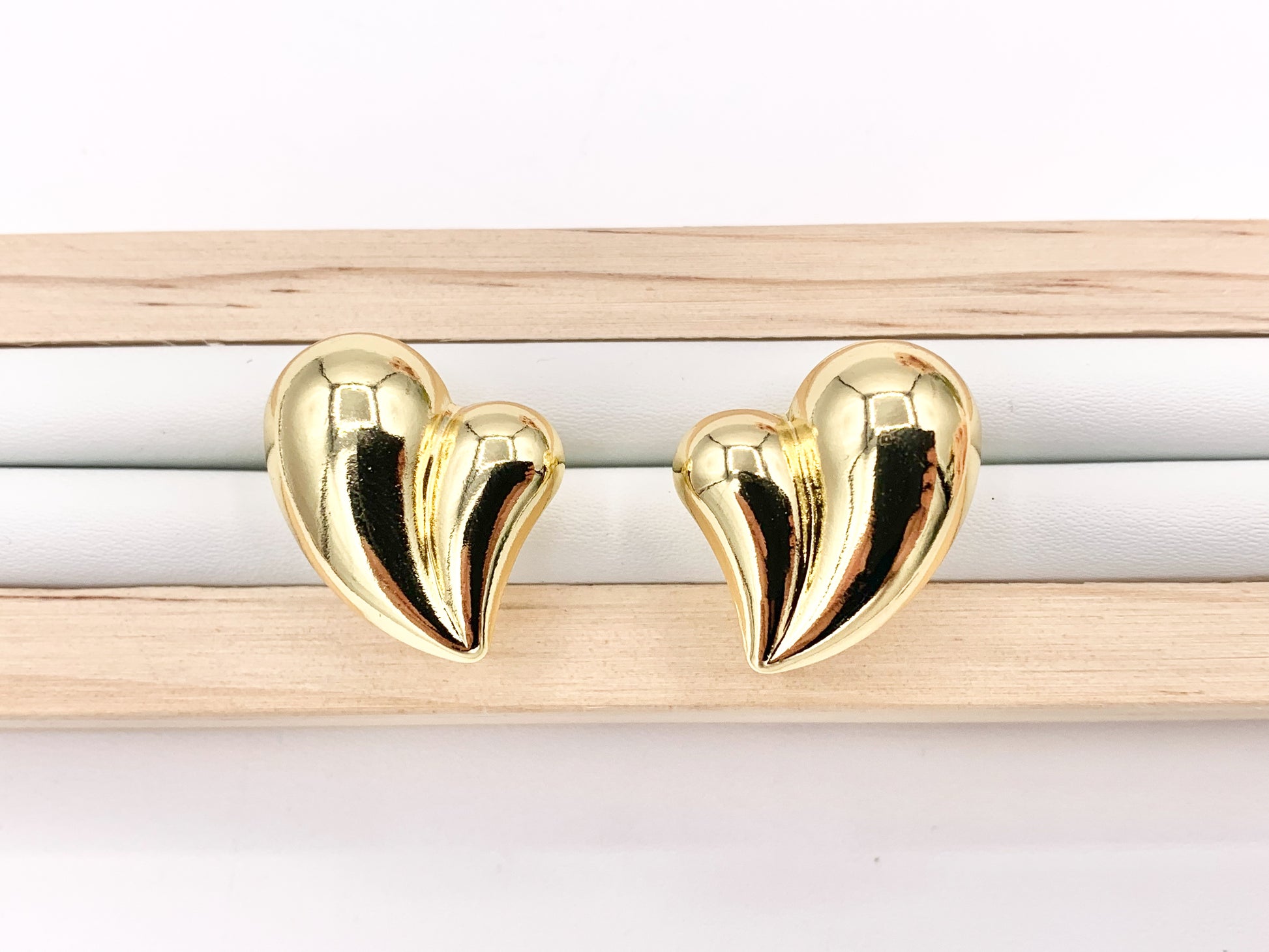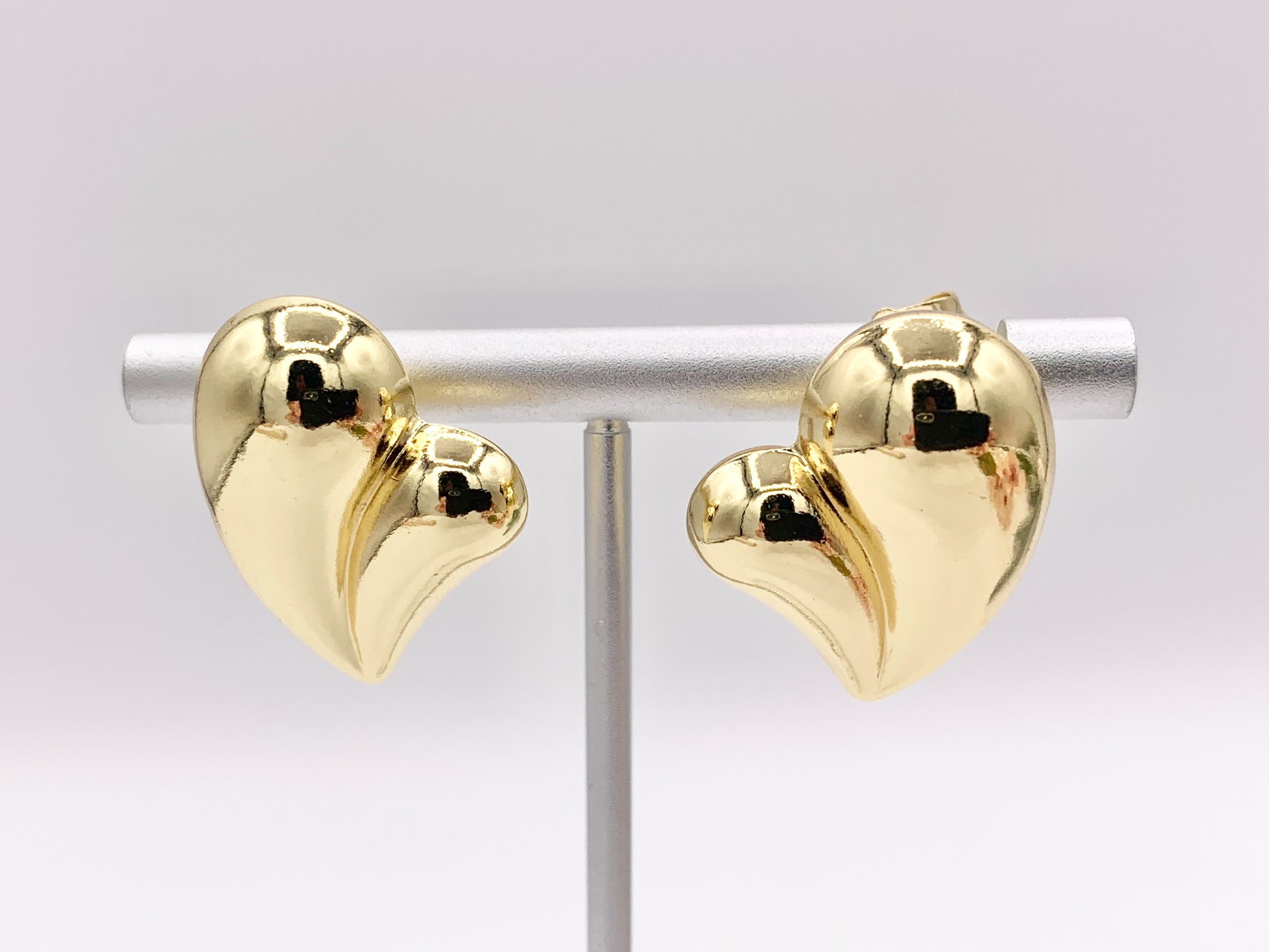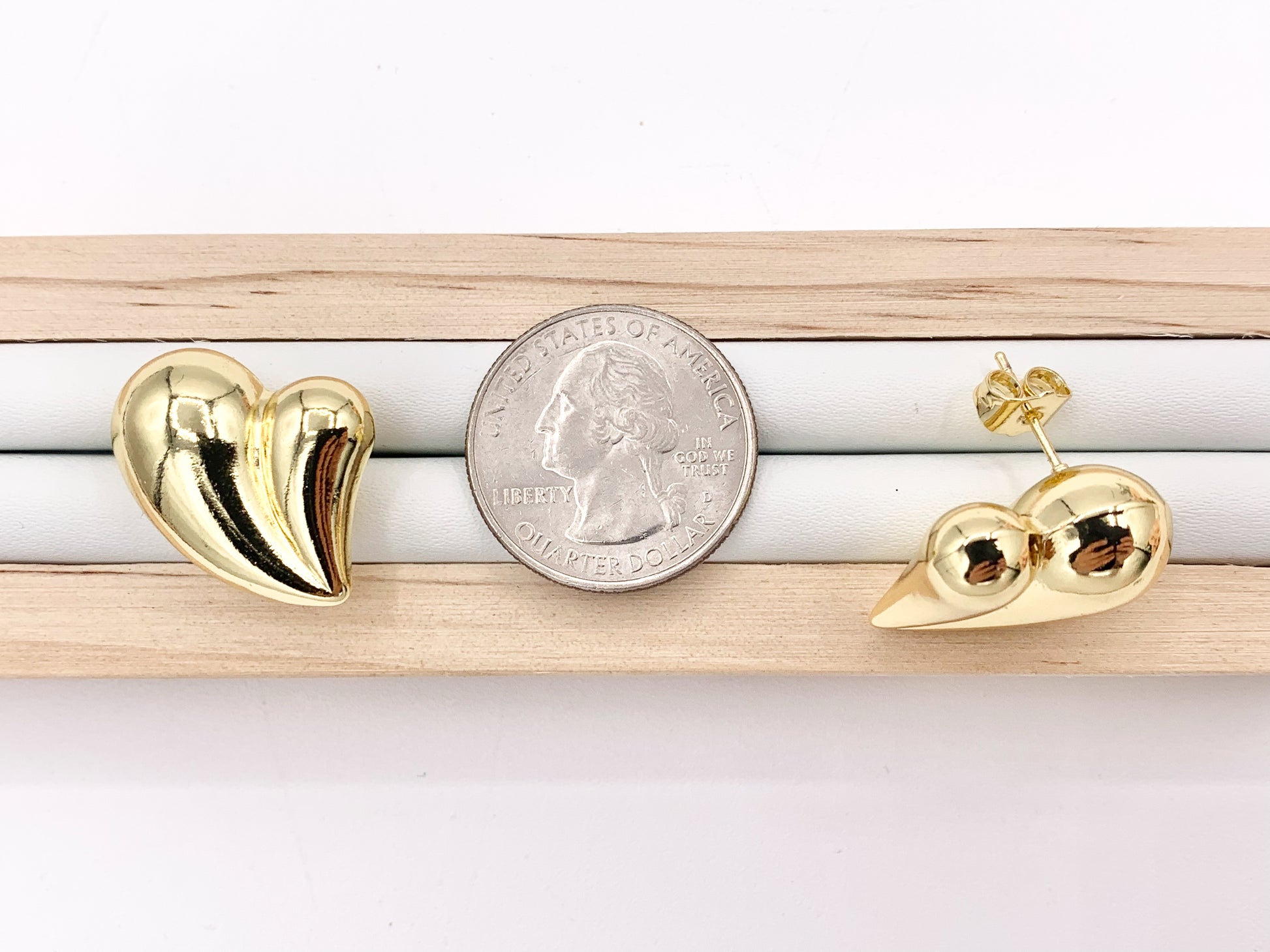 Cute Large Puffy Heart Drop Earring Stud in Real 18K Gold Plated Over Copper 4 PAIRS