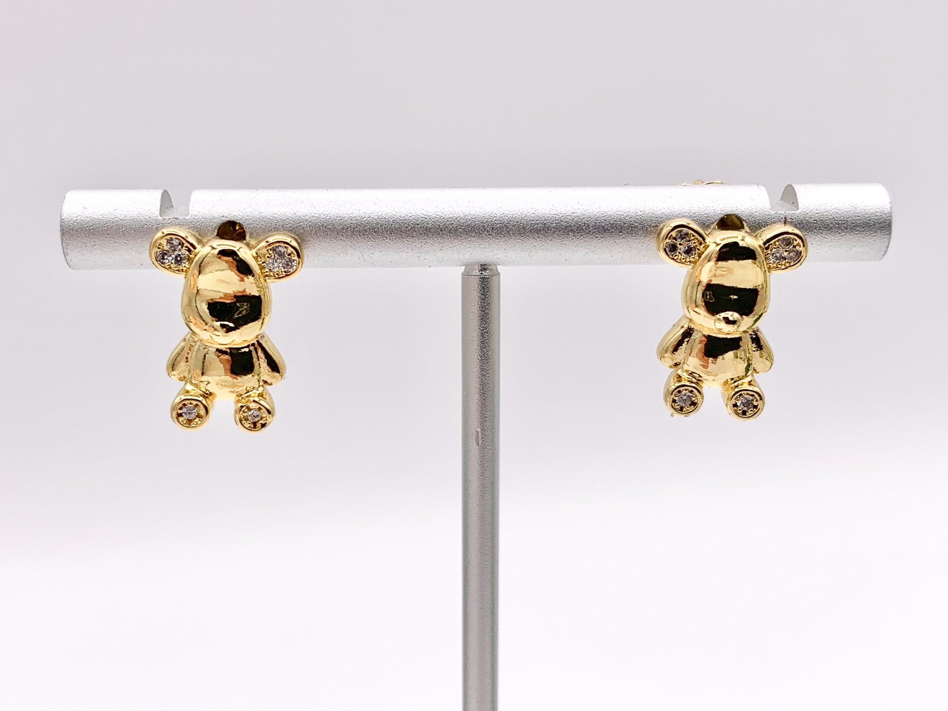 These cute teddy bear earrings are real gold 18K plated with a brass base.