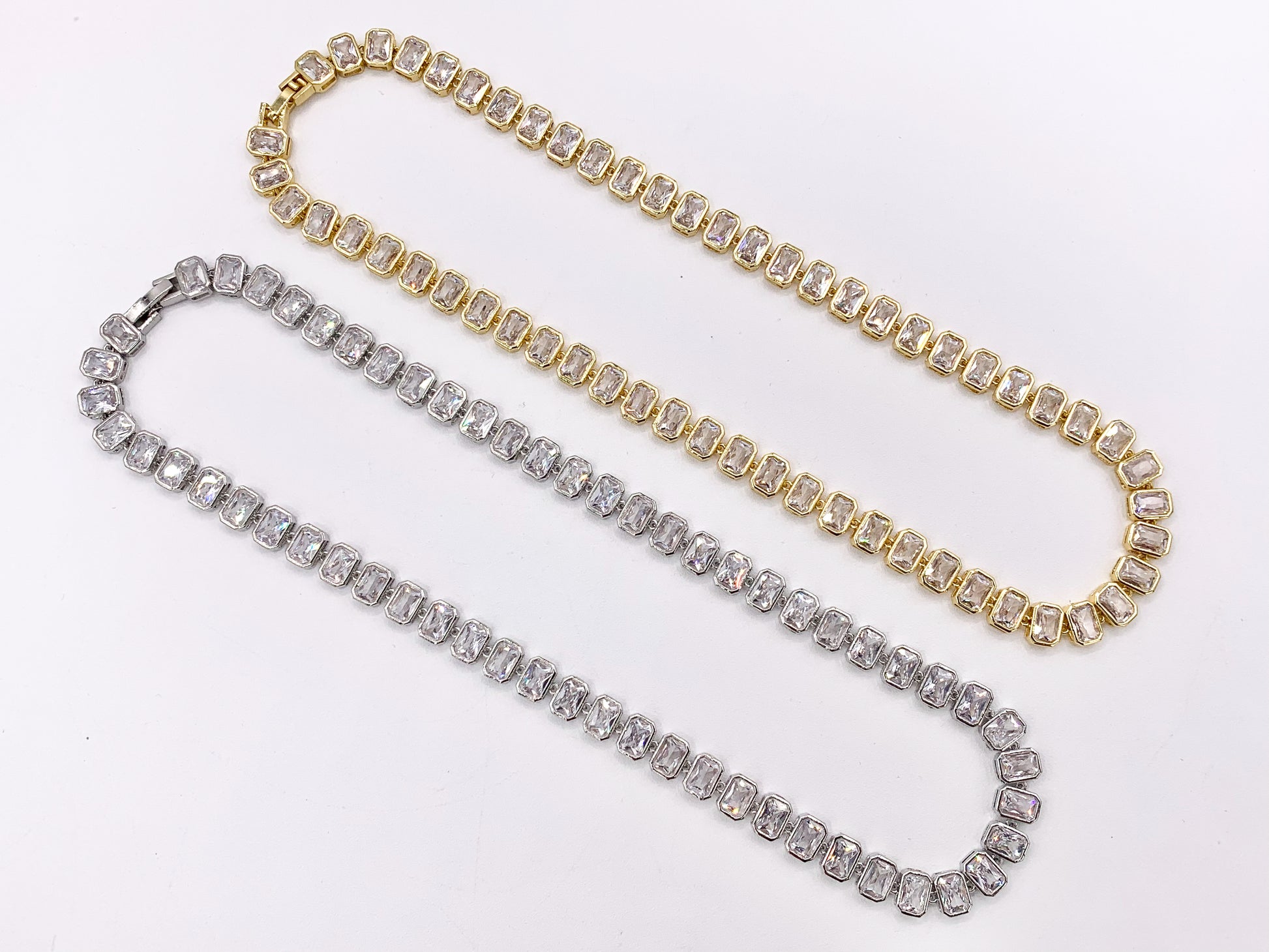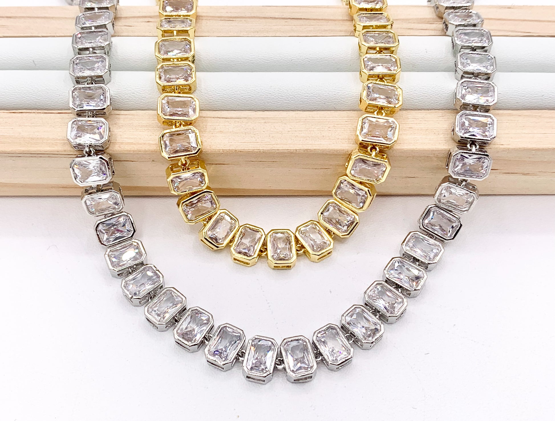 CZ Pave Baguette 16" Necklace / 7" Bracelet Gold/Platinum Plated Copper