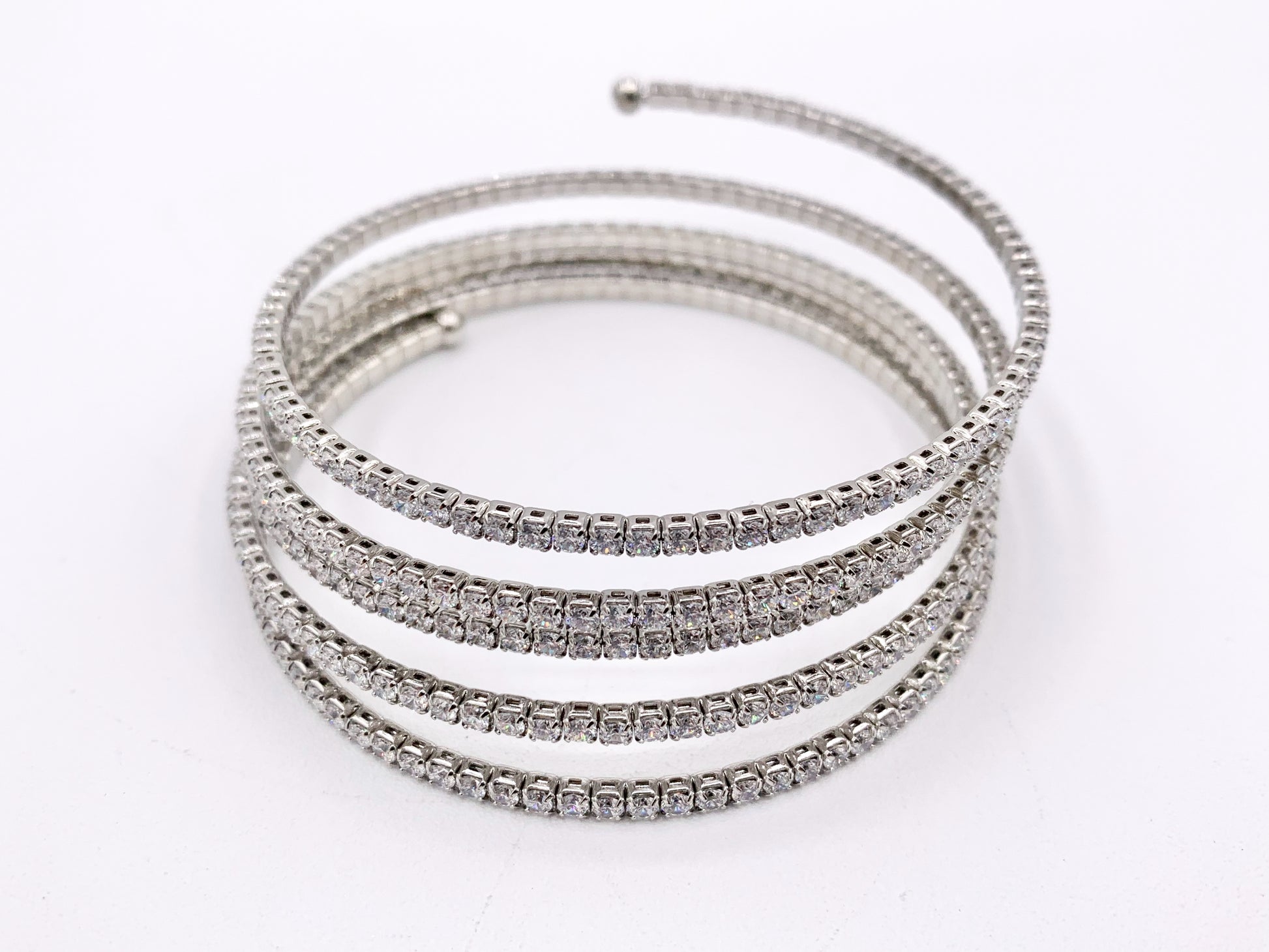 CZ Pave Rhinestone 5 Layers Baguette Fancy Flexible Bracelet Cuffs In Real Gold/Platinum 18K Plated Copper 2 PCS