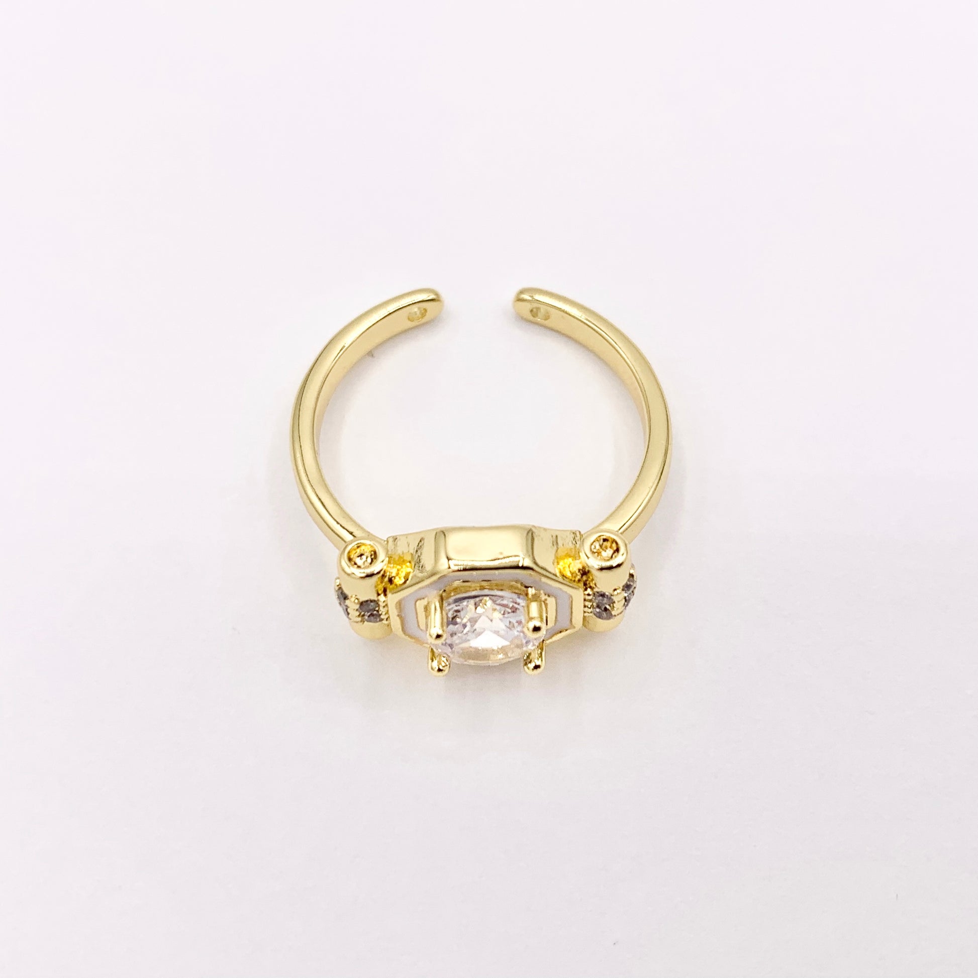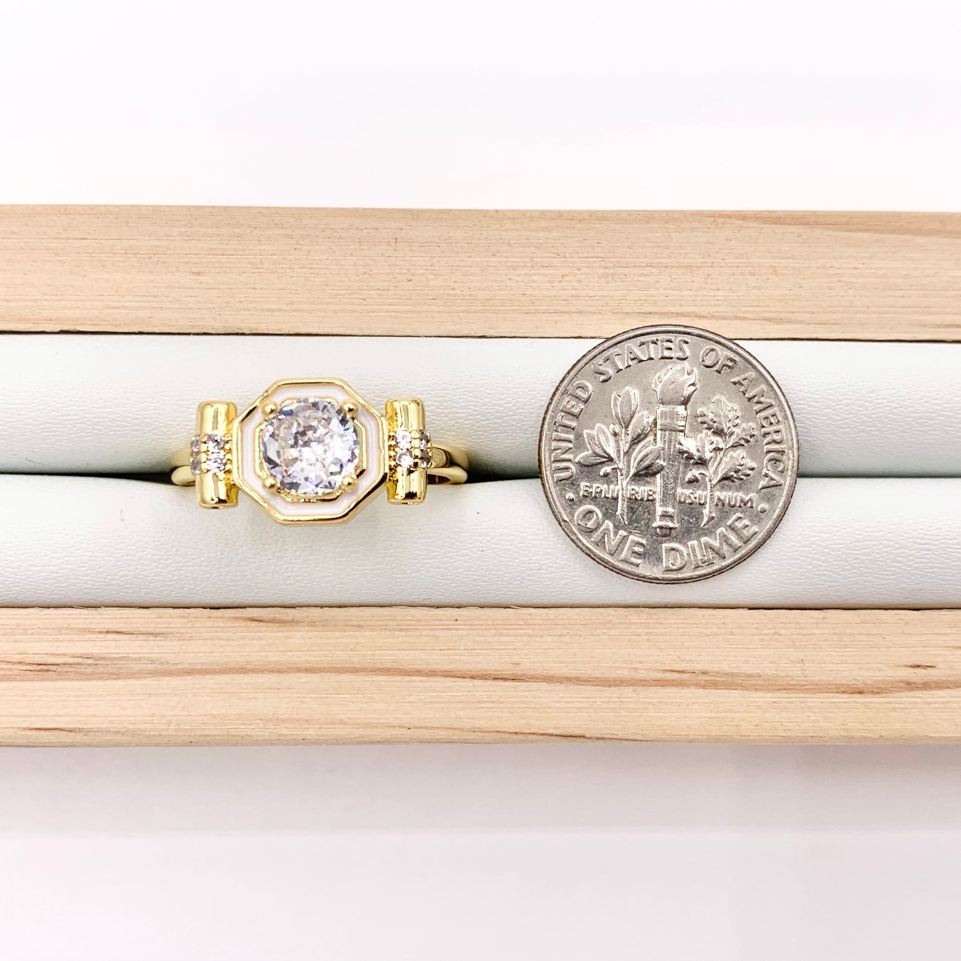 CZ Pave Rhinestone Adjustable Octagon Enamel Rings in 18K Gold Plated Copper 4 PCS