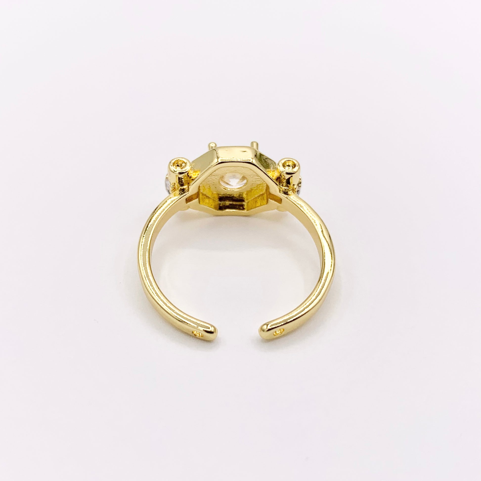 Glamourous Rhinestone Octagon Adjustable Rings in 18K Gold Plated Copper