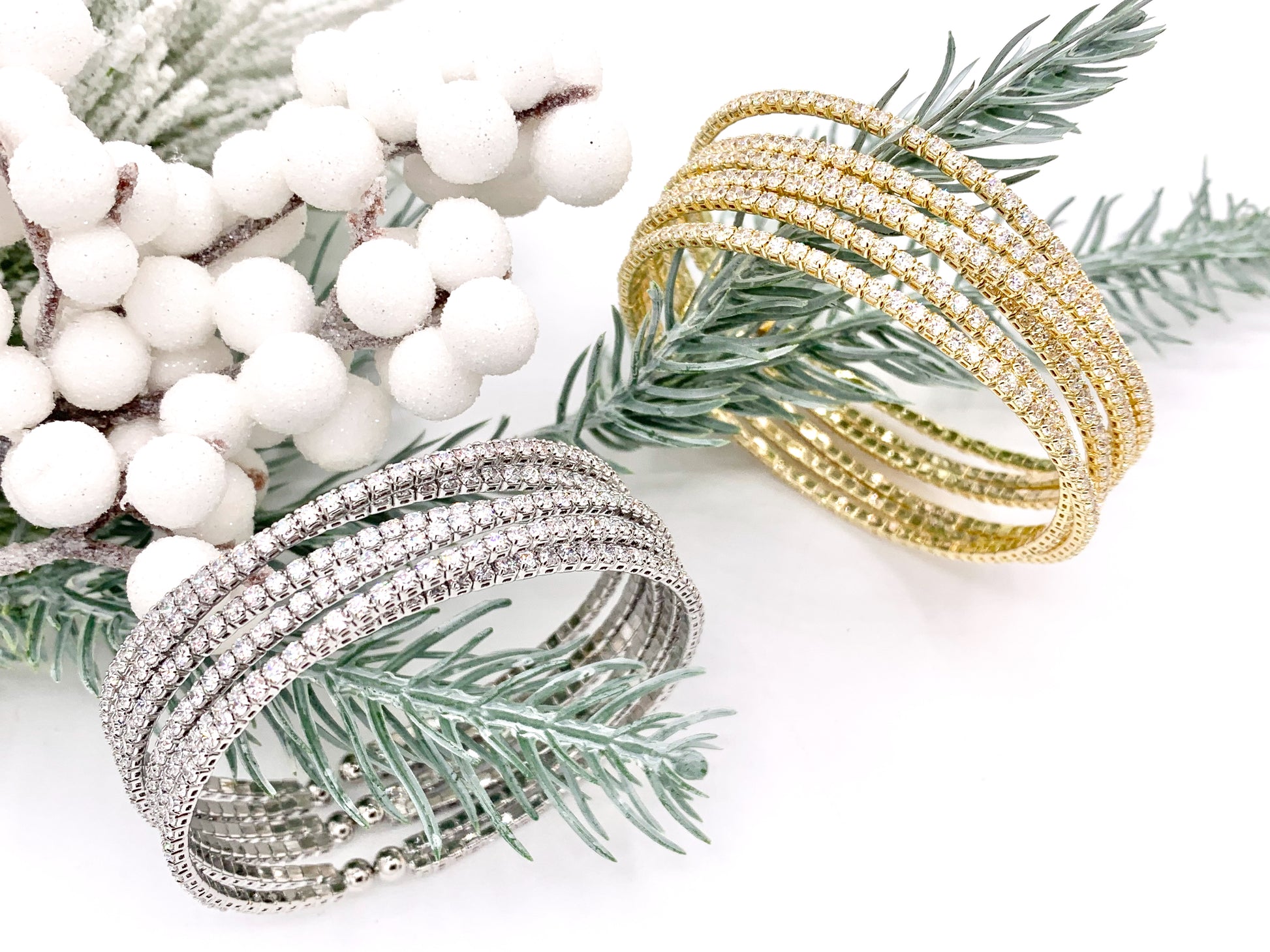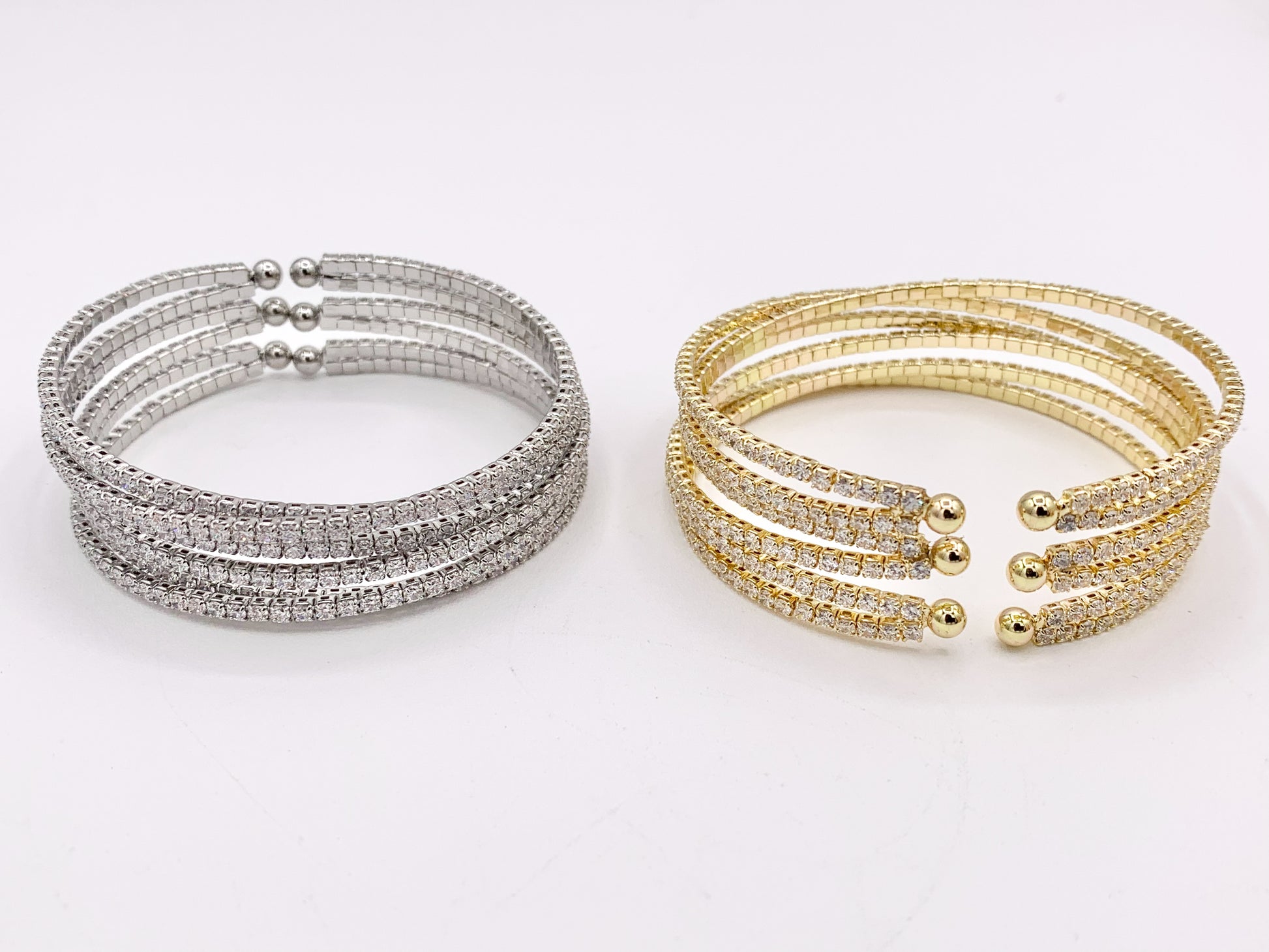 CZ Pave Rhinestone Multi Layers Baguette Fancy Flexible Snap On Bracelet Cuffs In Real Gold/Platinum 18K Plated Copper 1 PC