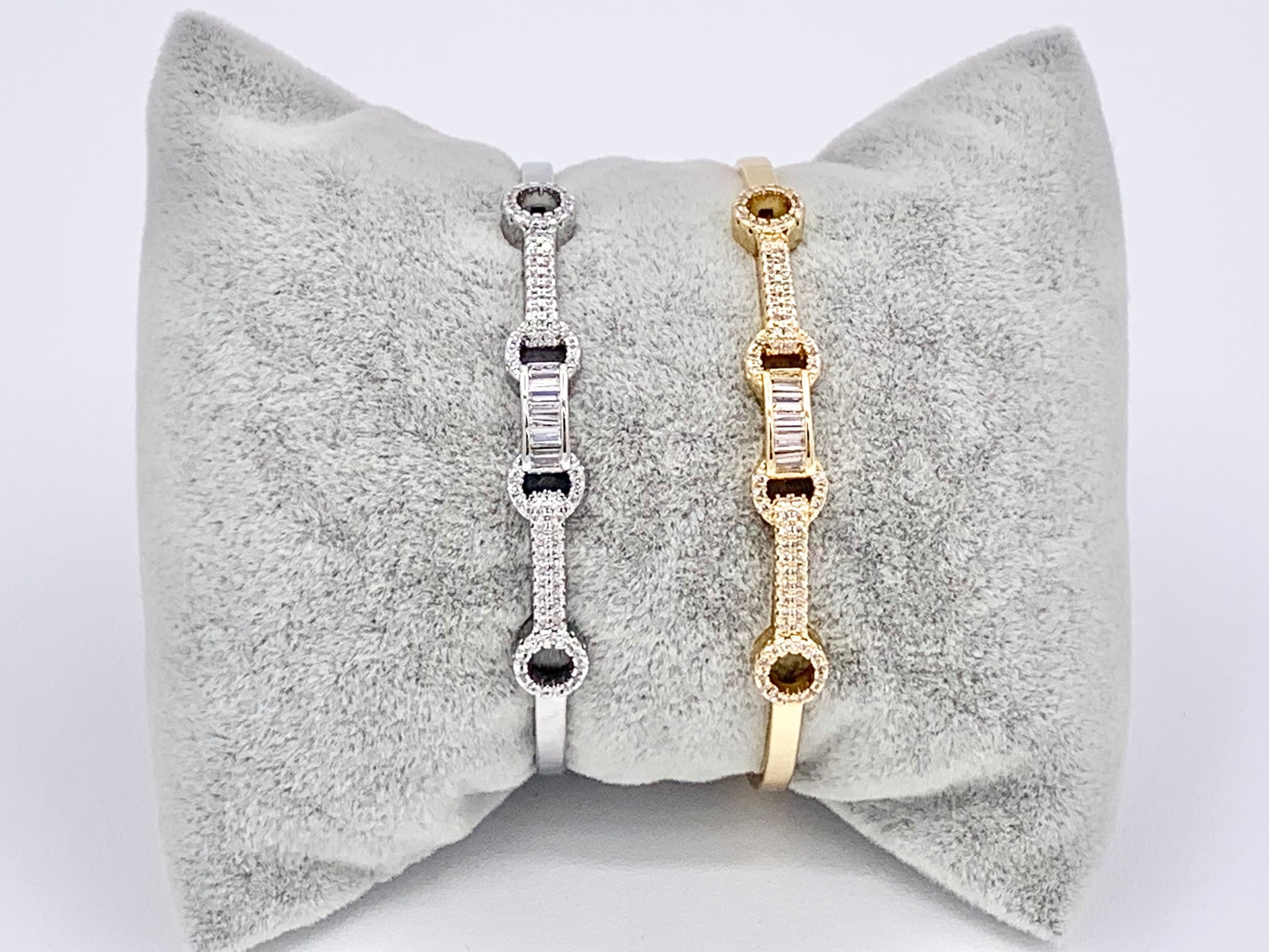 Dainty CZ Pave Fancy Rhinestone Baguette Circle Link Estilo vintage Pulsera Puños Oro real/Platino Cobre chapado en 18 quilates 1 pieza