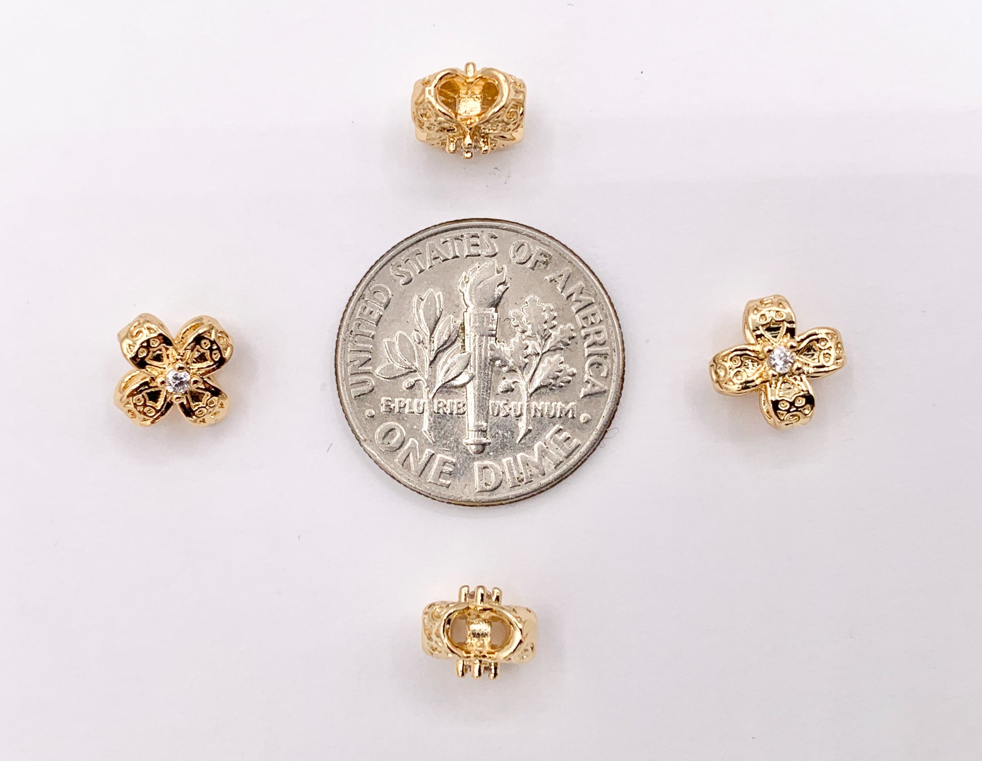 Dainty Mini Flower Quatrefoil Clover Pave Spacer Charms in Real Gold 18K Plated Micro CZ Over Brass 10 PCS