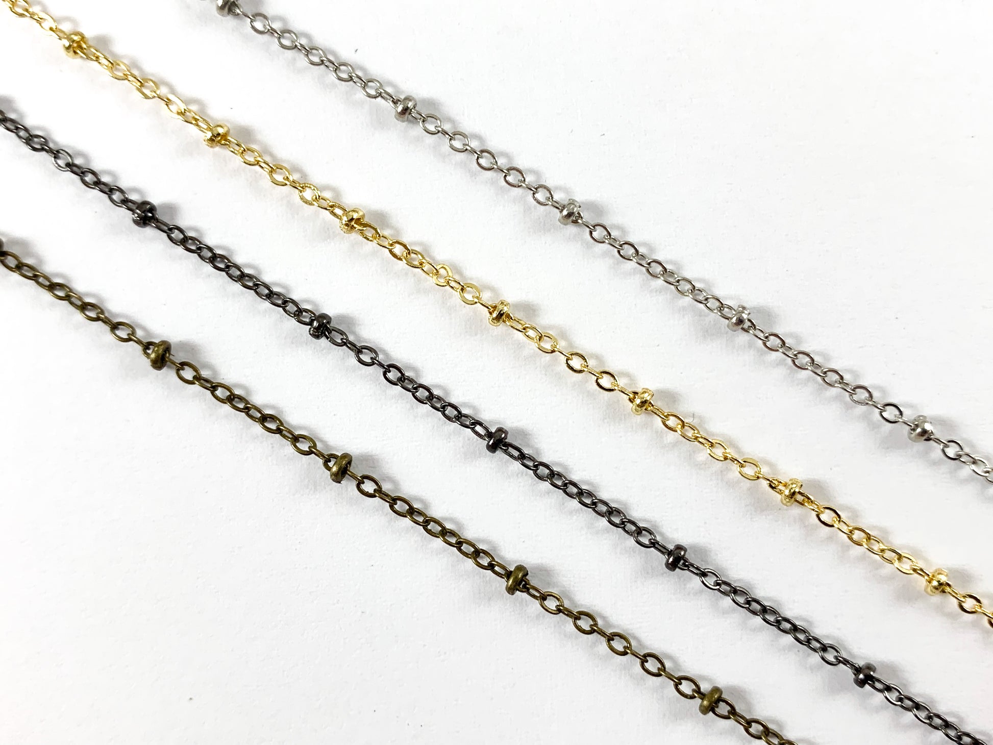 Estas hermosas cadenas satélite son adecuadas para pulseras, collares y cualquier diseño de joyería. ¡Puedes colocarle dijes o colgantes para darle una apariencia más exclusiva! ¡Consulta nuestra tienda para ver dijes e ideas de colgantes!