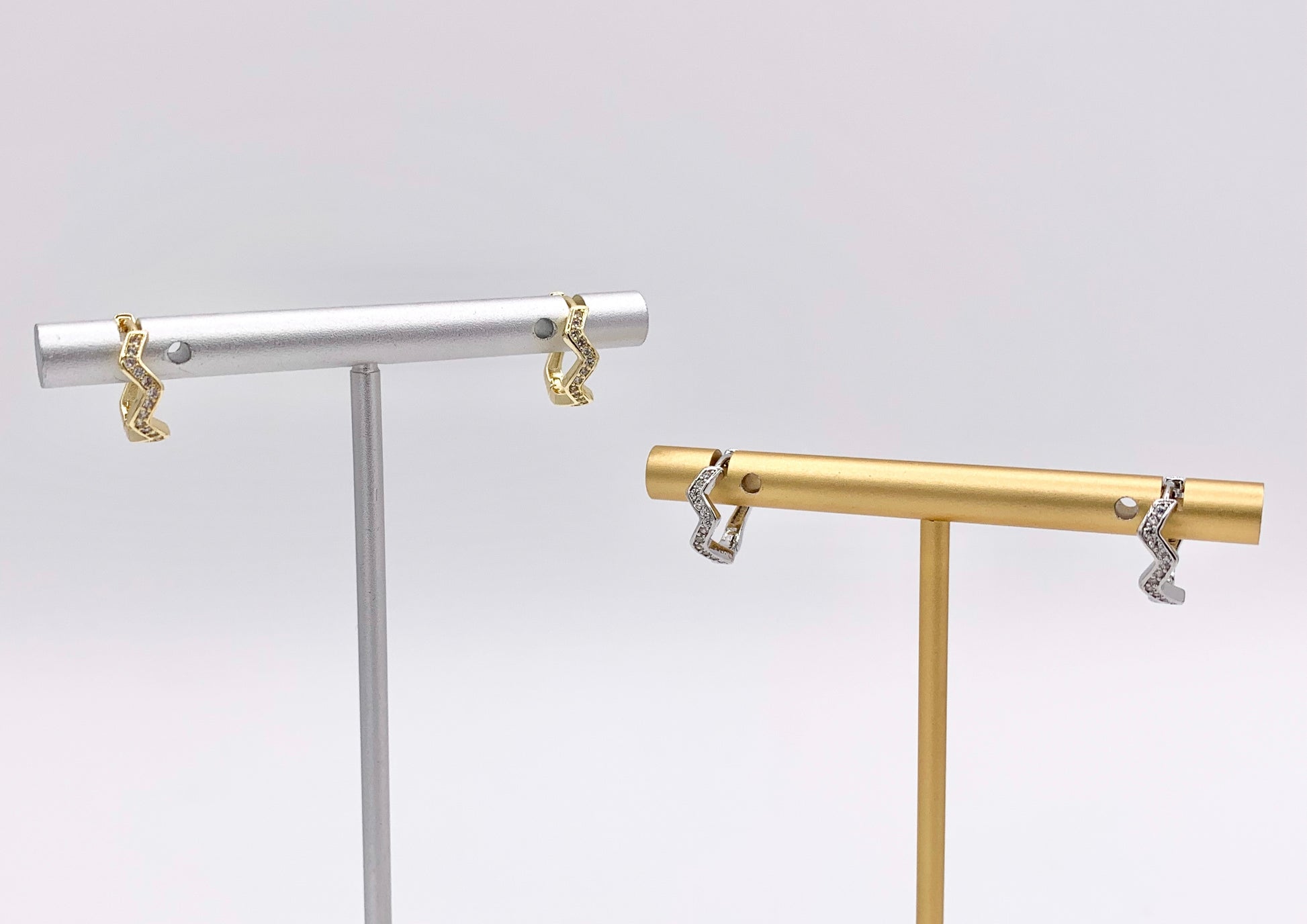 Dainty Cubic Zirconia Wavy 11mm Earring Huggies in 18K Gold or Silver Plated Copper