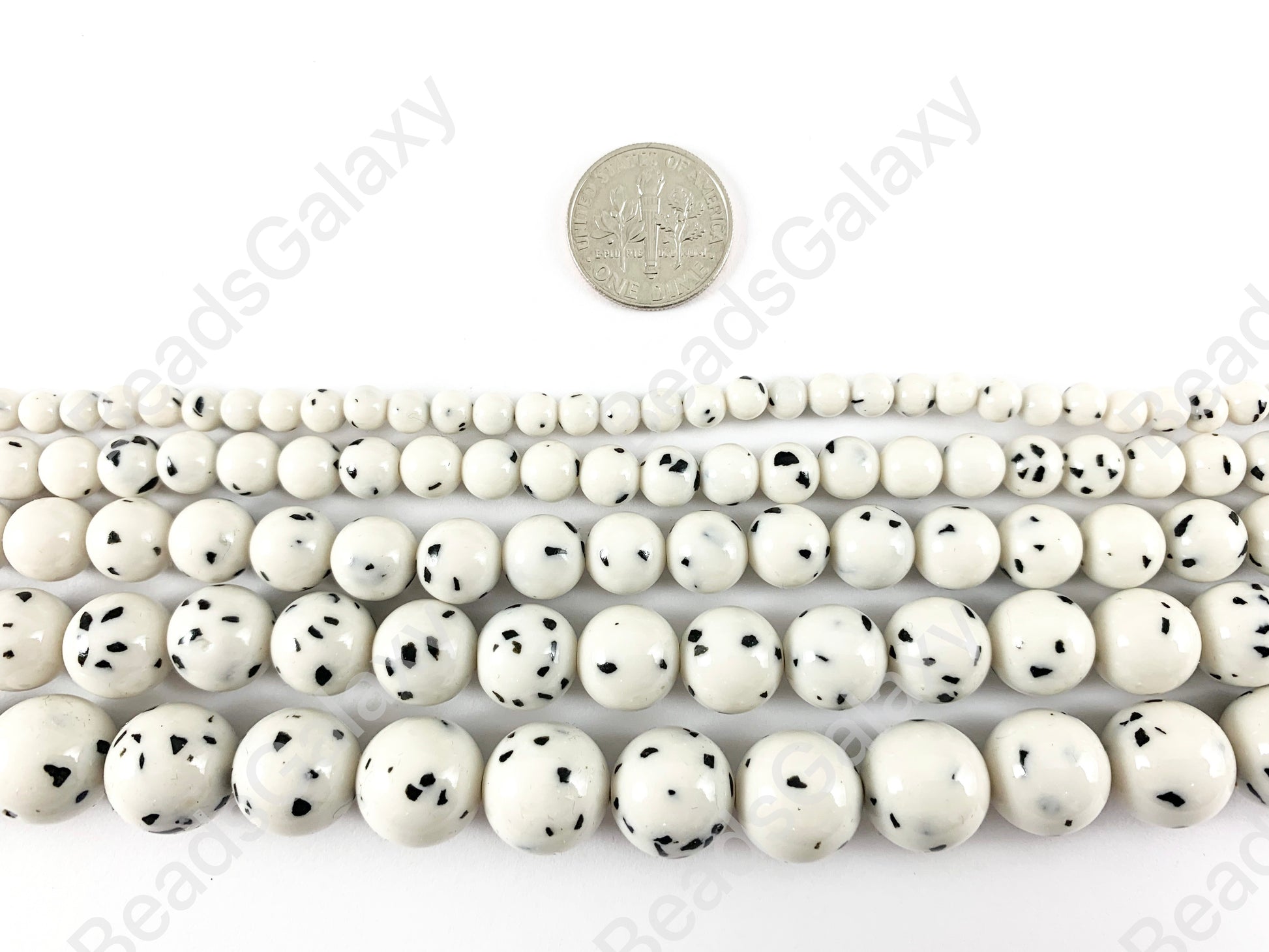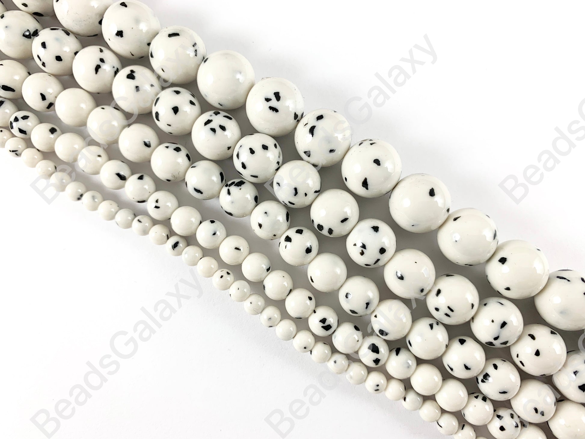 Jade dálmata - Cuentas redondas en escamas negras de lunares lisos y brillantes alrededor de hebras de 15 pulgadas