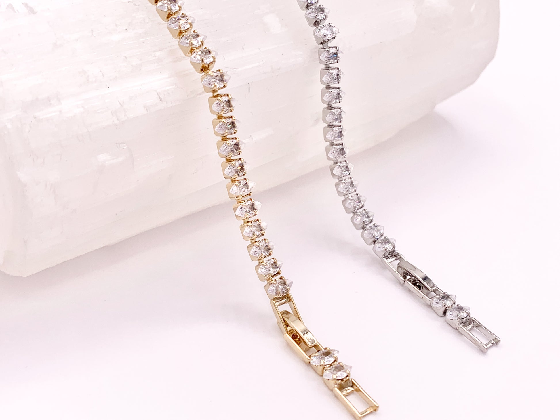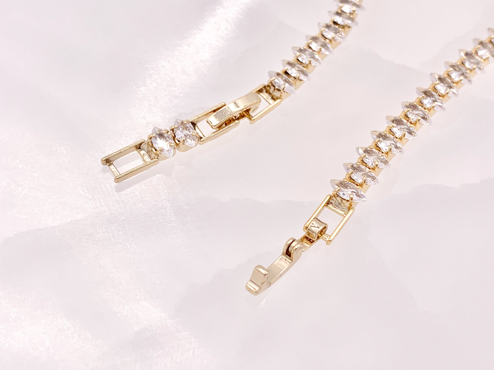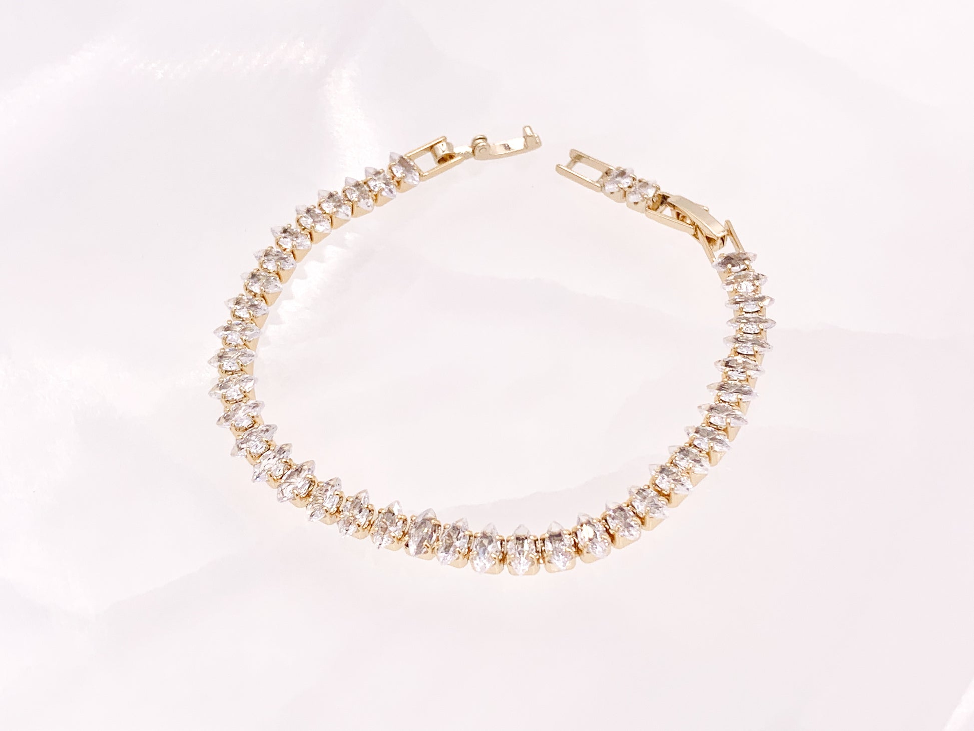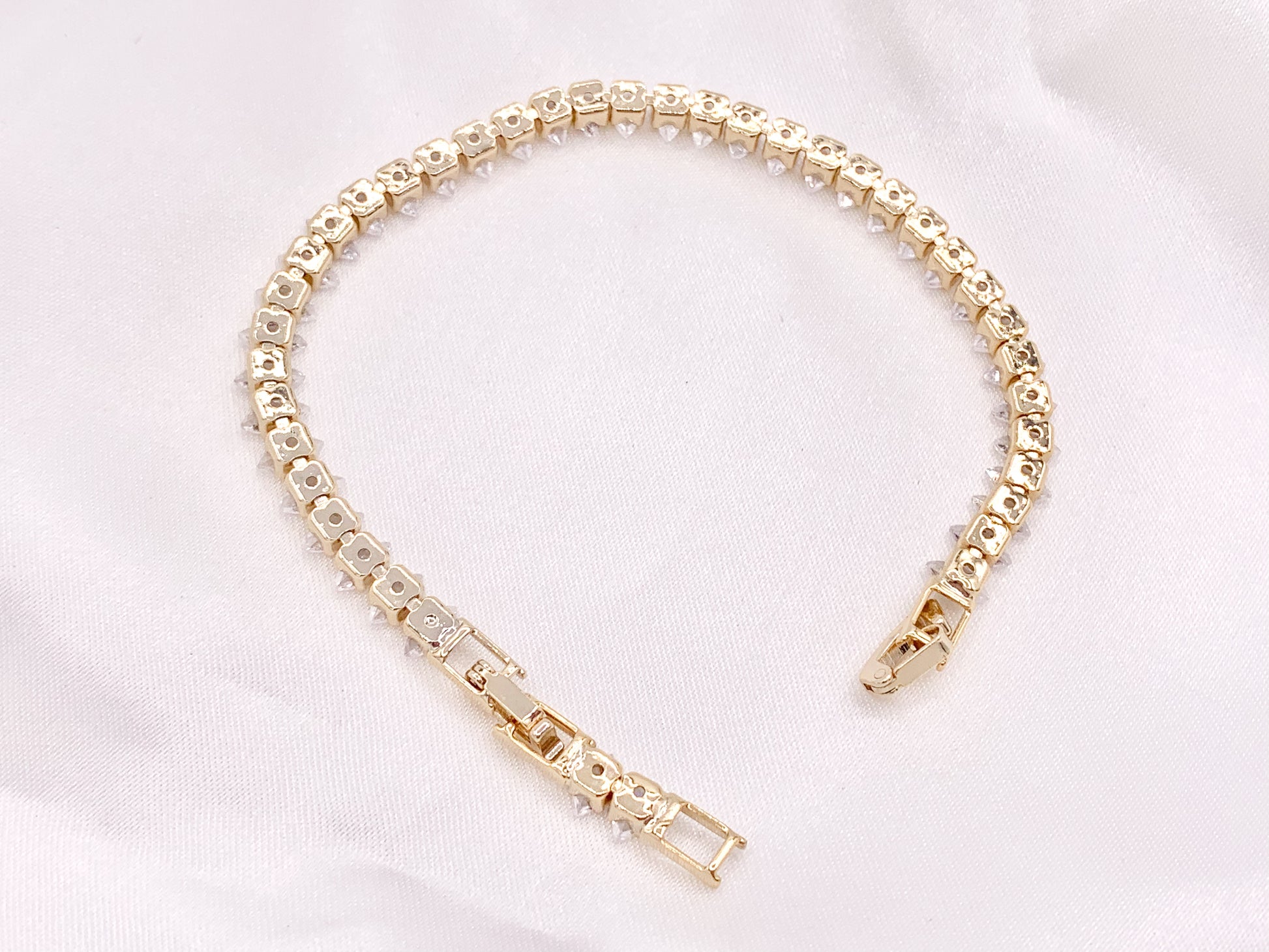 Delicada pulsera de tenis con cadena de copa de diamantes de imitación de tenis minimalista elegante chapada en oro de 18 quilates y plata