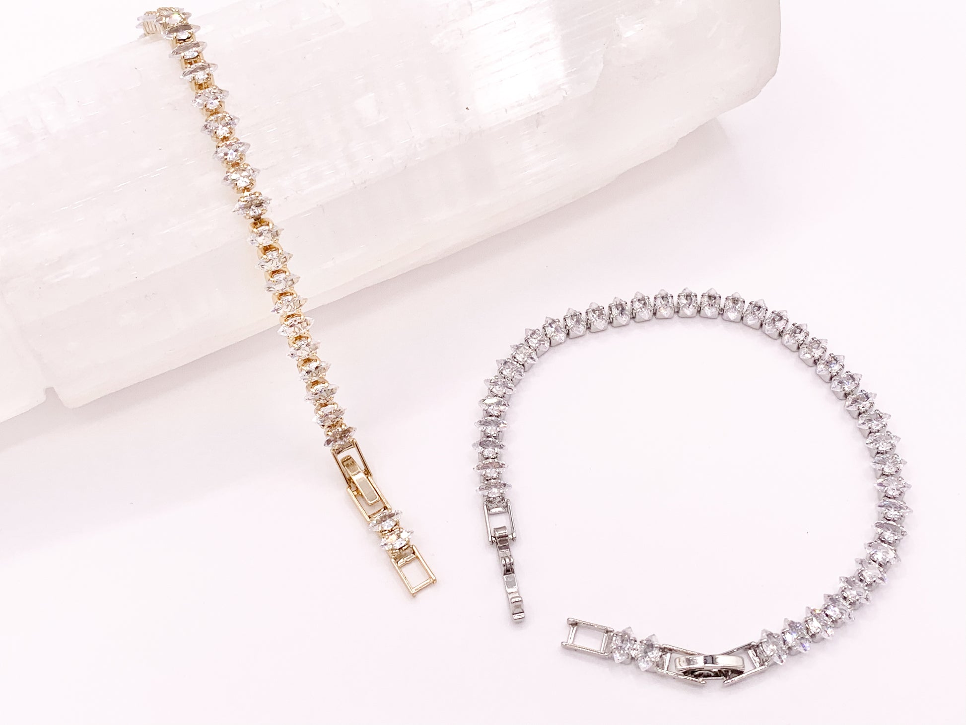 Delicada pulsera ajustable de tenis con cadena de copa de diamantes de imitación de tenis de lujo minimalista chapada en oro de 18 quilates y plata, 3 uds.