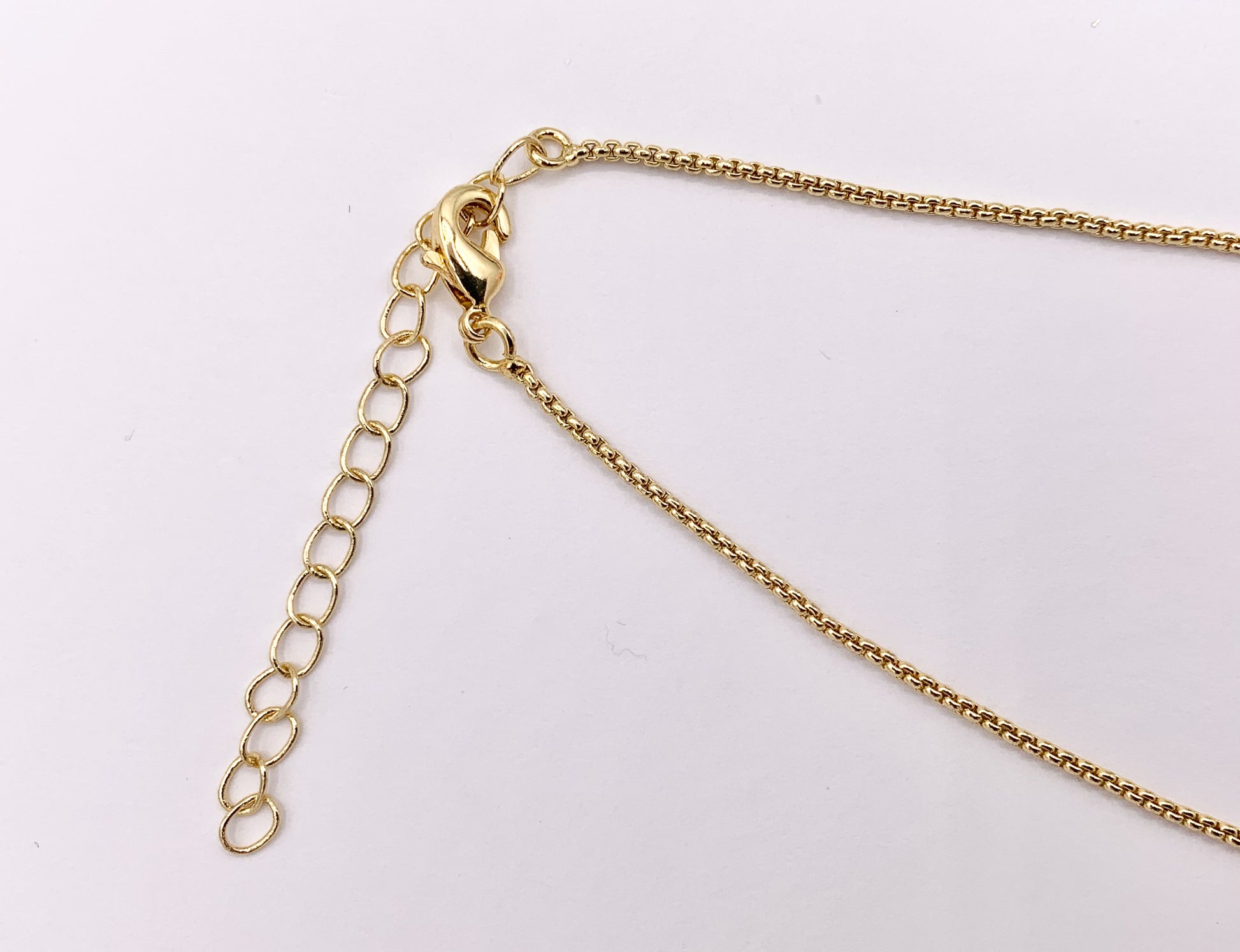 These delicate box chain necklaces are made with gold plated chains and clasp.