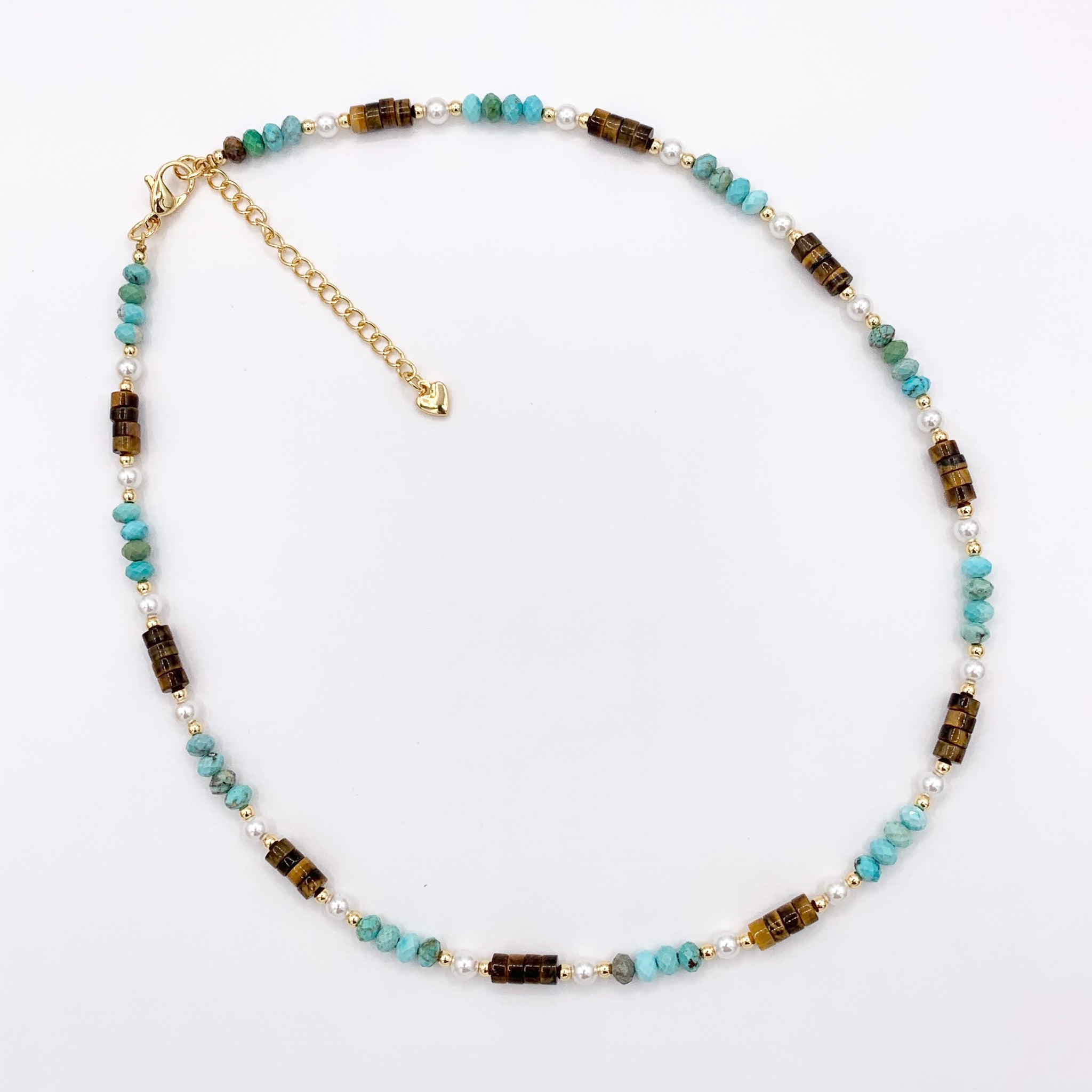 These Tiger's eye, Magnesite & Pearl necklaces are made with real 18k Gold plating.
