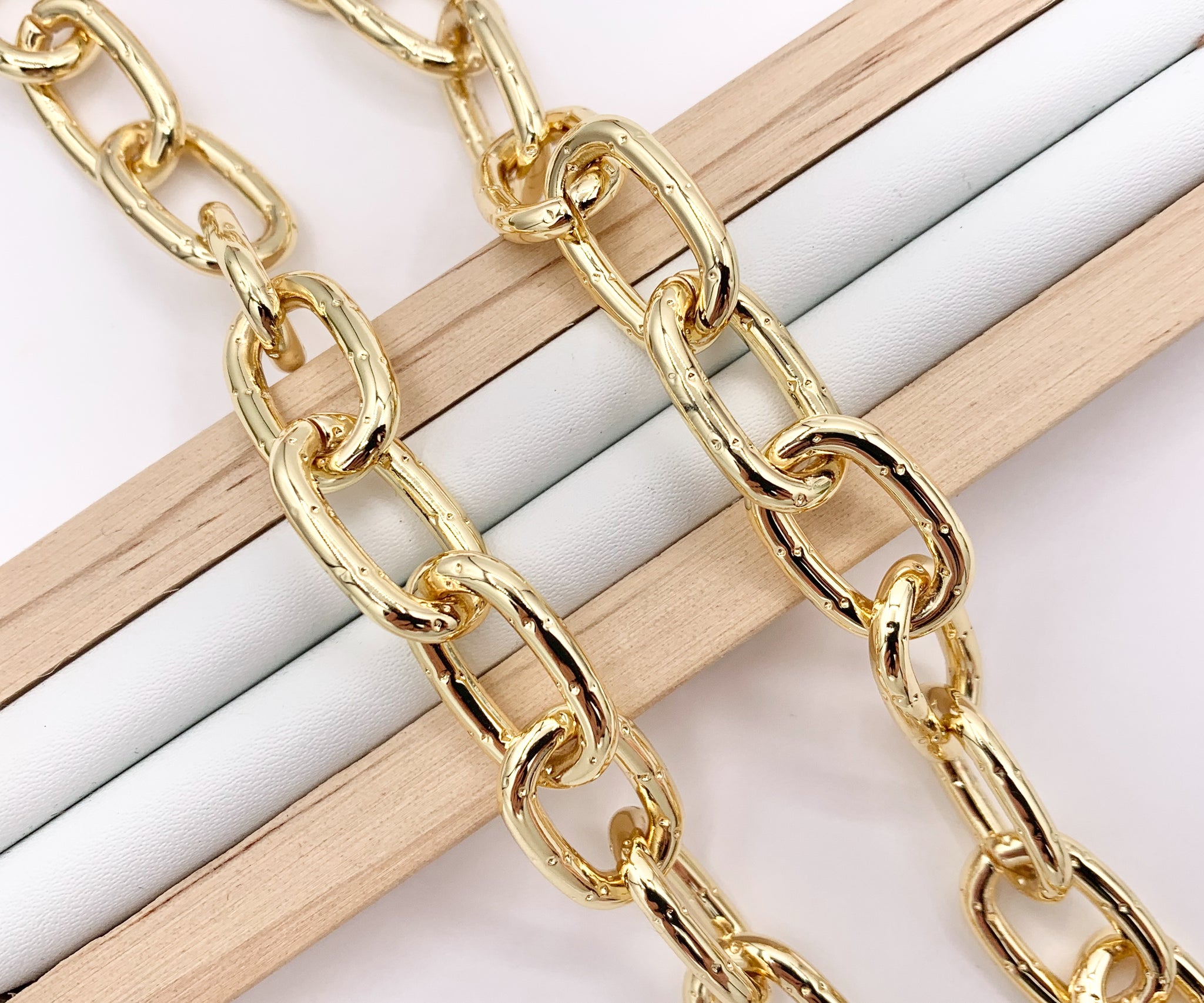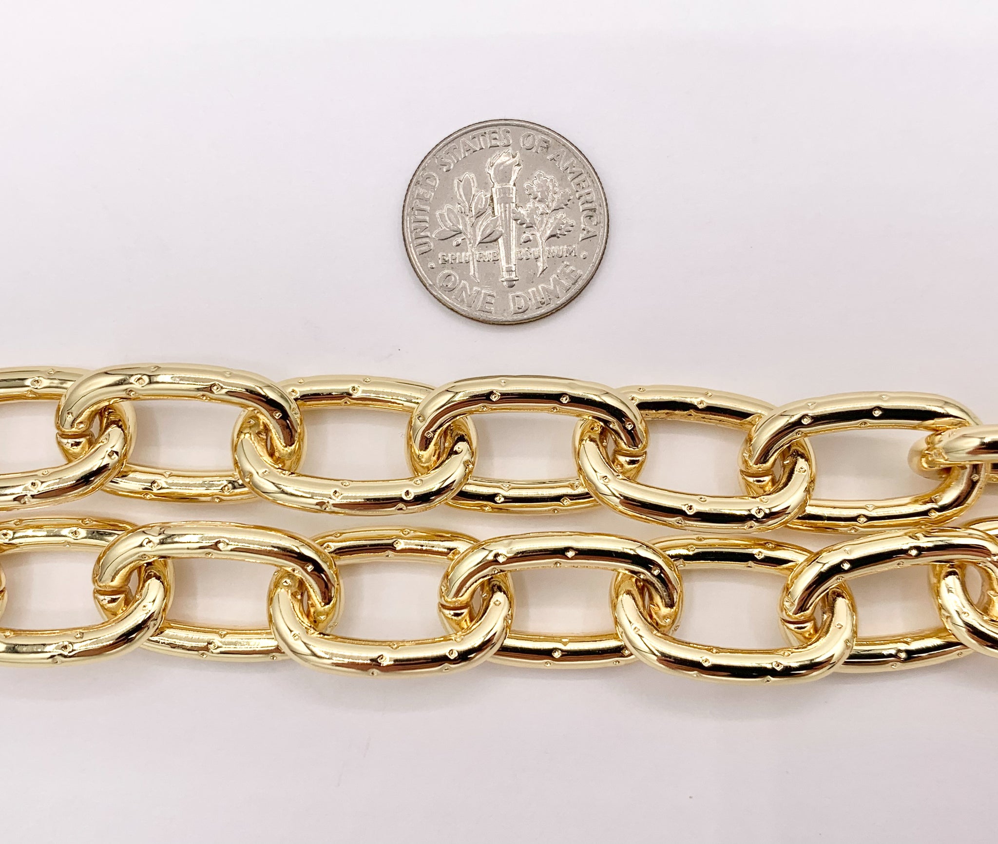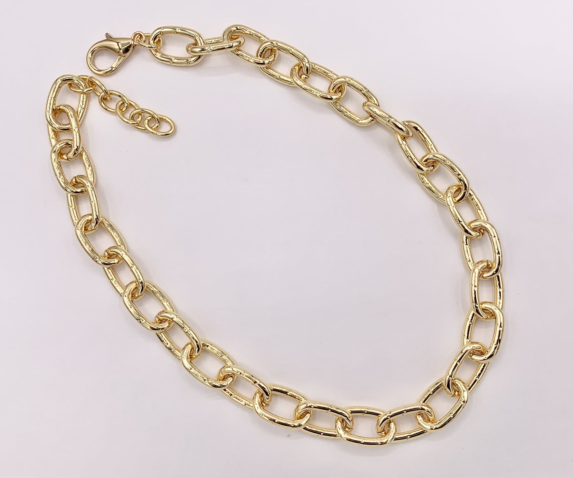 Dotted Oval Link Necklace 18K Gold Plated Copper Finished Necklace 16" with 1.5" Extension Link