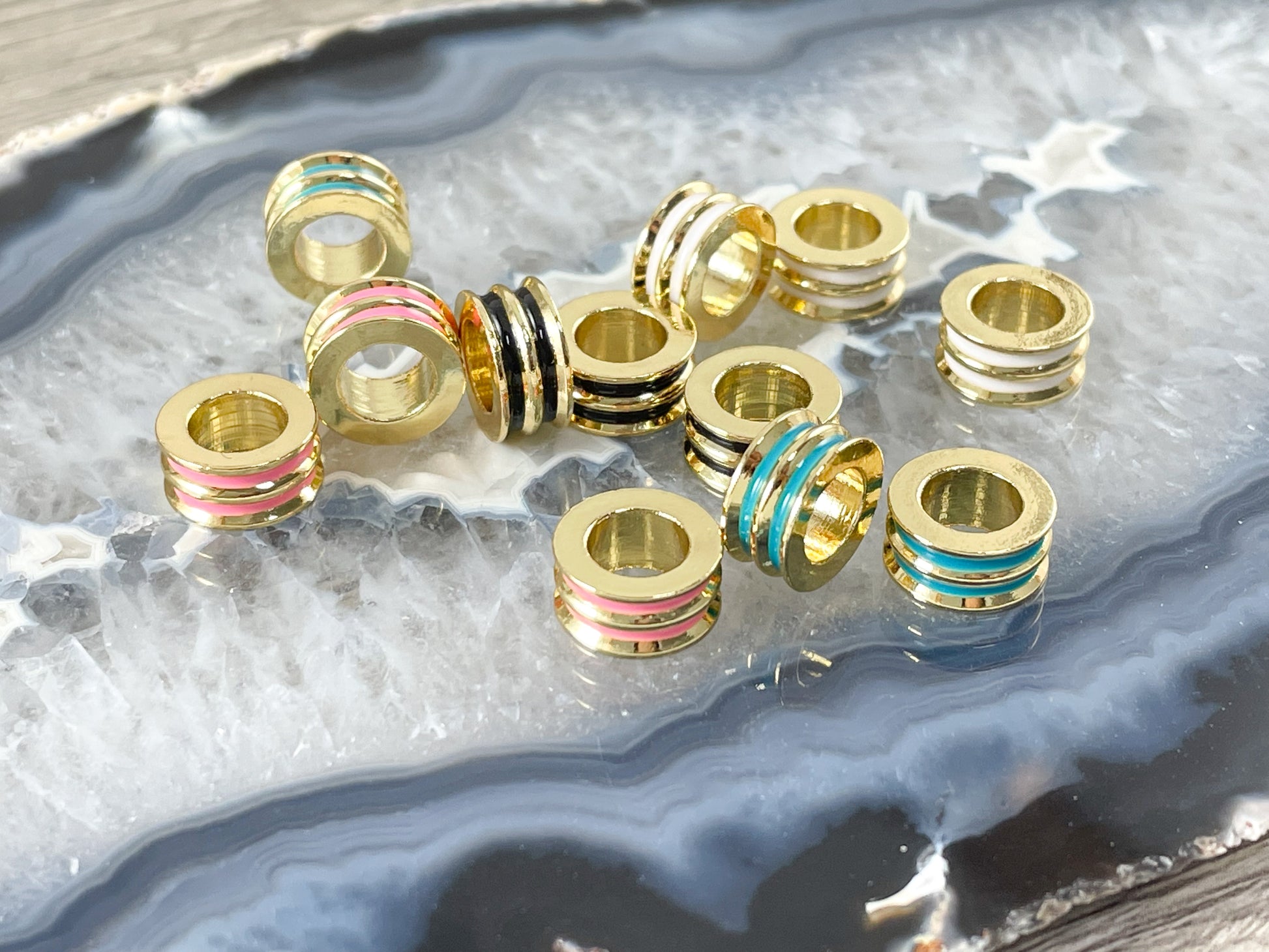 Dije de cuentas espaciadoras con orificio grande Rondelle esmaltado en oro real chapado en oro real de 18 quilates sobre latón, 10 piezas