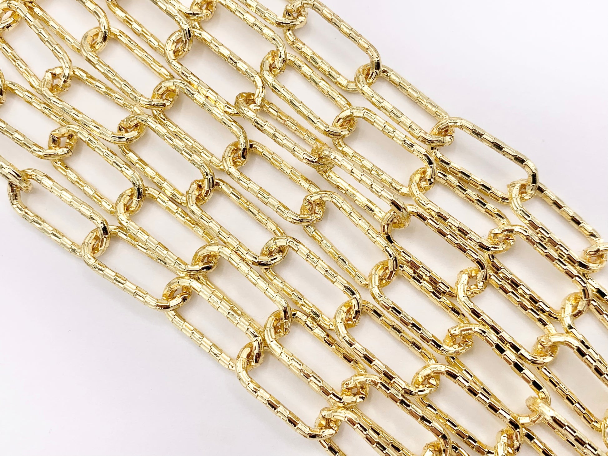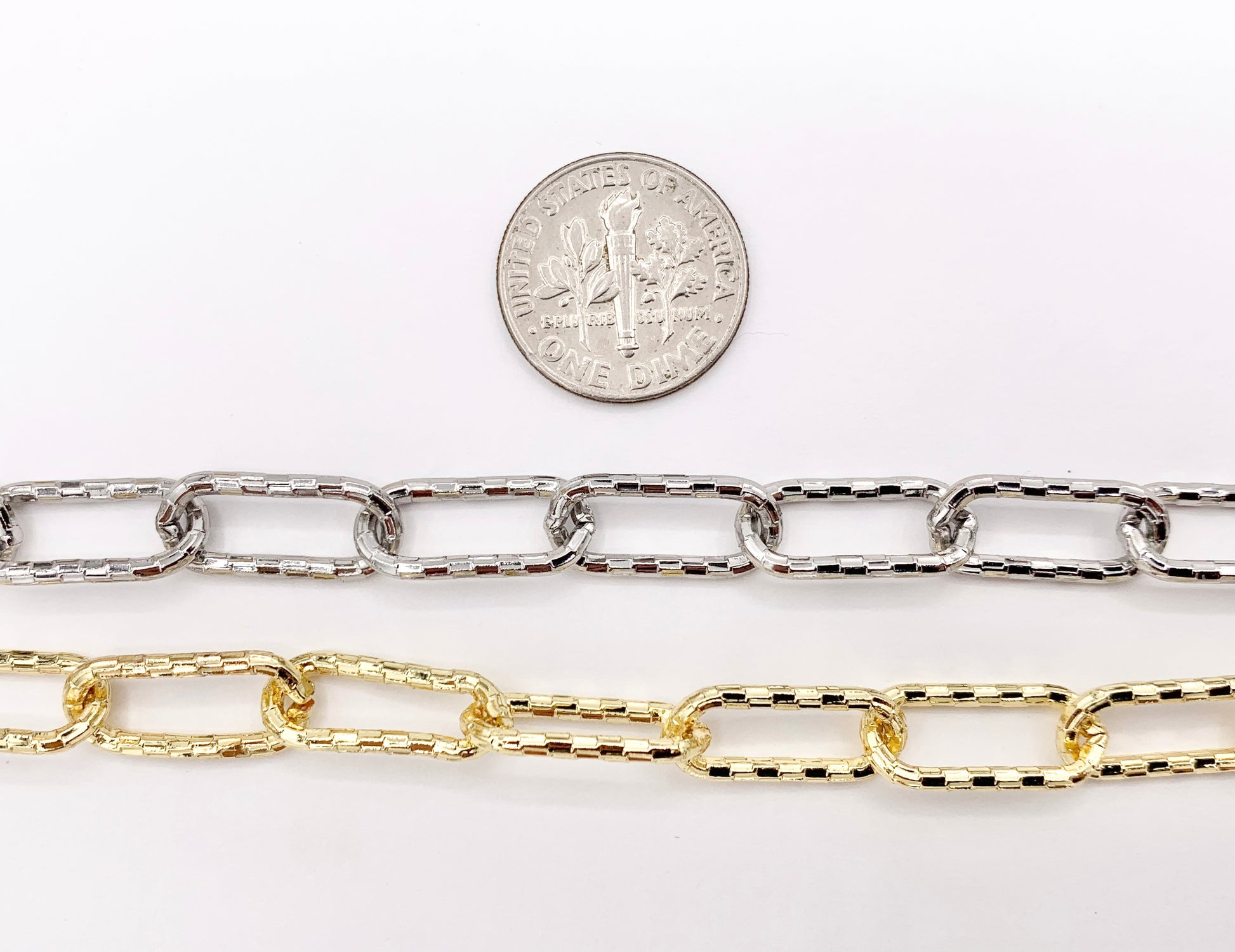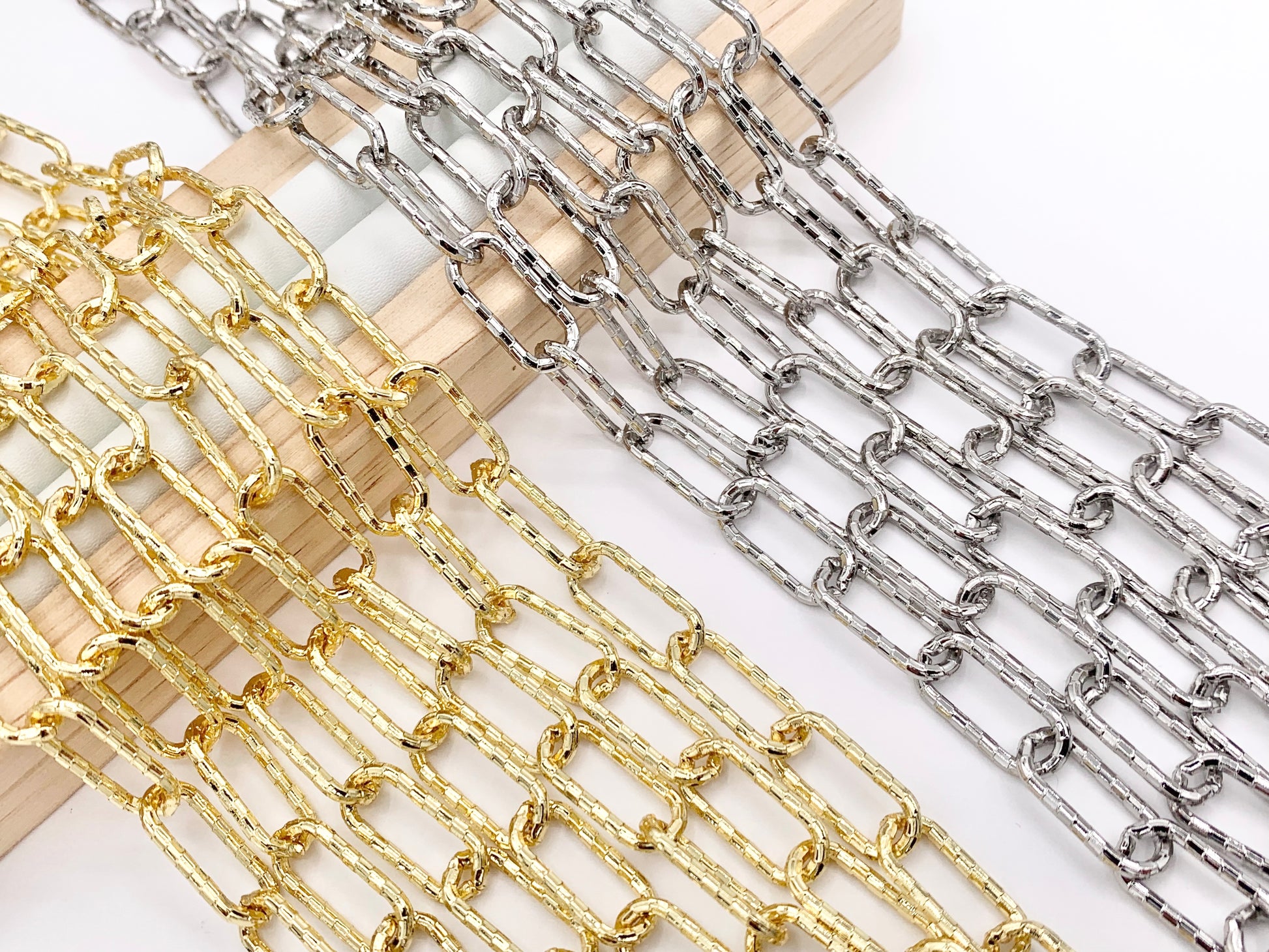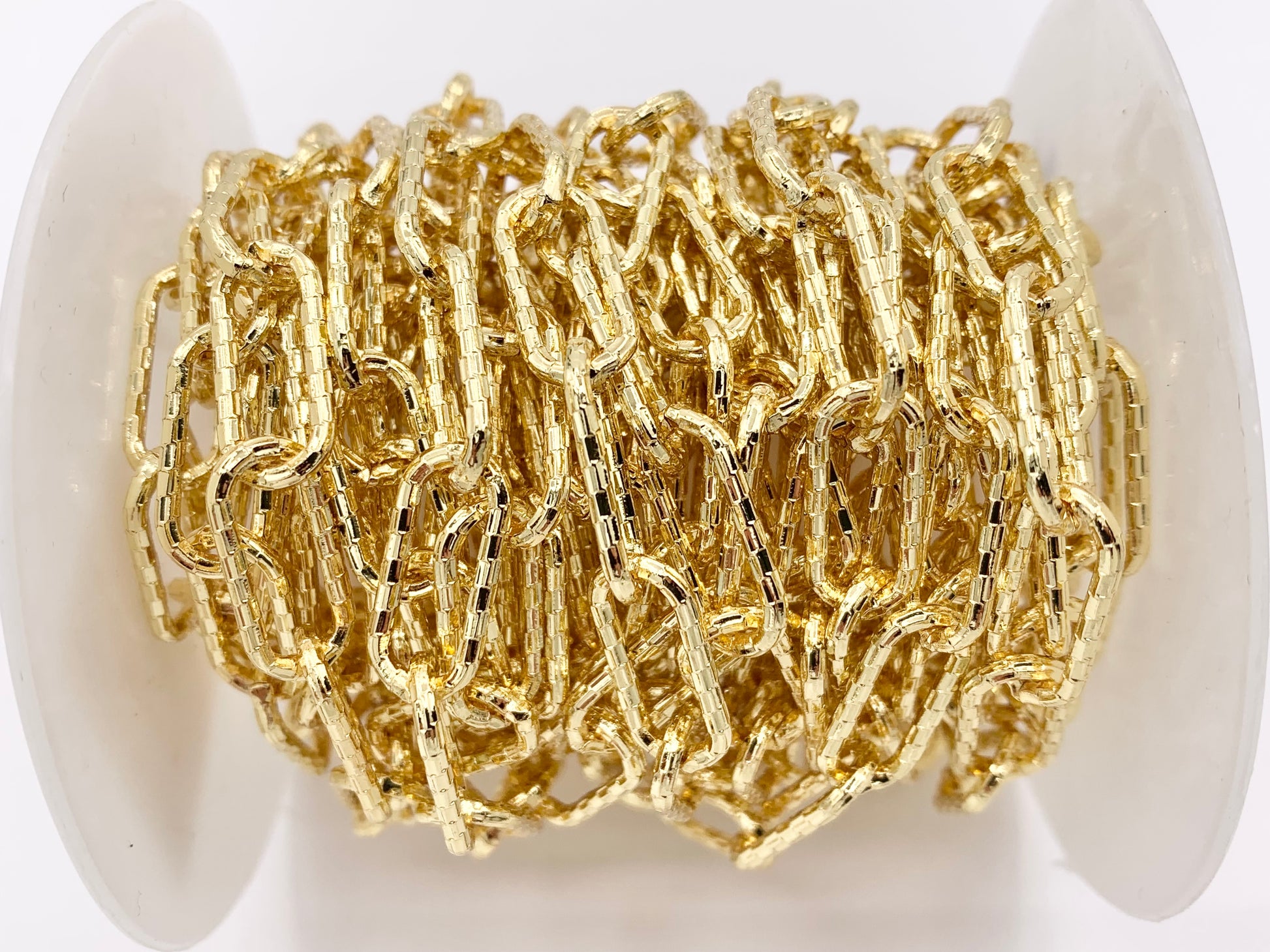Faceted Paperclip Link Chain in Real 18K Gold/Silver Plated Copper By The Spool For Jewelry Making