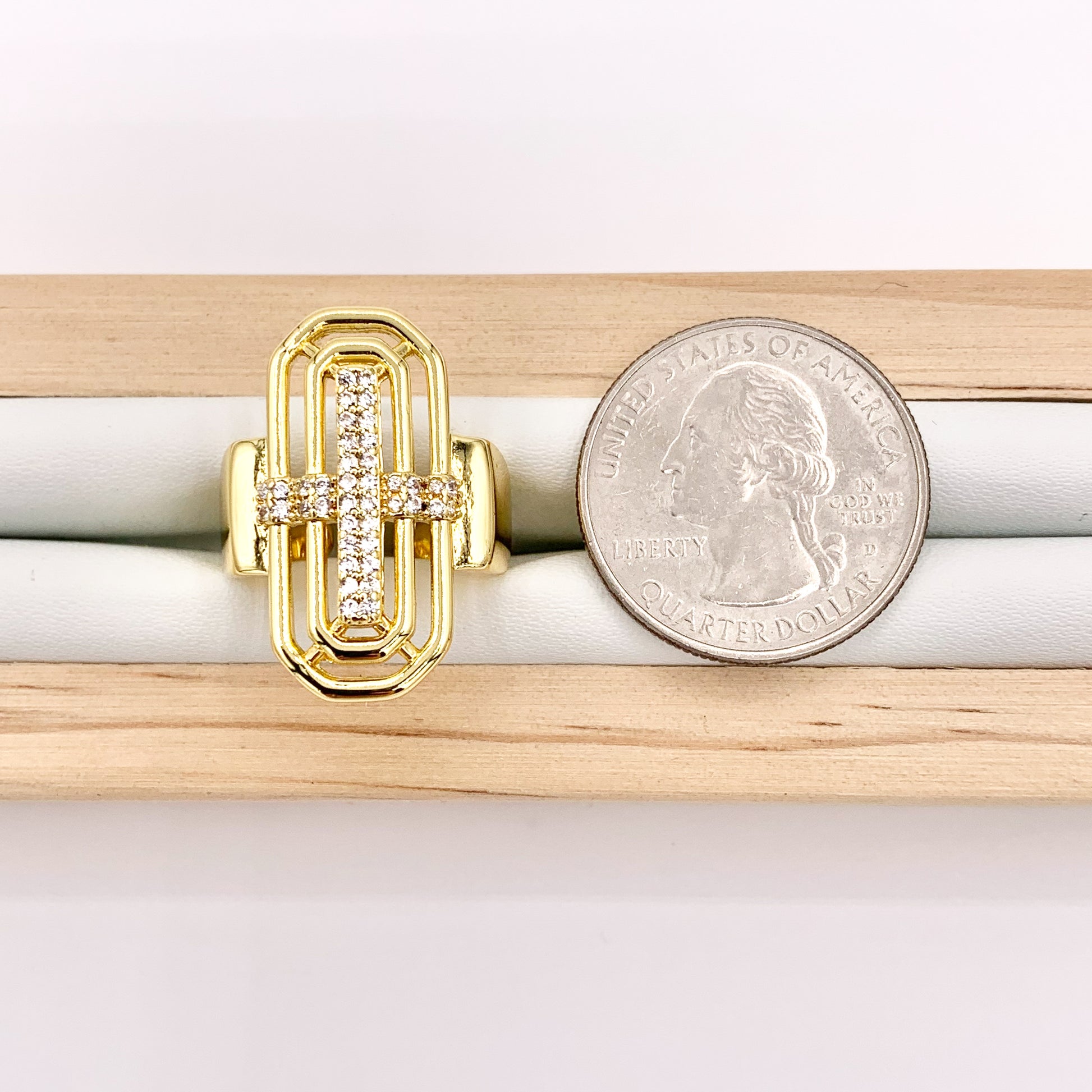 Faith Inspired Statement Cross Ring in CZ Pave Adjustable Rings in 18K Gold Plated Copper