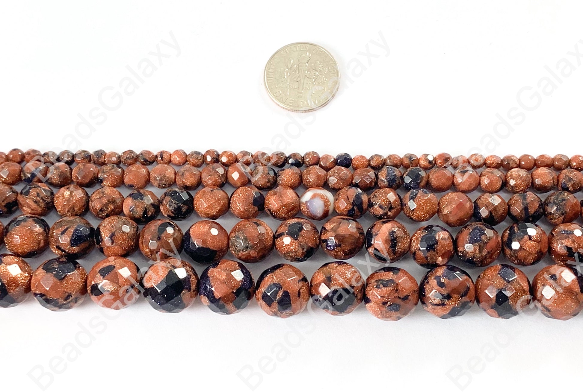 Cuentas redondas facetadas con brillo brillante, color azul dorado, marrón rojizo, alrededor de 15"