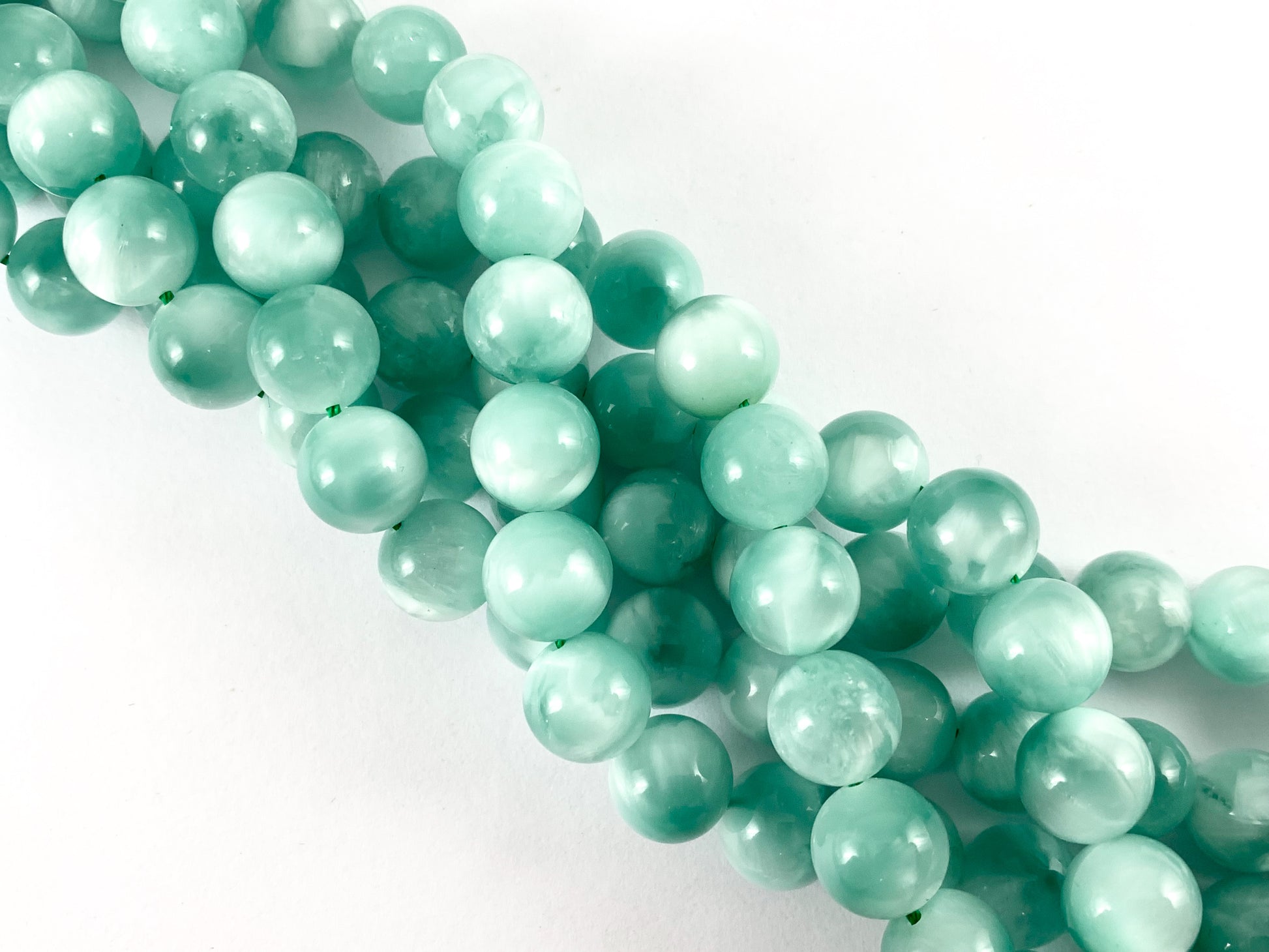 Grado AAA Angelita Verde / Piedra Lunar Verde / Angelita Verde Aqua Redondas Lisas Brillantes Cuentas de Piedras Preciosas Naturales 15"-16"