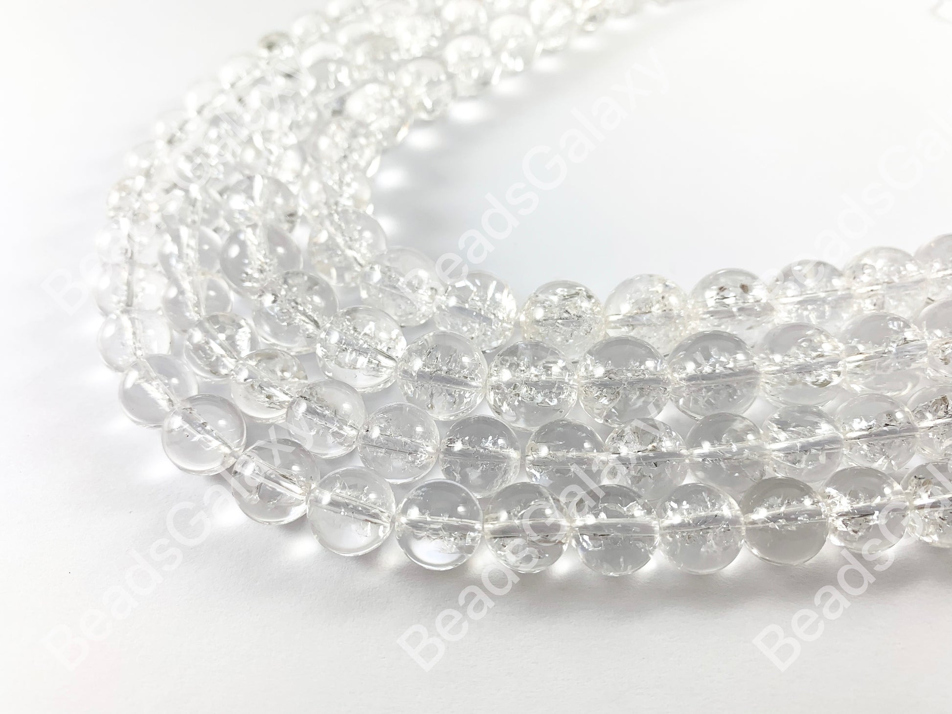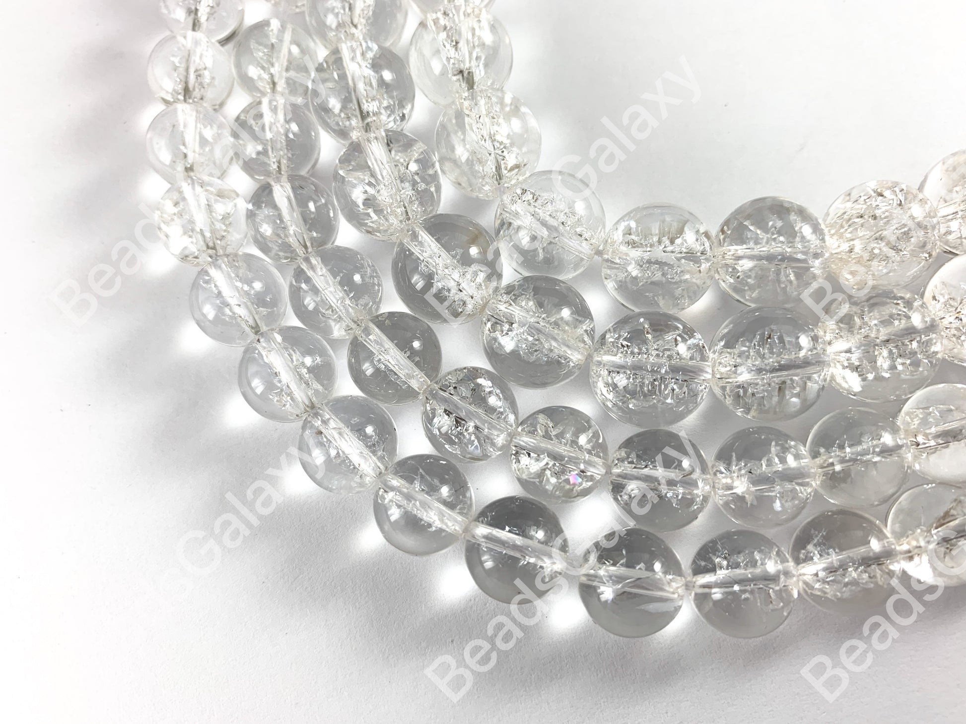 Grado AAA Natural Crackle Cuarzo Claro Alta Calidad Redondo Suave Brillante Abalorios Curación Piedra Preciosa Cristalina 10mm 12mm Alrededor de 15"