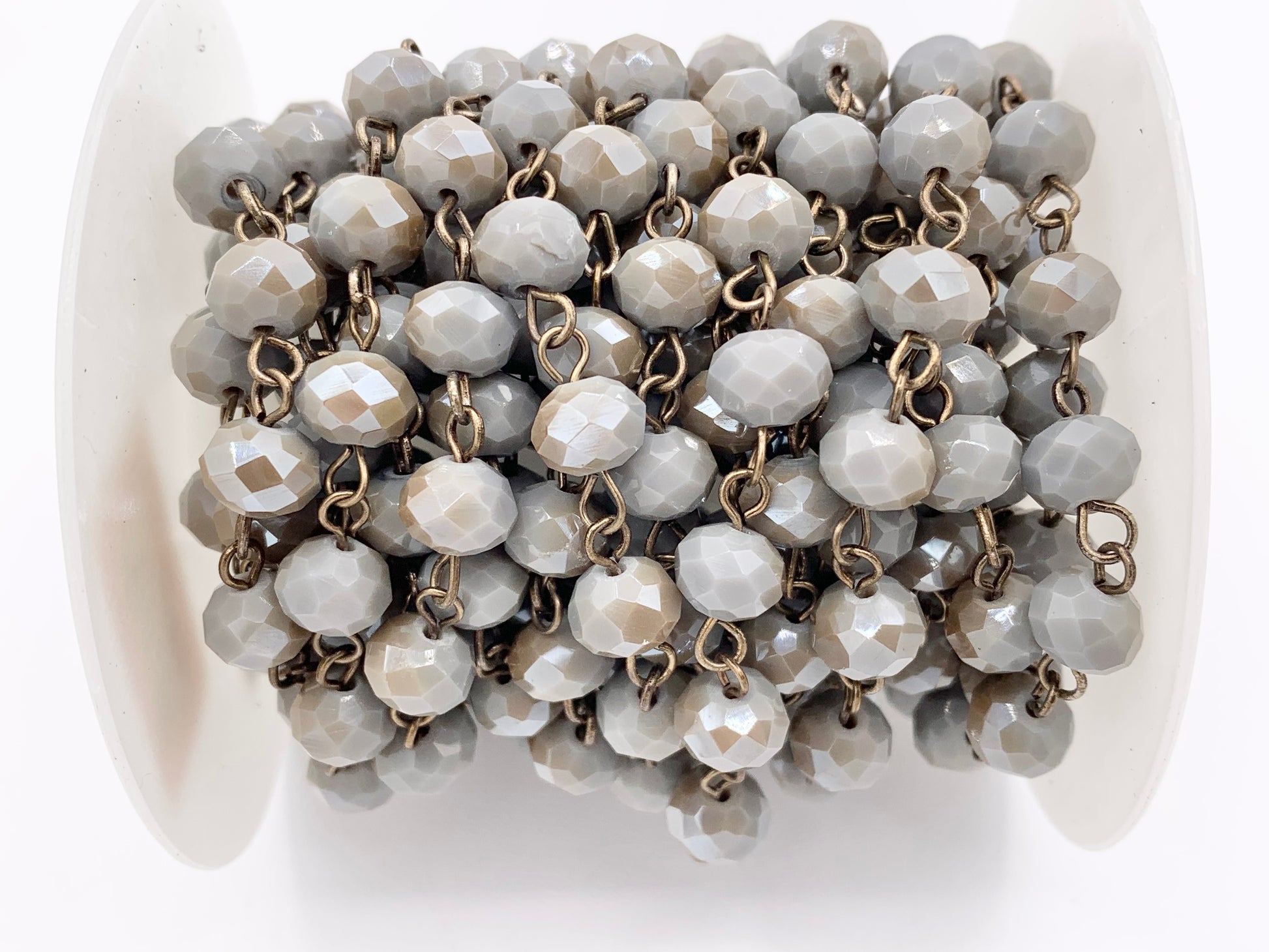 Gray Crystal Rondelle Faceted Rosary Beaded Chain With Brass Wire By Spool 6mm 8mm