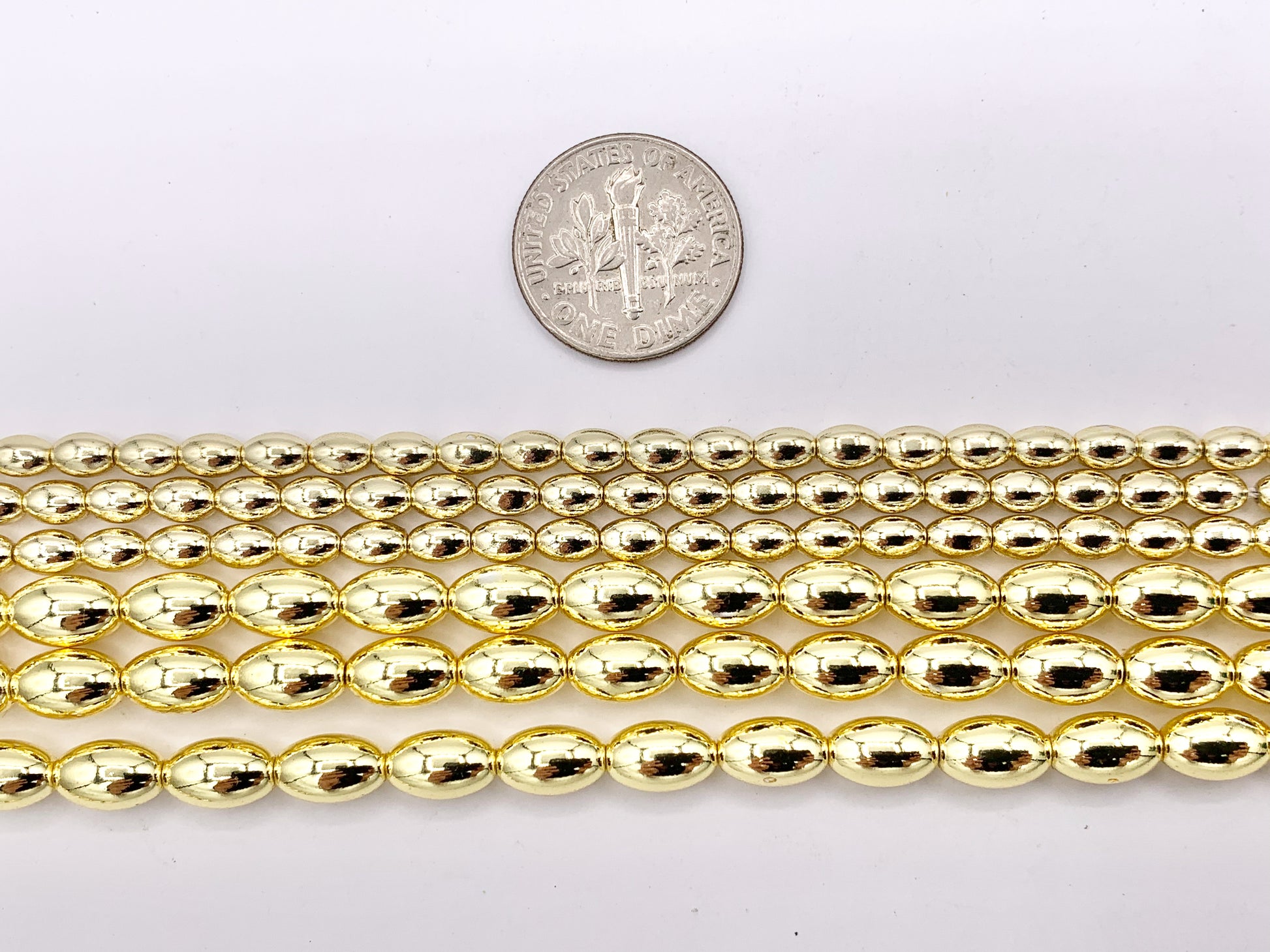 Hematite Puffy Rice Shape Shiny Beads | Real 18K Gold Plated Stone Beads 3mm 5mm Around 16"
