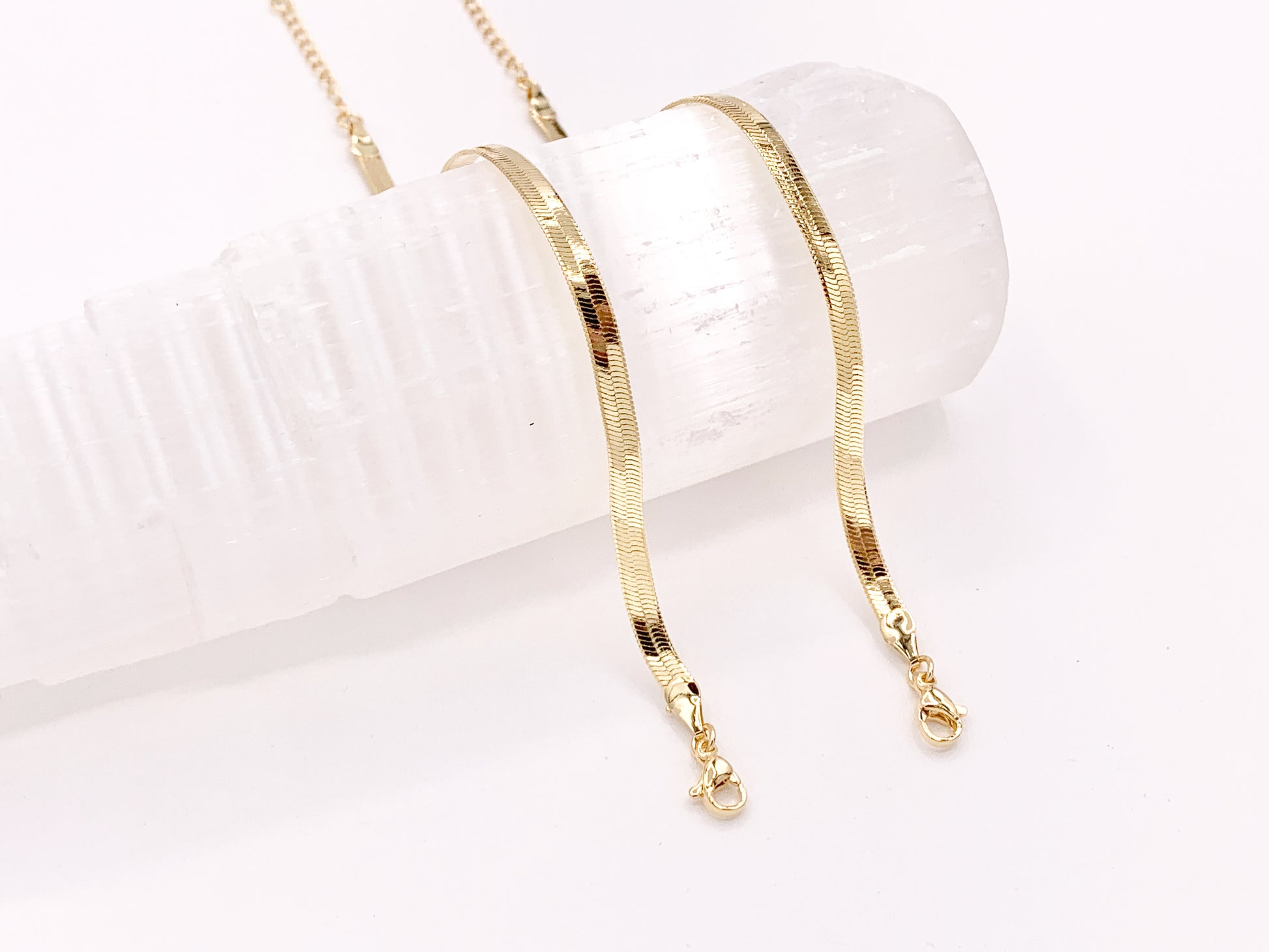 Pulseras de cadena de serpiente con corte plano en forma de espiga y extensión en cobre chapado en oro de 18 quilates