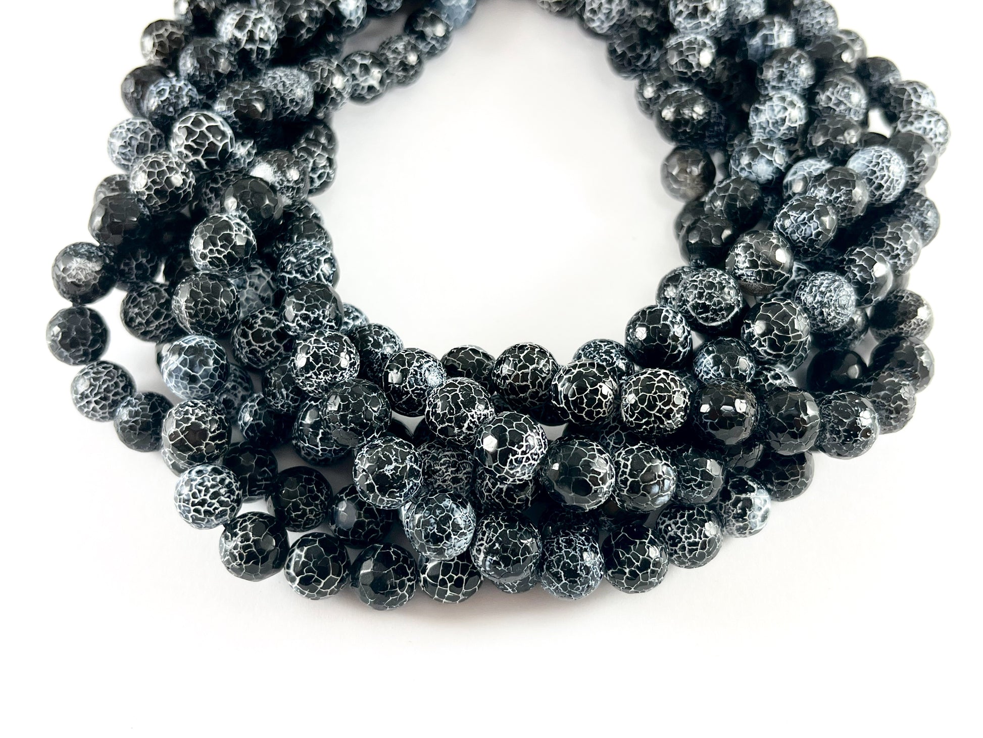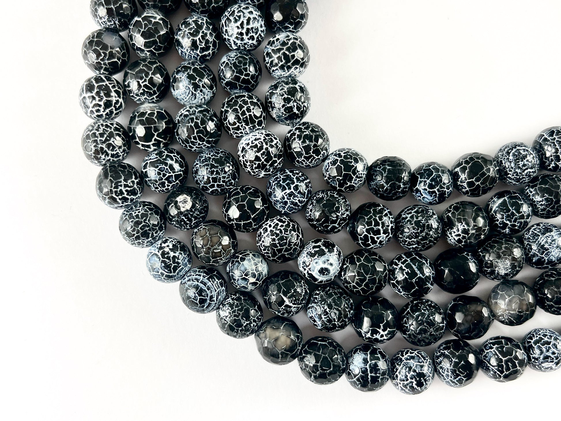 Ágata de fuego negra de alta calidad, tela de araña agrietada, ágata teñida, cuentas de piedra natural facetadas redondas, 6 mm, 8 mm, 10 mm, 12 mm, 13-14 mm, 15 mm, alrededor de 15"