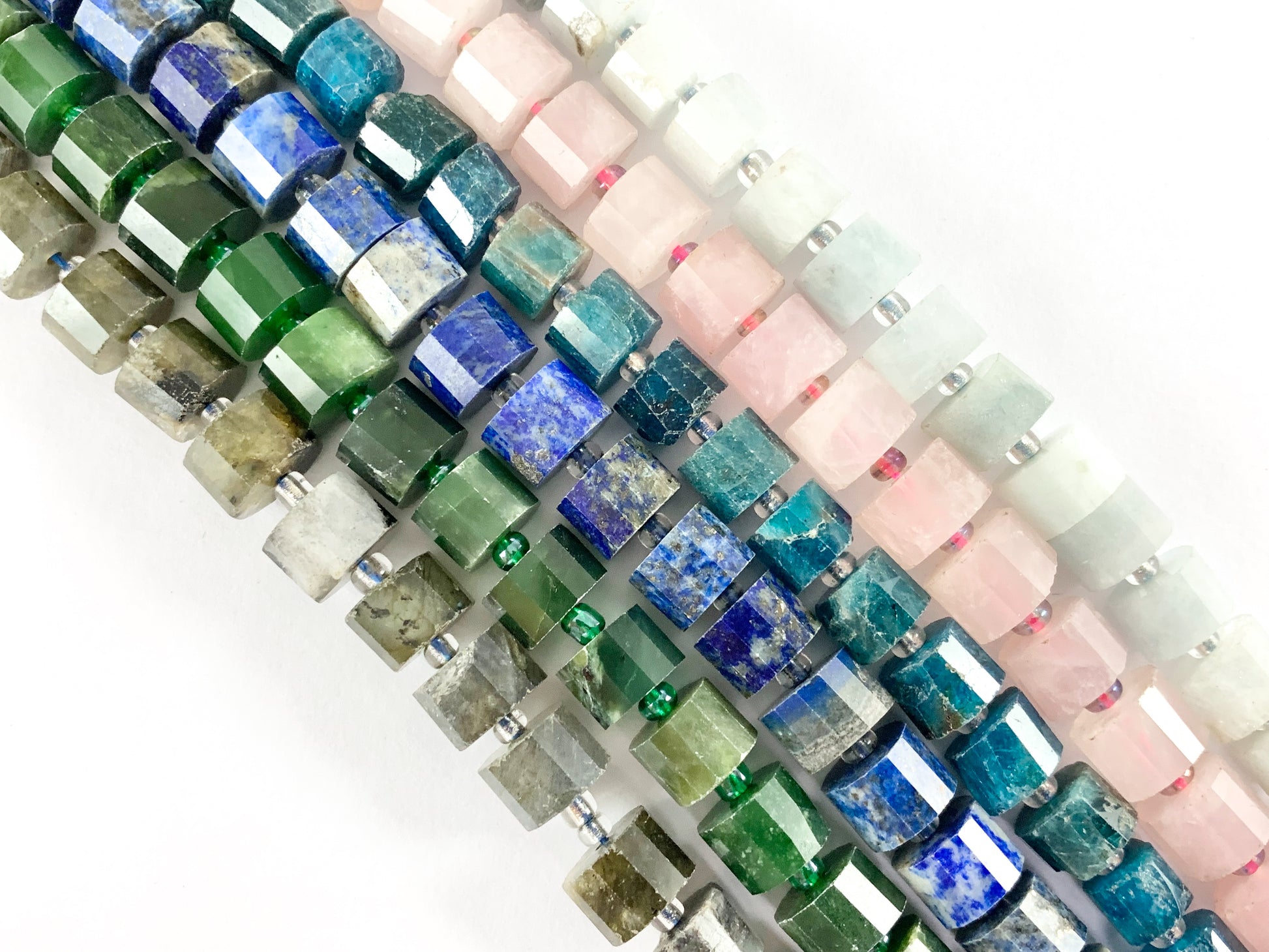 Cuentas de tubo de piedras naturales cortadas a mano de alta calidad aguamarina, cuarzo rosa, apatita, lapislázuli, jade canadiense, labradorita alrededor de 15"
