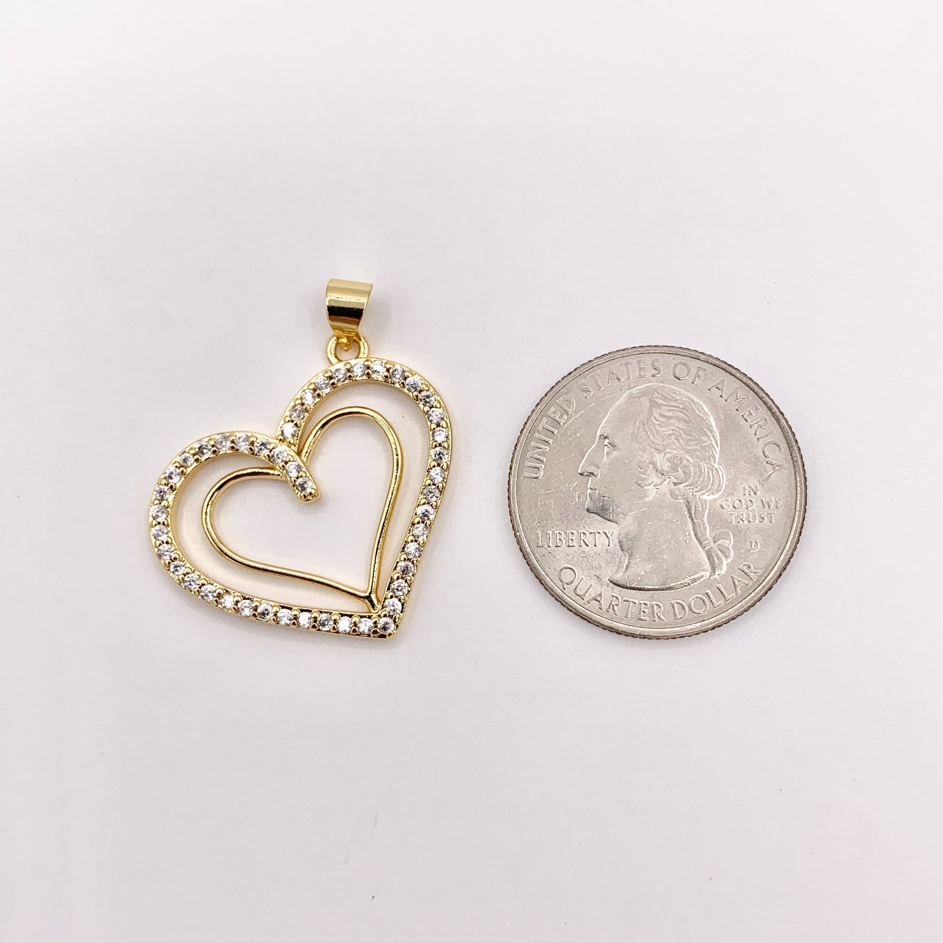 Heart Hollow Rhinestone Heart Charm Pendants in CZ Pave 18K Gold Plated Copper