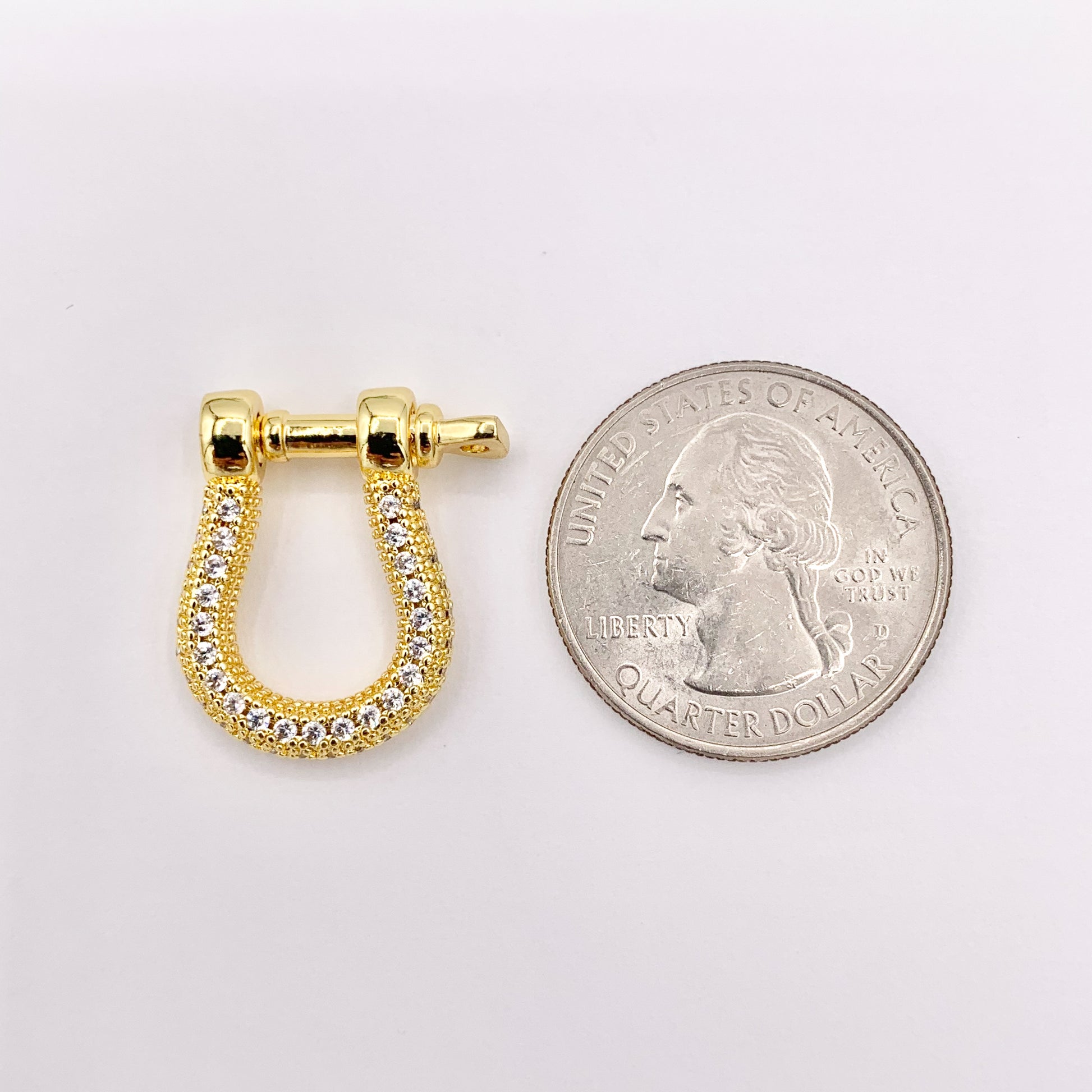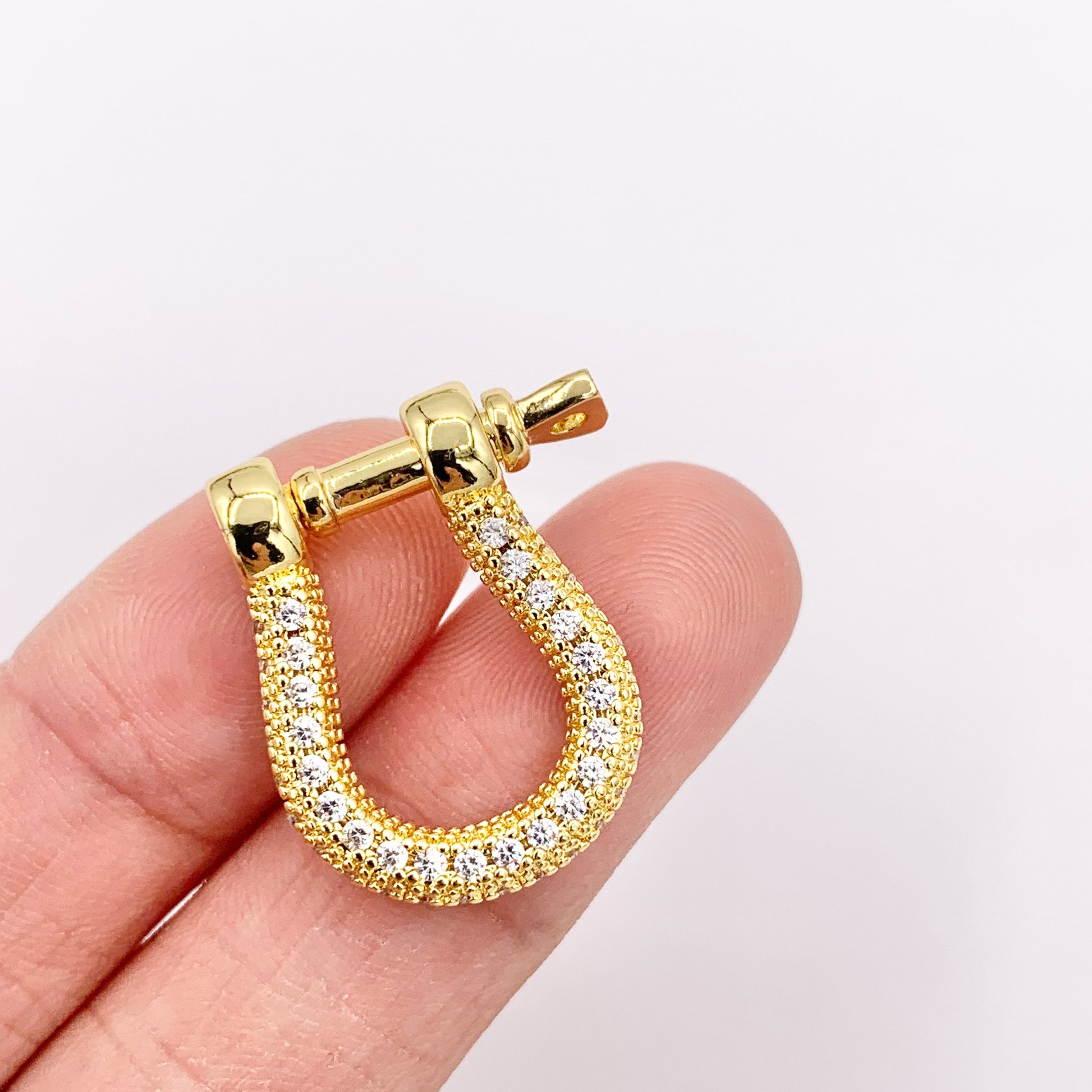 Horseshoe Carabiner Screw Clasps in 18K Gold Plated Copper With CZ Pave 5 PCS