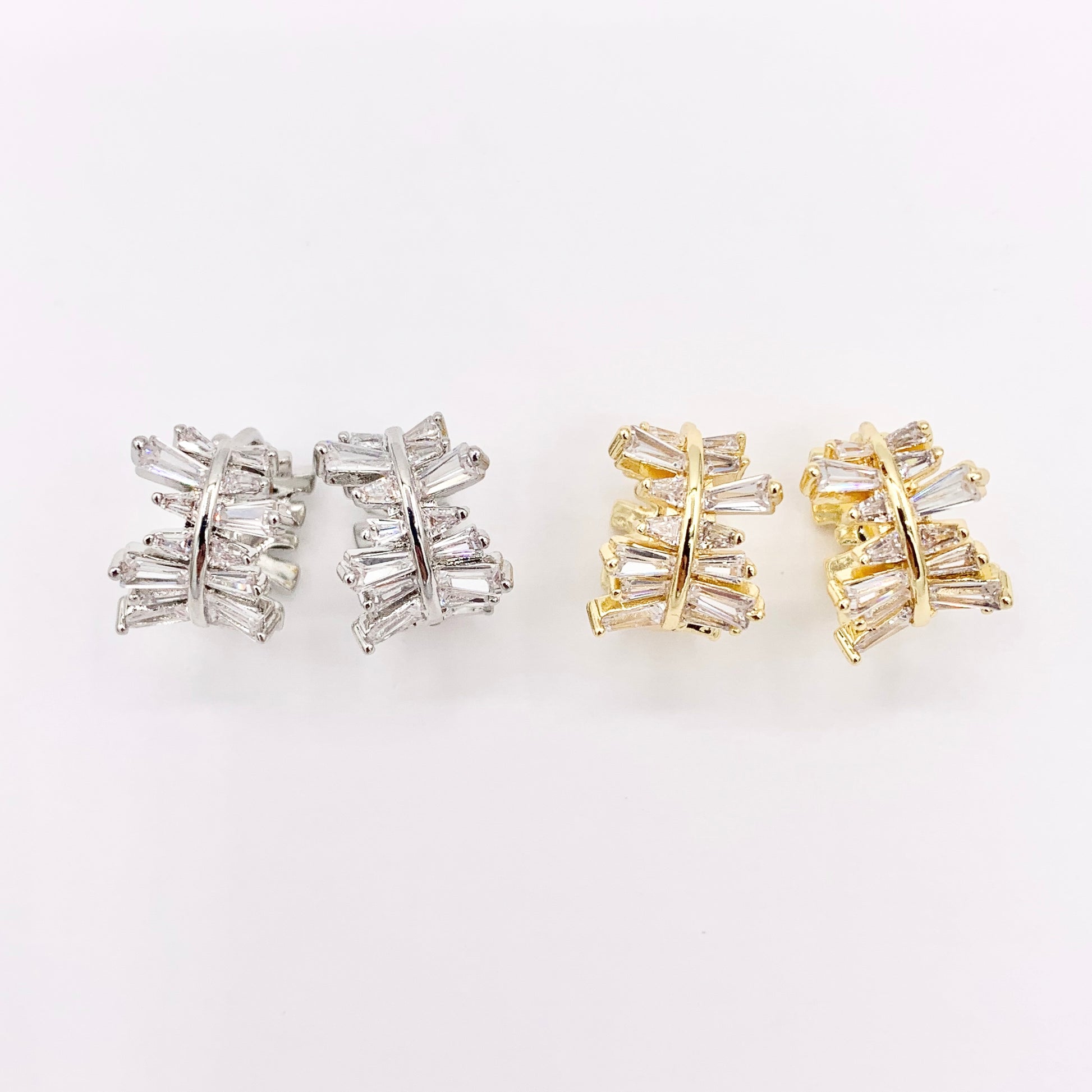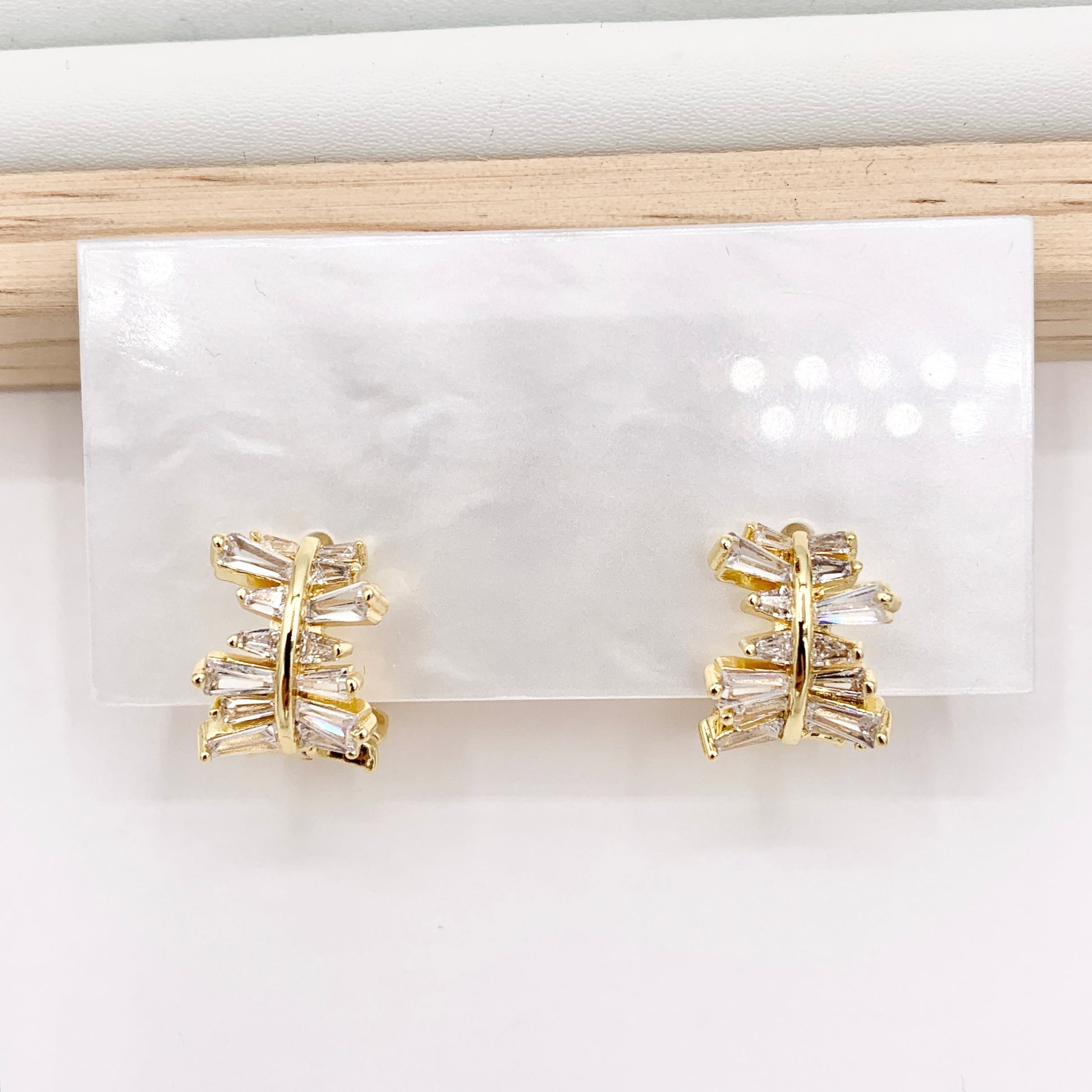 Irregular Horizontal Lined Micro Pave CZ Earring Huggies in Real 18K Gold/Silver Plated Copper 15mm 3 PAIRS