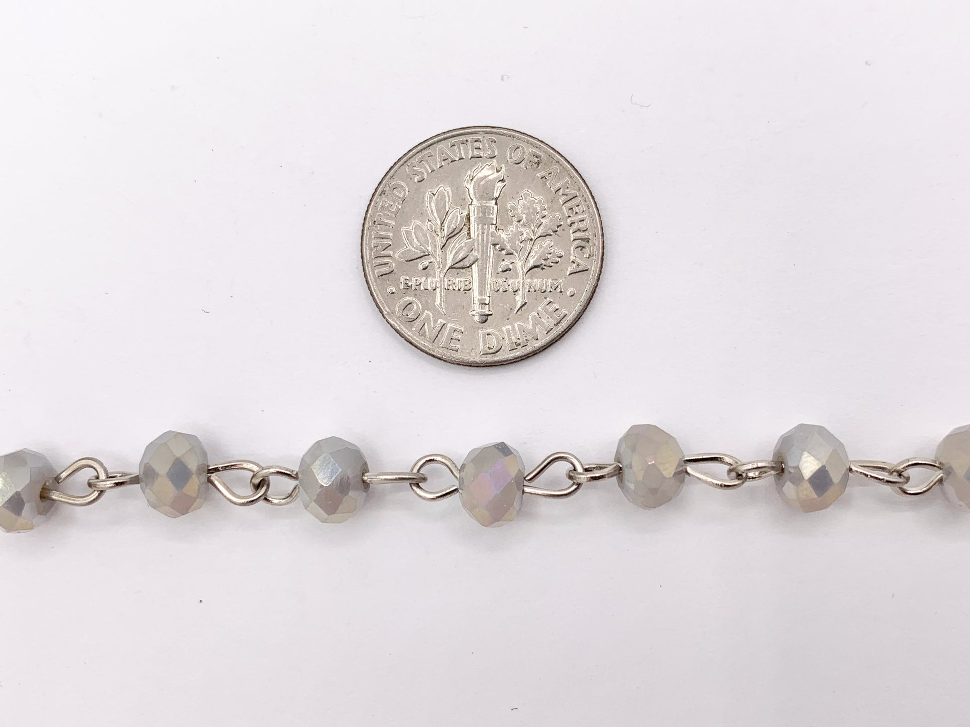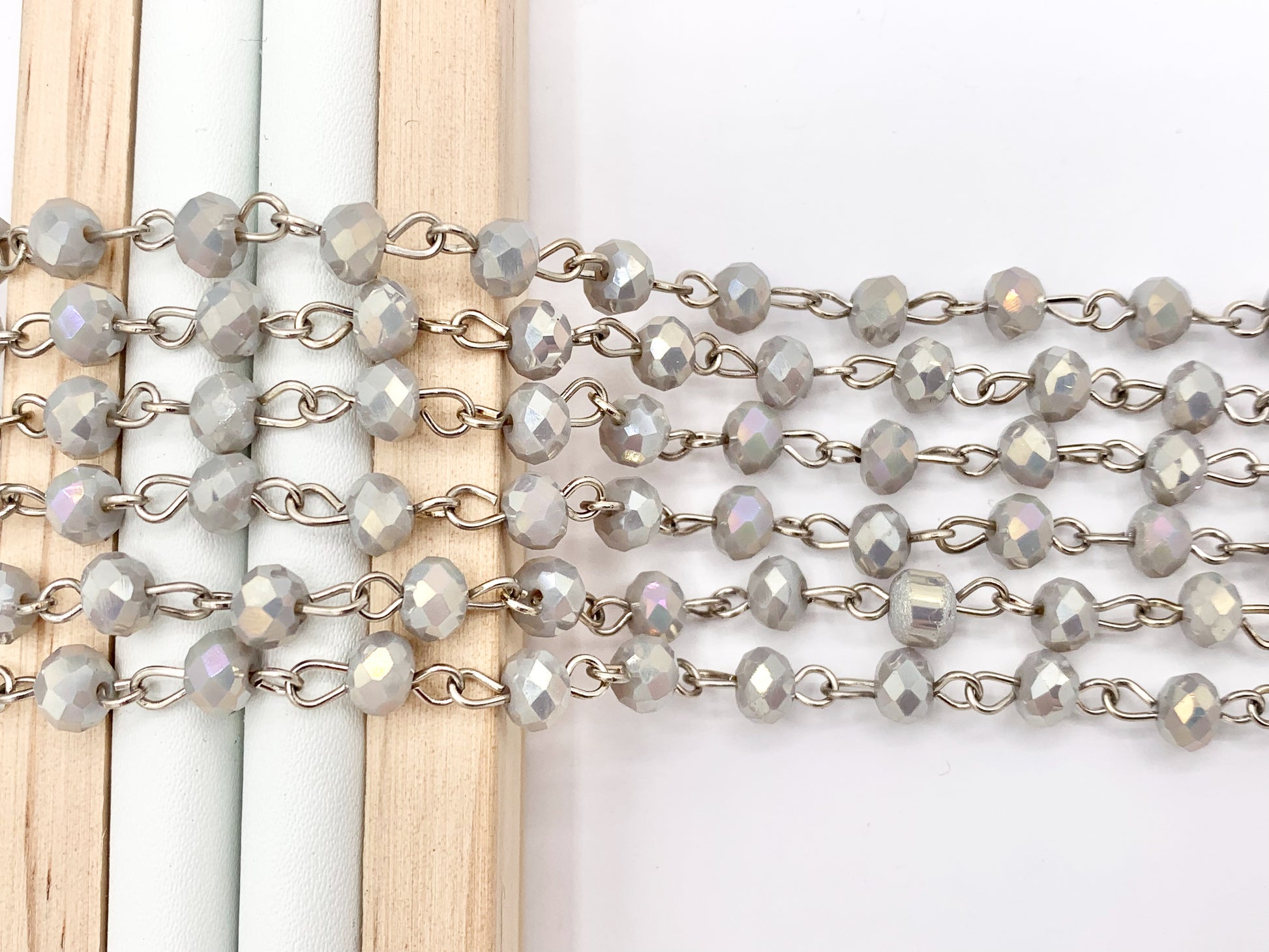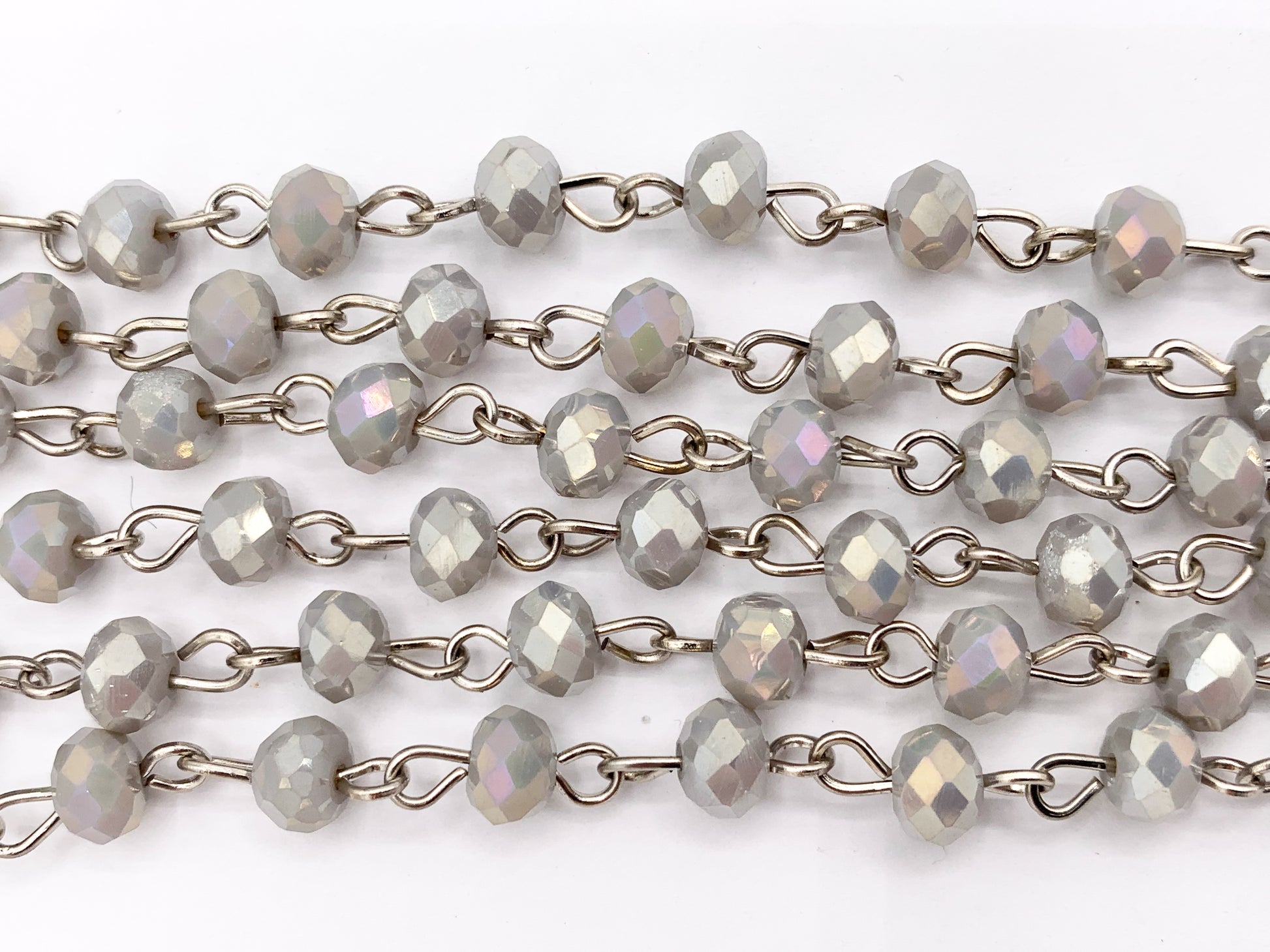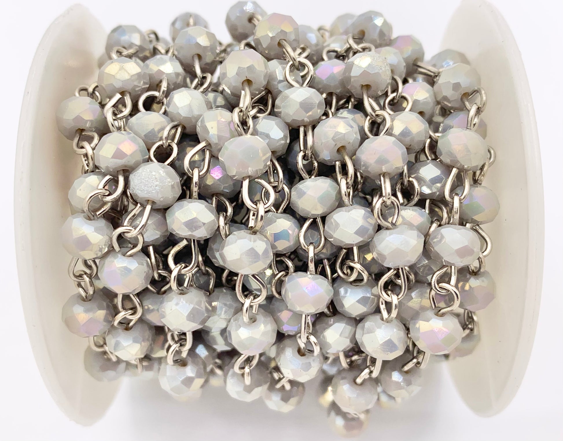 Light Gray AB Crystal Rondelle Faceted Rosary Beaded Chain With Silver Wire By Spool 6mm