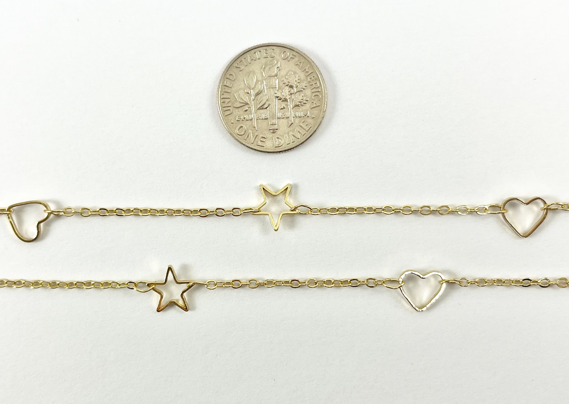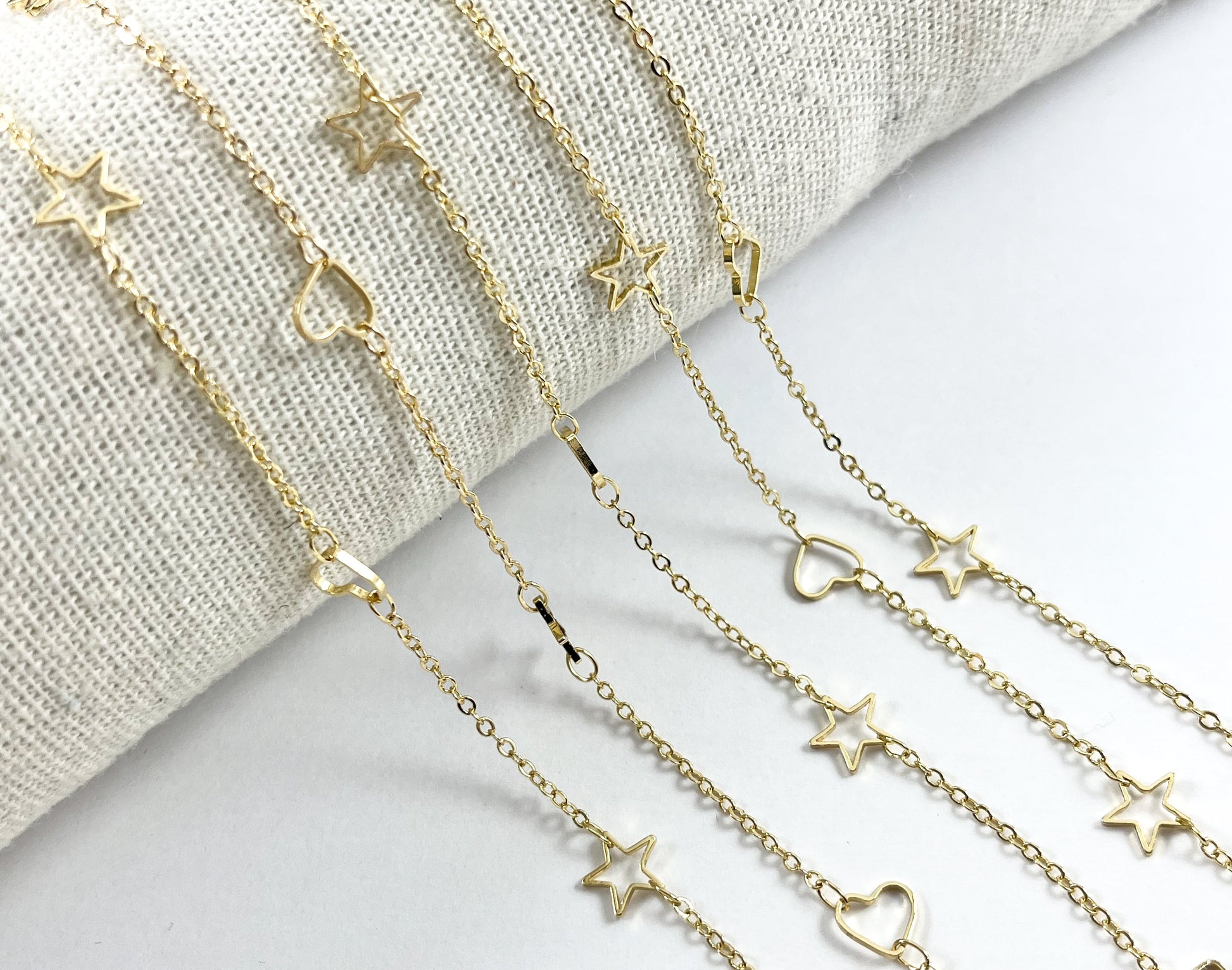 Estas hermosas cadenas de corazones y estrellas son adecuadas para pulseras, collares y cualquier diseño de joyería. ¡Puedes colocarle dijes o colgantes para darle una apariencia más exclusiva! ¡Consulta nuestra tienda para ver dijes e ideas de colgantes!