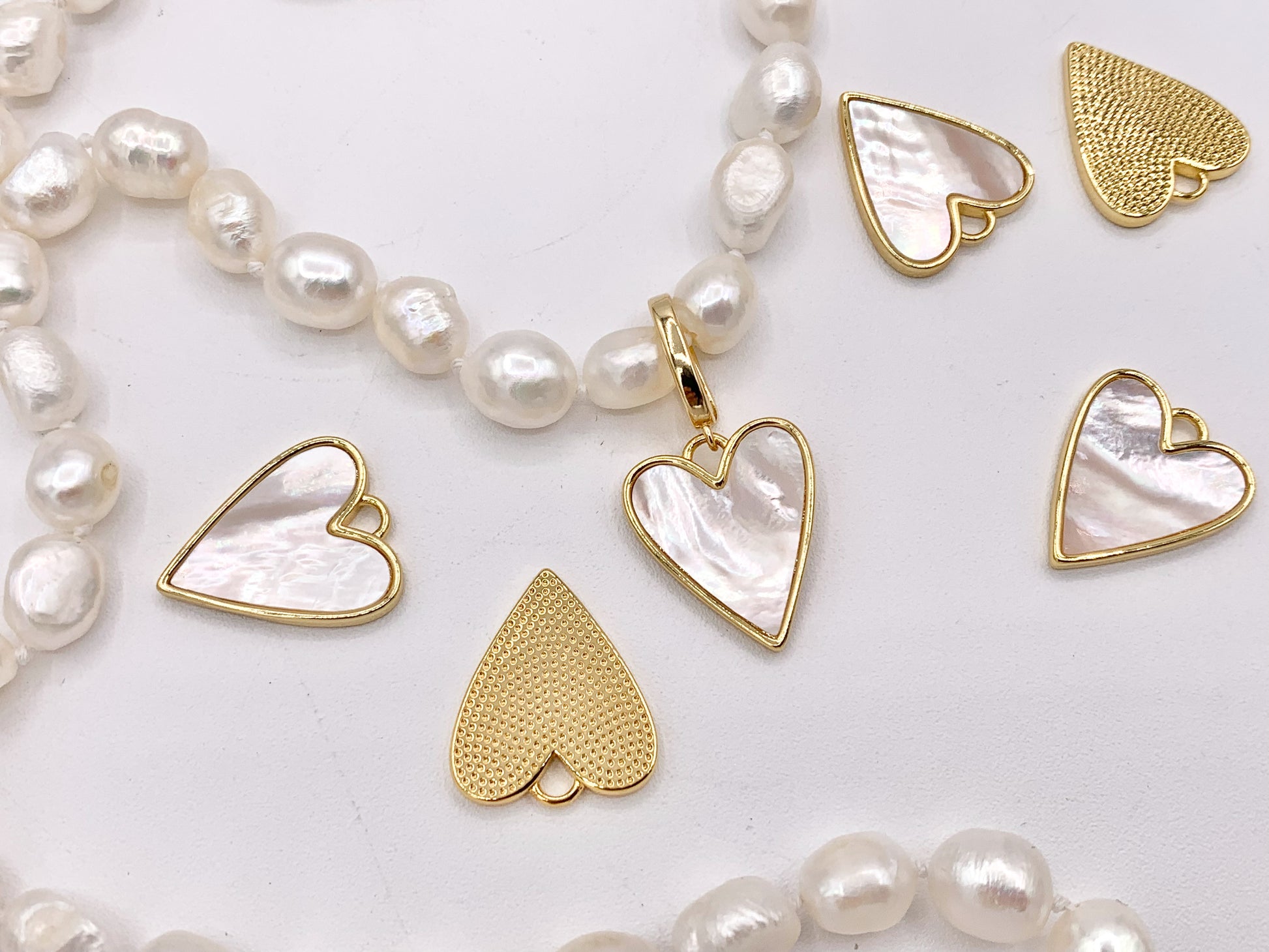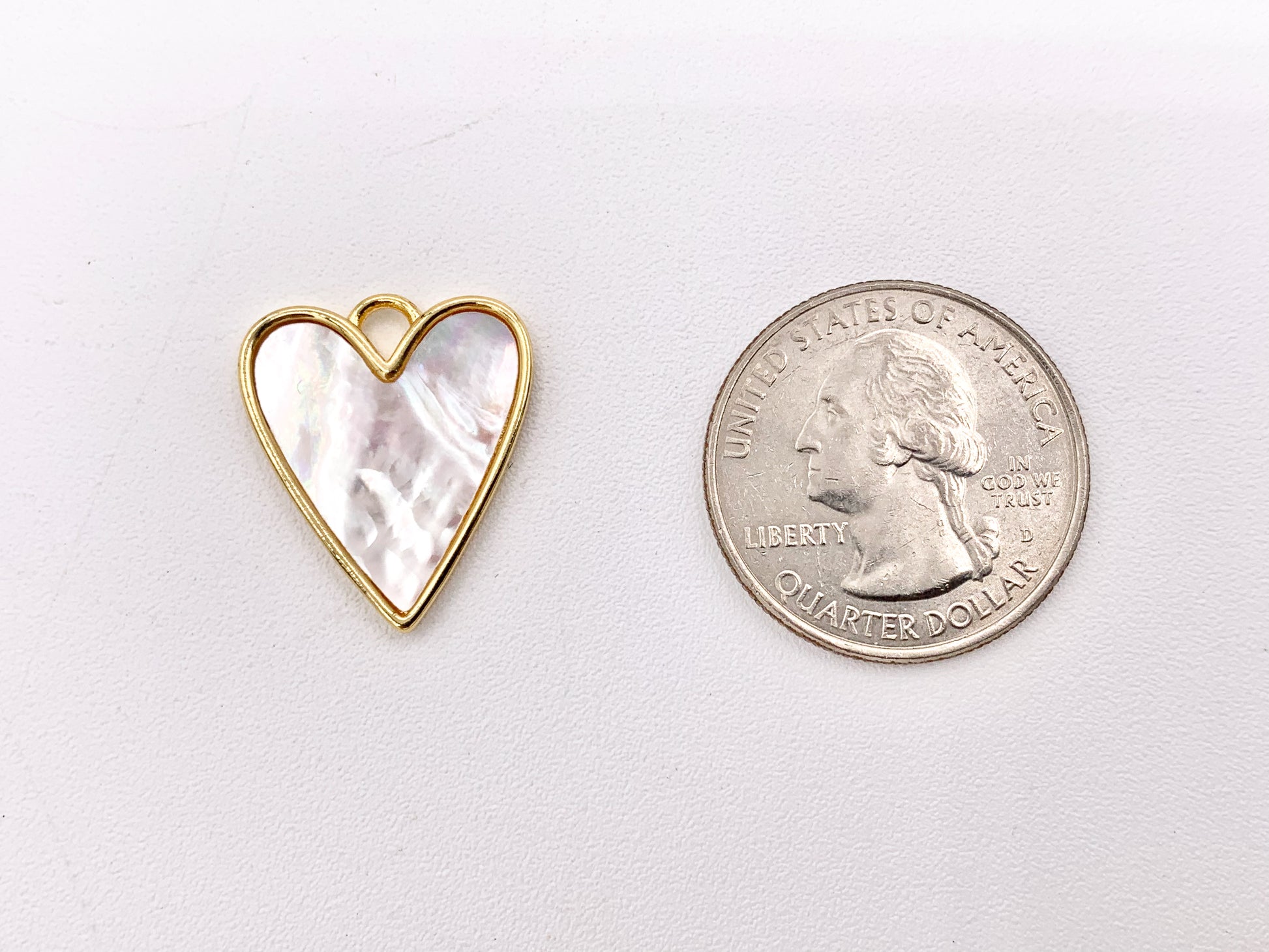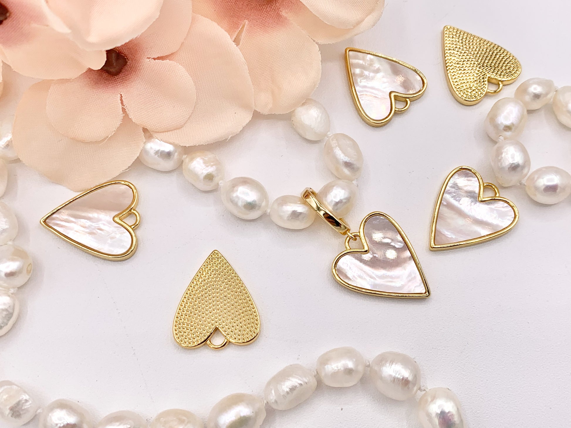 Mother of Pearl Heart Pendant Charm in Real Gold 18K Plated Over Brass 6PCS