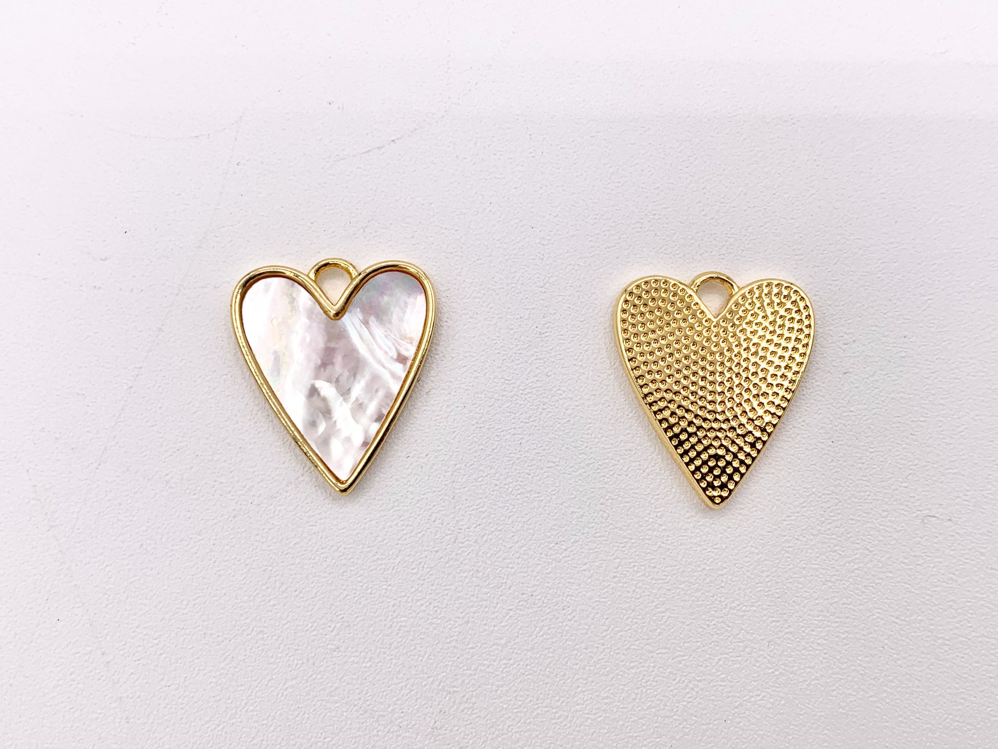 These heart charms are real gold 18K plated with a brass base. These charms can be wonderful made into bracelets, necklaces, earring drops and even used for crafts.