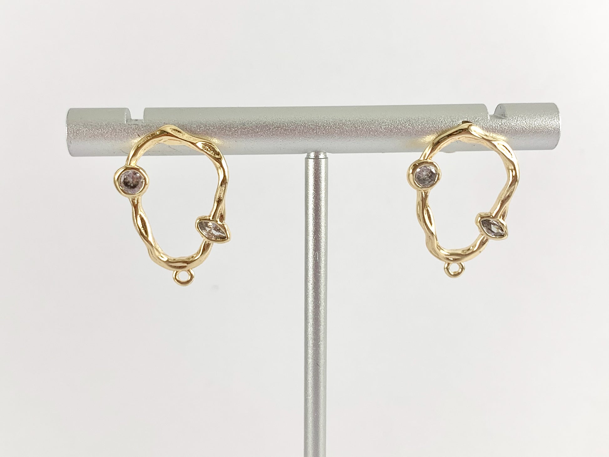 Componente de fornituras para pendientes de óvalos orgánicos con circonita cúbica geométrica y aro en cobre chapado en oro de 18 quilates. Coloque varios dijes en la parte inferior para una apariencia única. ¡Las posibilidades son infinitas!