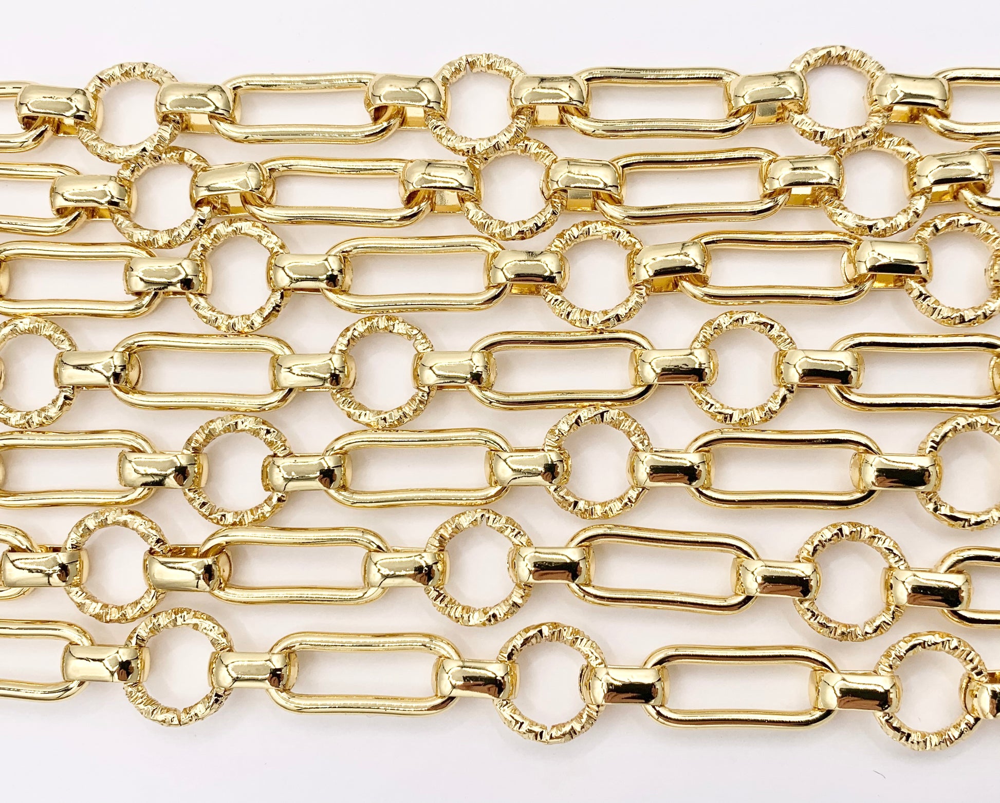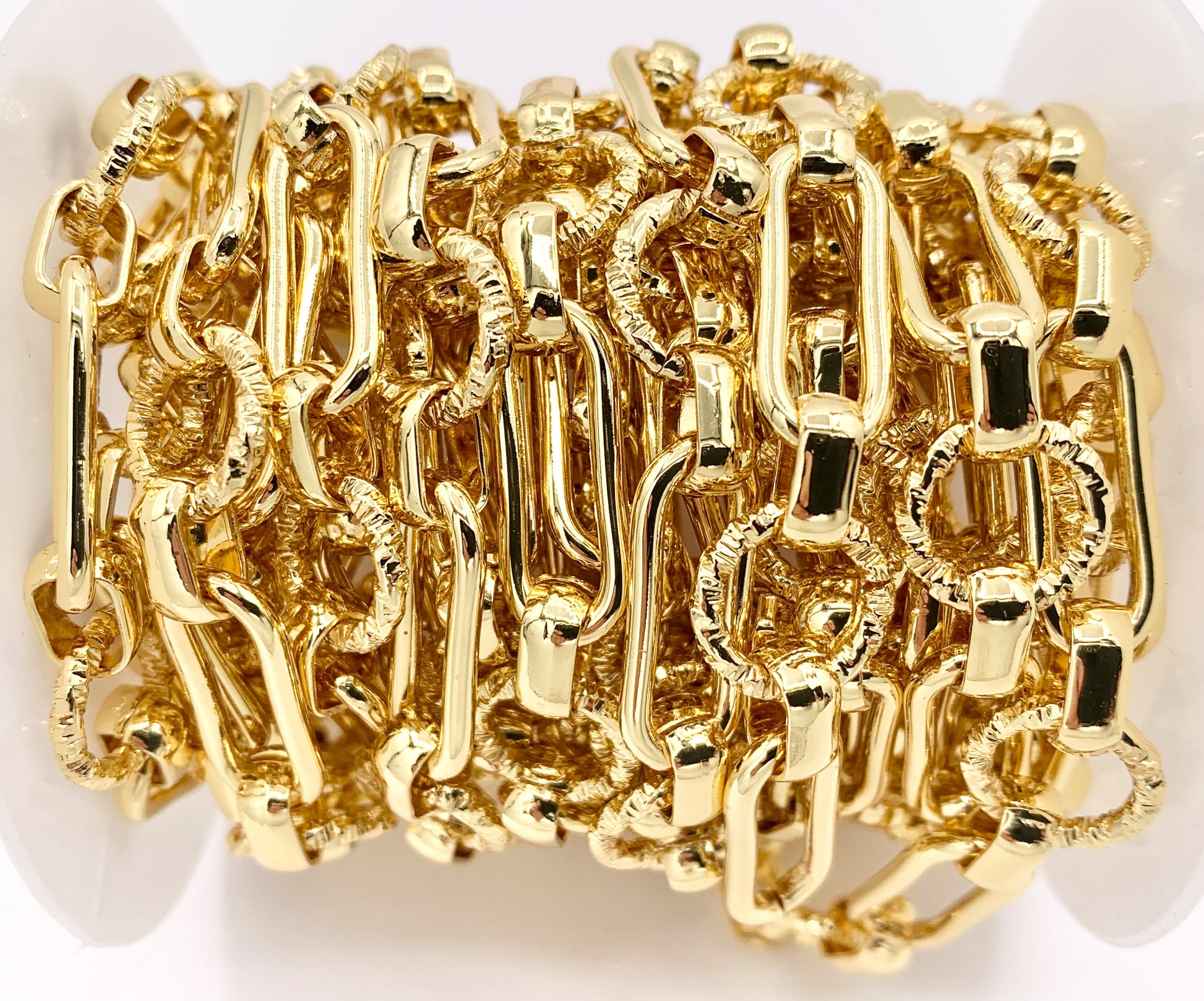Paperclip + Textured Circle Link Chain in Real 18K Gold Plated Copper By The Spool For Jewelry Making