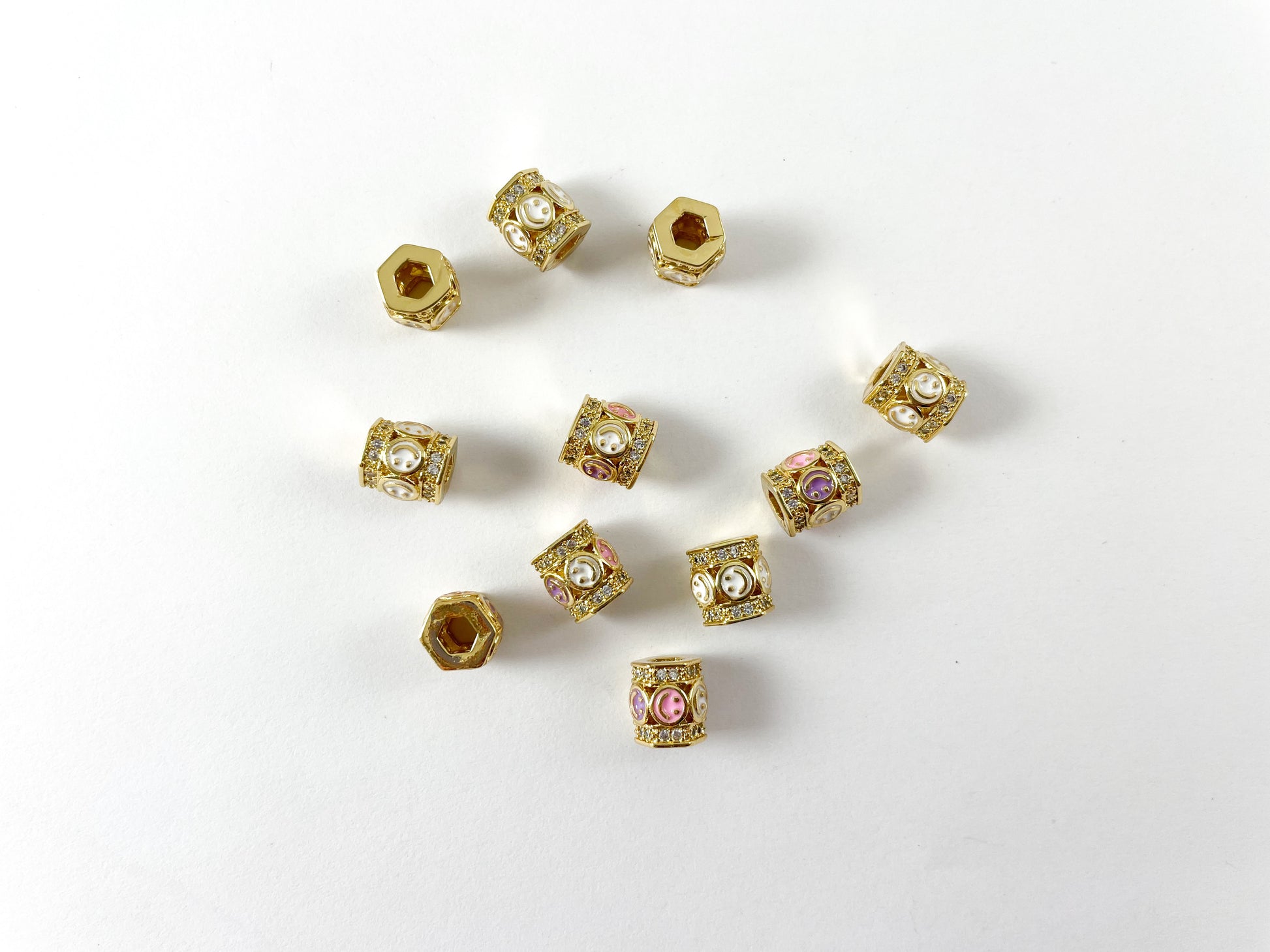 Cuentas sonrientes en colores pastel - Esmalte CZ Pave Cuentas de componentes espaciadores hexagonales sobre cobre 6 piezas