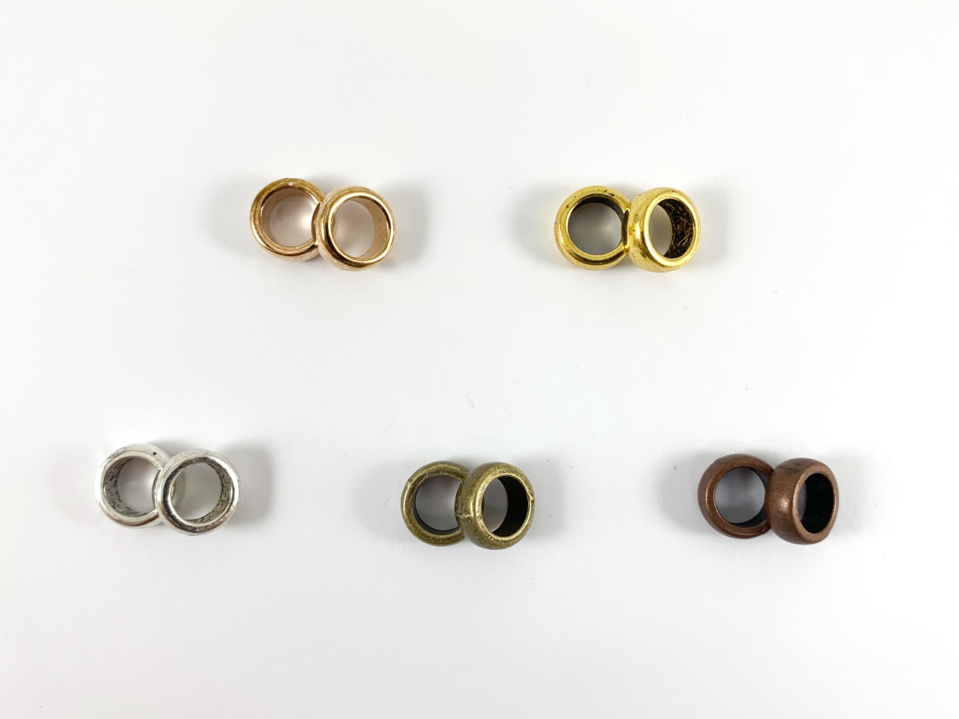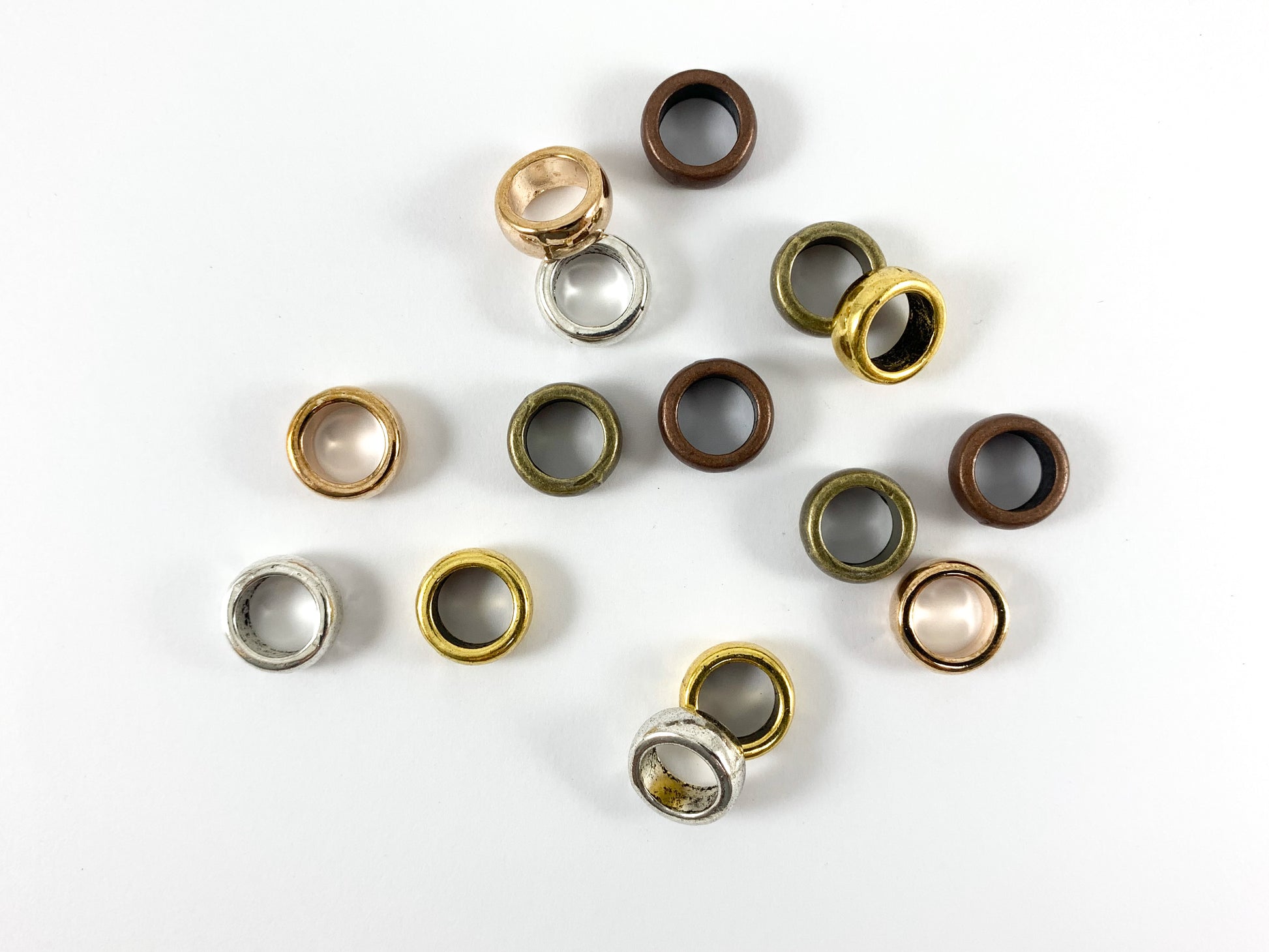 Base de peltre Metal brillante Rondelle liso Cuentas espaciadoras con orificio grande Oro rosado, oro, plata, bronce, cobre Bolsa de 125 gramos