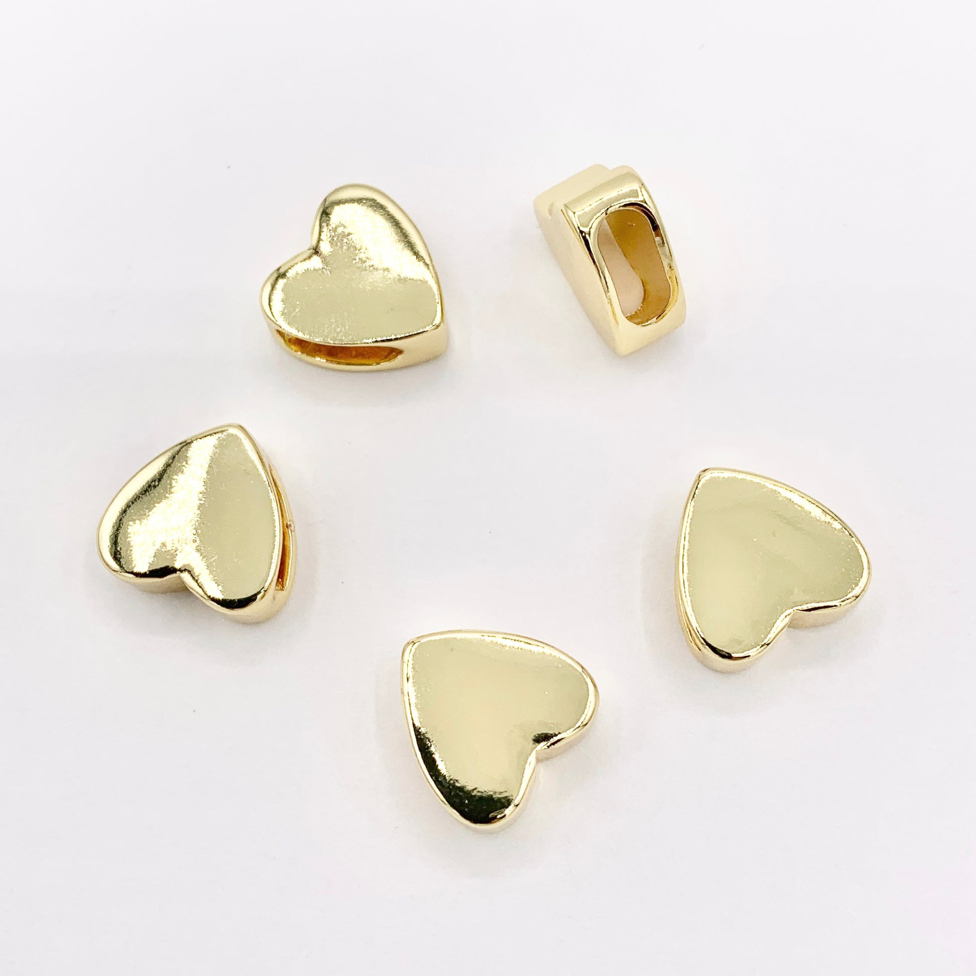 Plain Heart/Star Slider Charms in 18K Gold plated Copper 10 PCS
