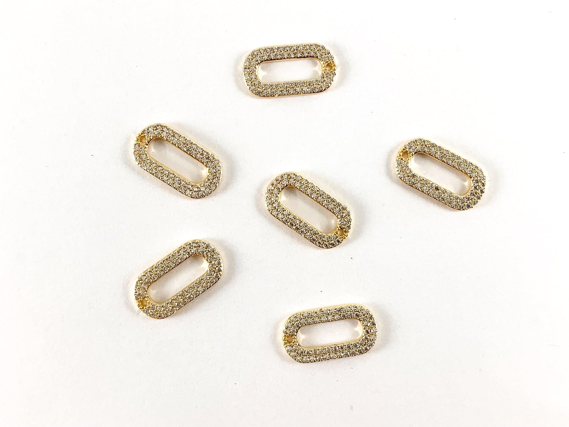 Real 18K chapado en oro/platino CZ pavé encanto de enlace ovalado sobre cobre 6 piezas