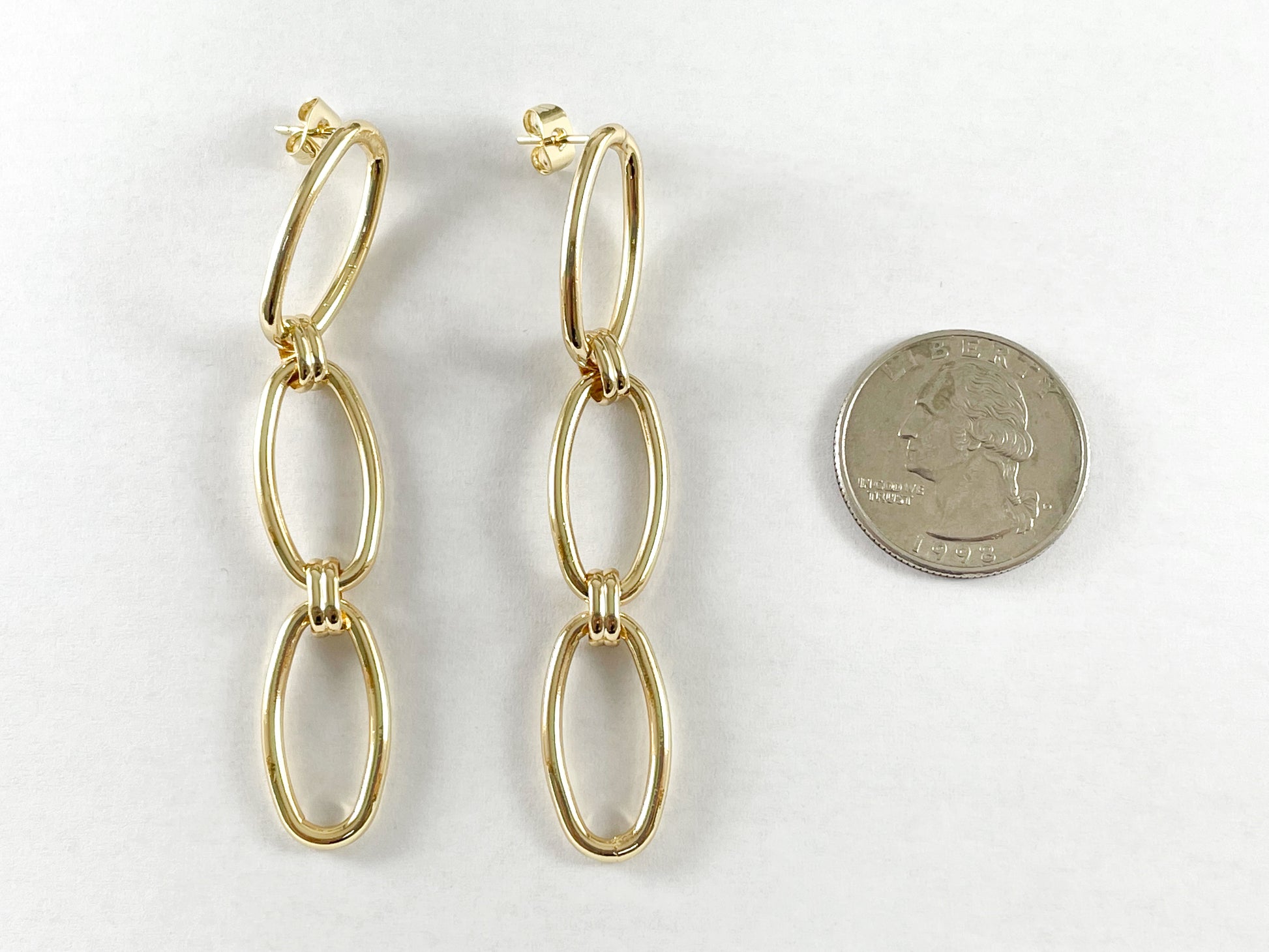 Pendientes colgantes con eslabones ovalados chapados en oro real de 18 quilates sobre cobre, 4 pares