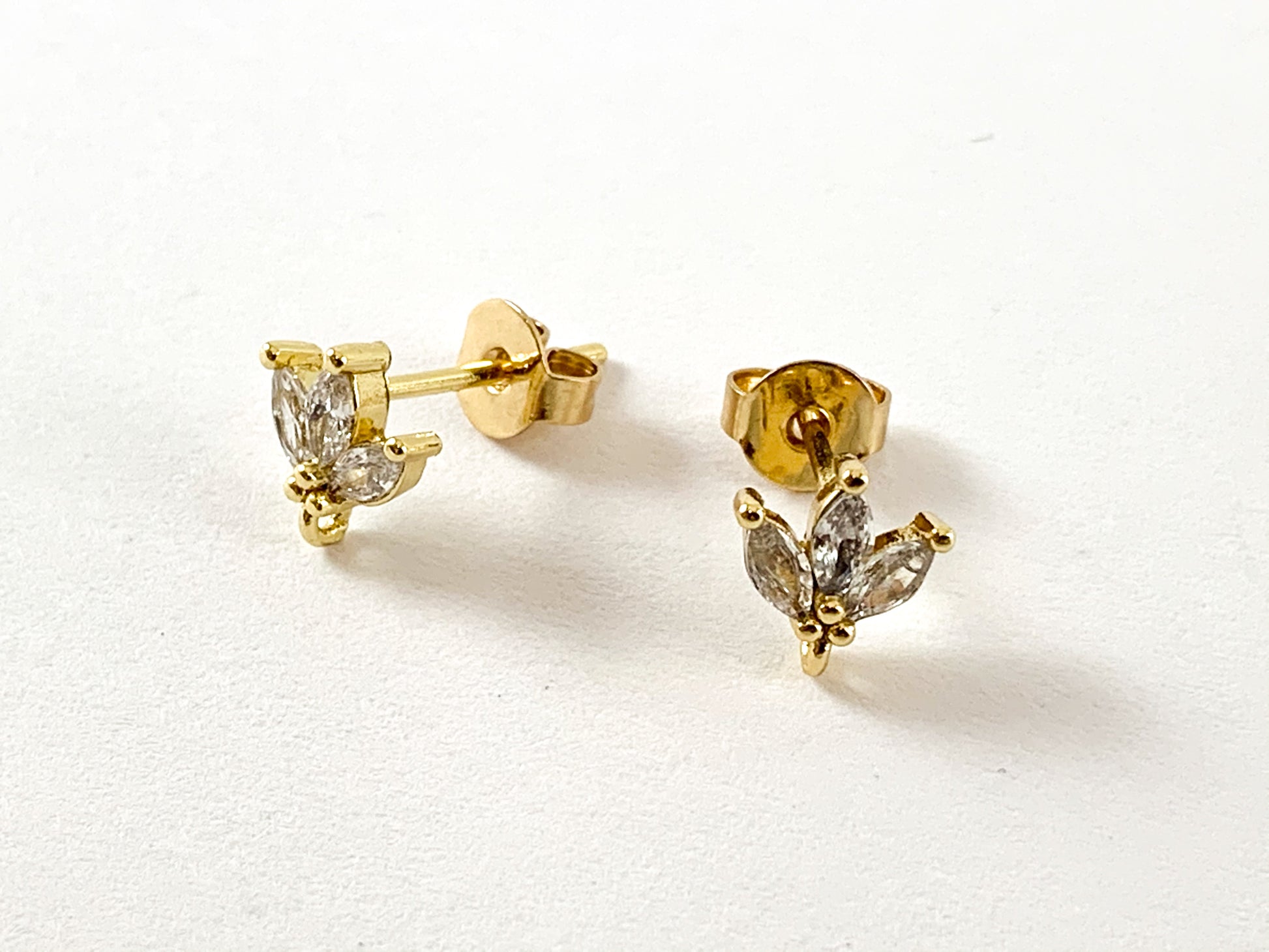 Real 18K Gold Plated Pave 3 leaf Earring Stud Component Over Copper 5pairs