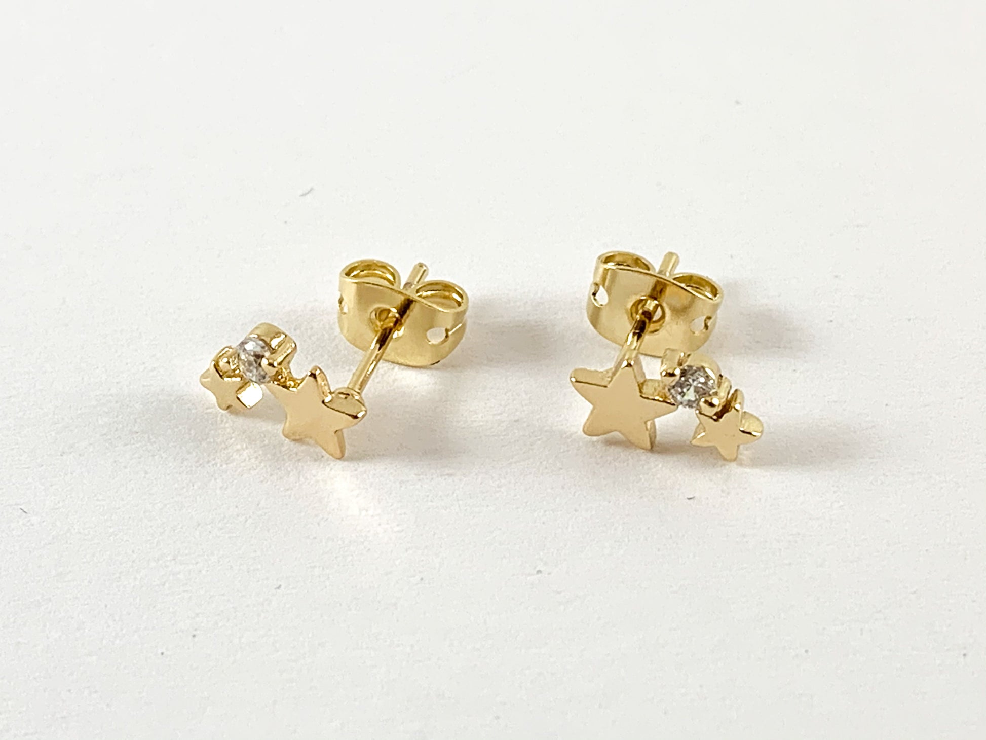These earring studs are real gold 18K plated with a copper base. Dainty and very minimalistic.