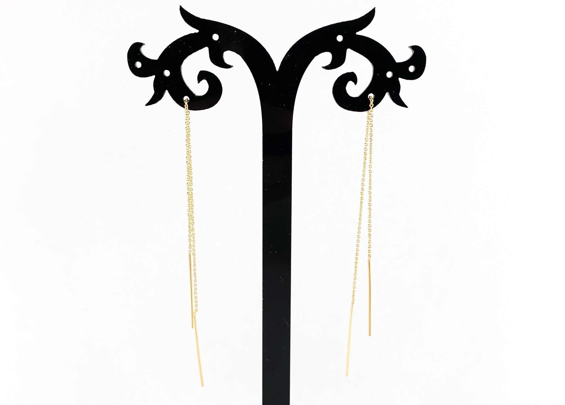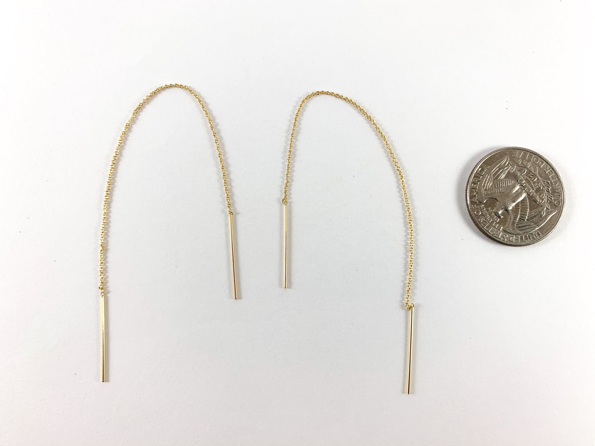 Estos hermosos aretes enhebradores están chapados en oro real de 18 quilates con una base de cobre.